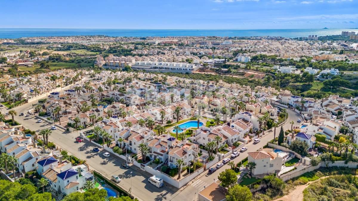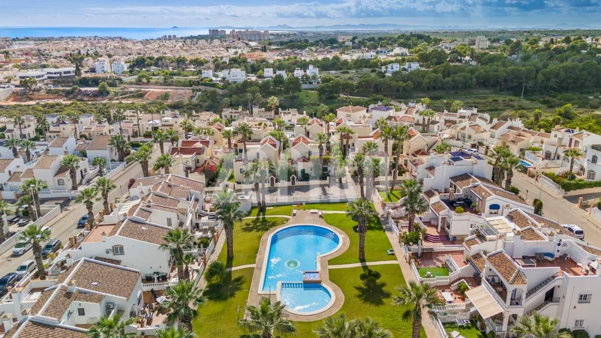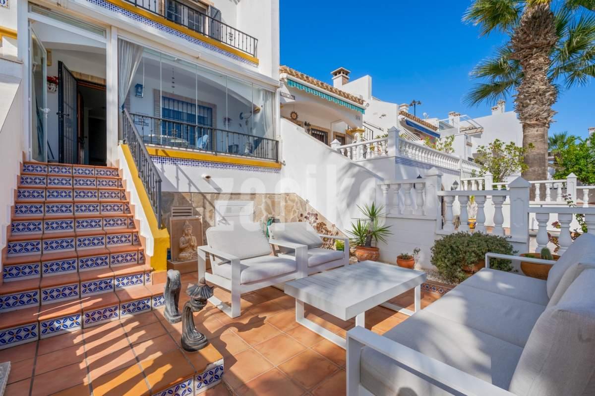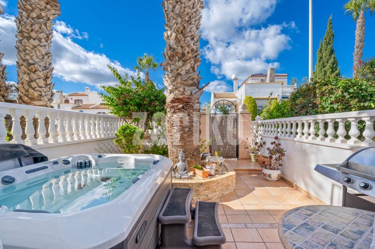 Townhouse in Los Dolses – Villamartín This stylish townhouse with 3 bedrooms, 2 bathrooms, and a separate guest toilet is located in the heart of Los Dolses , a popular residential area between Villamartín and La Zenia on the sunny Costa Blanca. The property combines comfort, light, and an excellent location , just minutes from shops, restaurants, golf courses, and the beaches of Orihuela Costa. Home features 3 spacious bedrooms 2 bathrooms Open living area with fully equipped kitchen Double orientation: East side overlooking the communal pool West side on the street side, ideal for enjoying the evening sun in the jacuzzi (included) Private terrace and balcony with sea view The property benefits from excellent natural light thanks to its through-plan layout and has direct access to the beautiful communal pool and manicured gardens – a perfect place to relax and enjoy the Mediterranean outdoors. Environment Los Dolses is part of the well-known Villamartín region, a popular area with both permanent residents and holidaymakers. Nearby you'll find: Several golf courses (Villamartín Golf, Las Ramblas, Campoamor) The shopping centre La Zenia Boulevard Cozy bars and restaurants International schools and excellent connections to the AP-7 motorway With the beaches of La Zenia and Cabo Roig just a few minutes' drive away, this property offers a perfect balance between tranquility, comfort and proximity to amenities . In summary An ideal property for those looking for a move-in ready family home or a holiday retreat , in one of the most attractive areas of the Costa Blanca South. Community of VVE 748€ / Year Suma or real estate tax: 373,85€/year