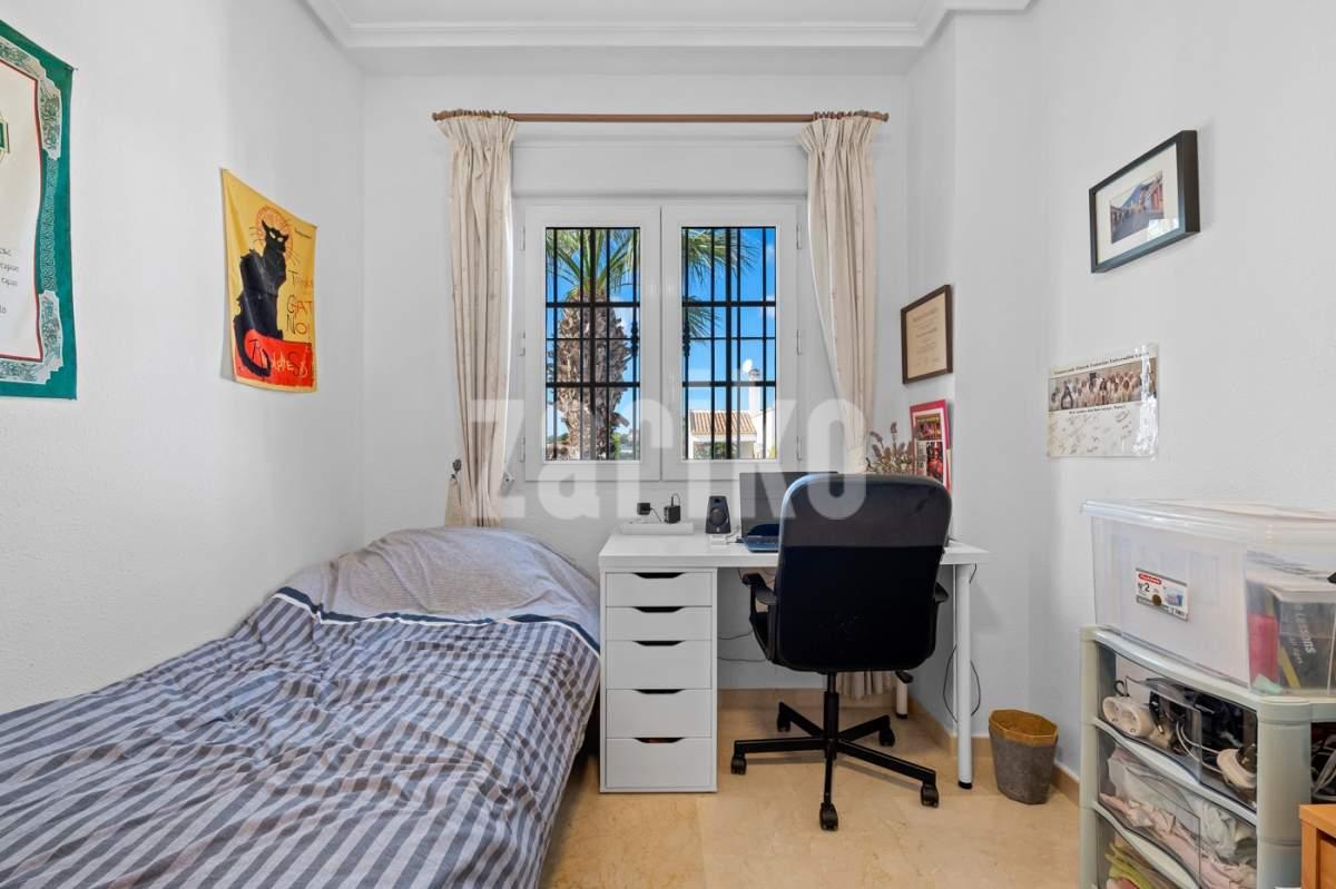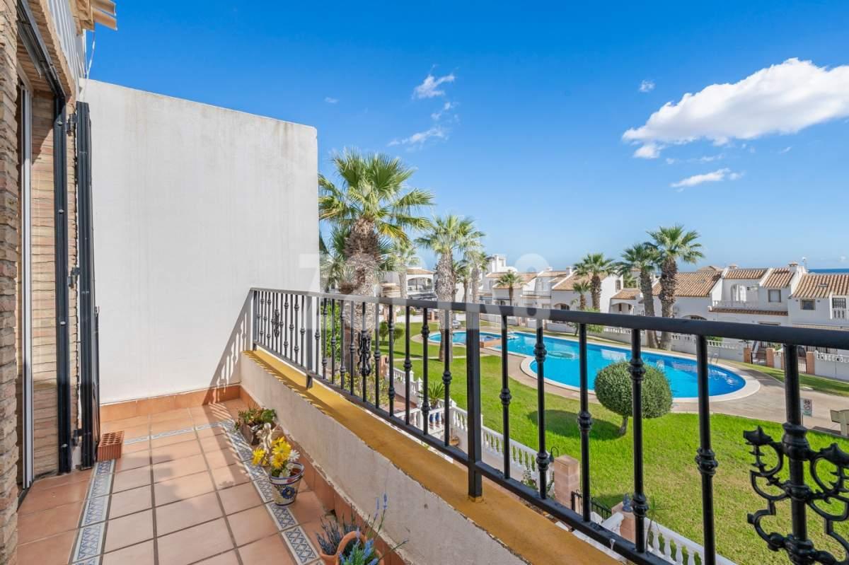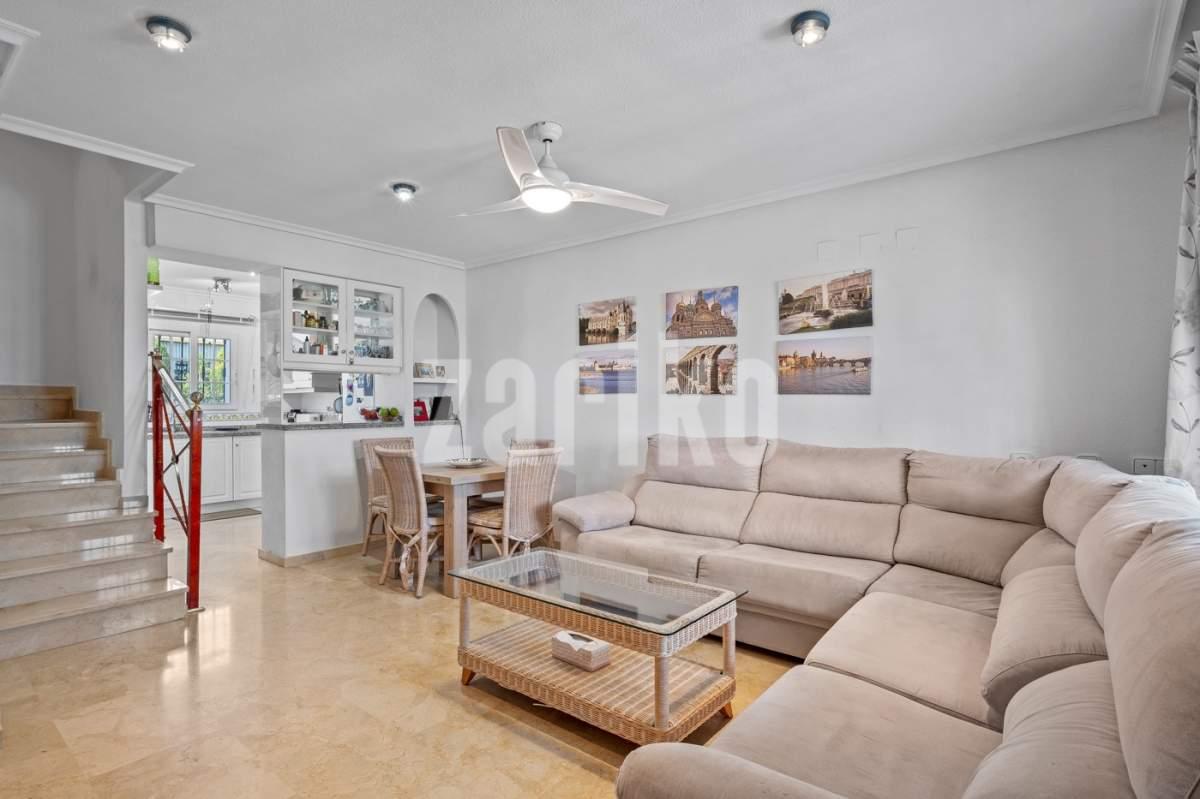 Townhouse in Los Dolses – Villamartín This stylish townhouse with 3 bedrooms, 2 bathrooms, and a separate guest toilet is located in the heart of Los Dolses , a popular residential area between Villamartín and La Zenia on the sunny Costa Blanca. The property combines comfort, light, and an excellent location , just minutes from shops, restaurants, golf courses, and the beaches of Orihuela Costa. Home features 3 spacious bedrooms 2 bathrooms Open living area with fully equipped kitchen Double orientation: East side overlooking the communal pool West side on the street side, ideal for enjoying the evening sun in the jacuzzi (included) Private terrace and balcony with sea view The property benefits from excellent natural light thanks to its through-plan layout and has direct access to the beautiful communal pool and manicured gardens – a perfect place to relax and enjoy the Mediterranean outdoors. Environment Los Dolses is part of the well-known Villamartín region, a popular area with both permanent residents and holidaymakers. Nearby you'll find: Several golf courses (Villamartín Golf, Las Ramblas, Campoamor) The shopping centre La Zenia Boulevard Cozy bars and restaurants International schools and excellent connections to the AP-7 motorway With the beaches of La Zenia and Cabo Roig just a few minutes' drive away, this property offers a perfect balance between tranquility, comfort and proximity to amenities . In summary An ideal property for those looking for a move-in ready family home or a holiday retreat , in one of the most attractive areas of the Costa Blanca South. Community of VVE 748€ / Year Suma or real estate tax: 373,85€/year