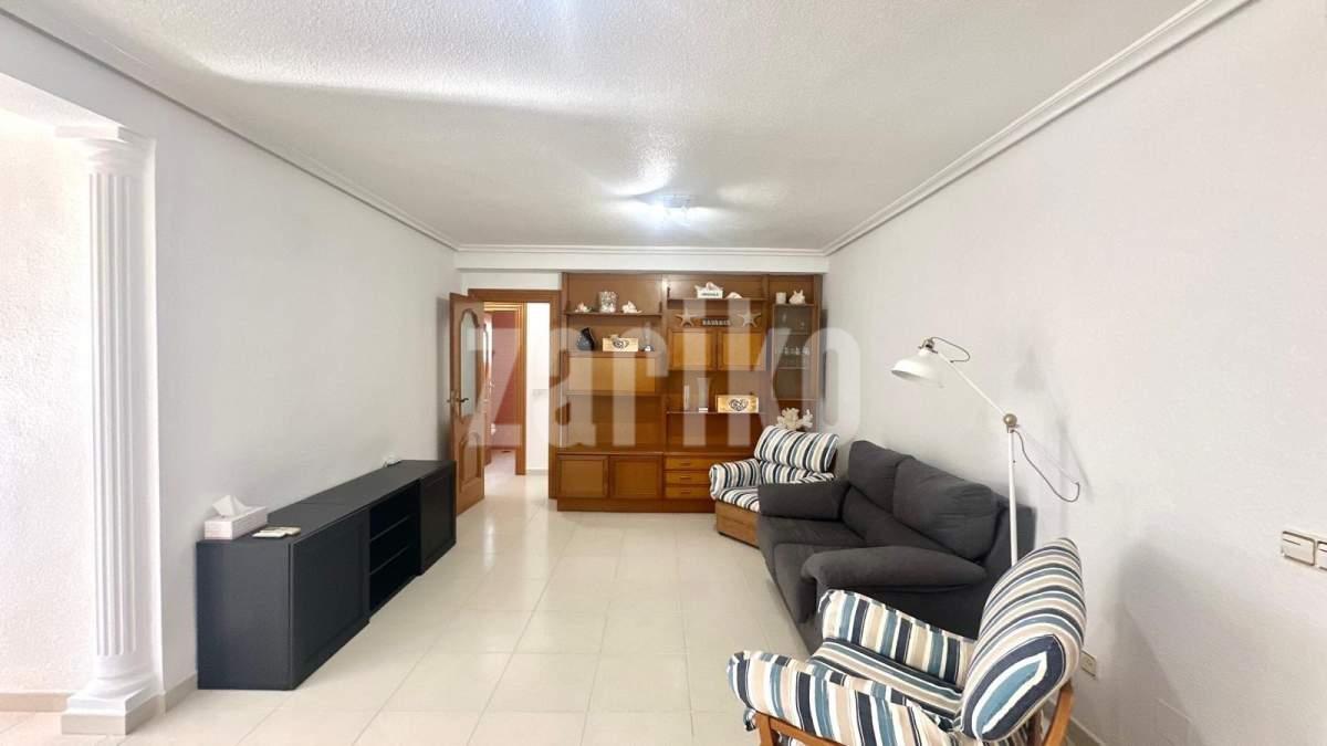 Amplio apartamento de tres dormitorios a 200 metros del mar en Dehesa de Campoamor Le presentamos este magnífico apartamento de 109 m² situado en la exclusiva zona costera de Dehesa de Campoamor, una de las ubicaciones más prestigiosas y valoradas de la Costa Blanca Sur. Su excelente orientación sur, su amplitud interior y su cercanía al mar lo convierten en una propiedad ideal tanto para residencia habitual como para disfrutar de estancias vacacionales junto a la playa. La vivienda se distribuye de manera funcional y equilibrada, ofreciendo tres dormitorios amplios, dos cuartos de baño completos y una cocina independiente con galería, perfecta para el uso diario y con espacio adicional de almacenaje y lavandería. Esta distribución proporciona comodidad, privacidad y una excelente ventilación cruzada en todas las estancias. El salón-comedor es el corazón de la vivienda: un espacio luminoso, confortable y de gran tamaño, que se conecta directamente con una terraza acristalada orientada al sur. Esta zona, gracias a su cerramiento de cristal, puede disfrutarse durante todo el año, permitiendo aprovechar la luz natural y las agradables temperaturas del clima mediterráneo. Además, el apartamento cuenta con aire acondicionado en el salón, lo que garantiza confort en cualquier época del año. Los dormitorios son espaciosos y luminosos, ideales para el descanso. Los dos baños están completamente equipados, con acabados de calidad y distribución práctica. La cocina independiente, de diseño funcional, permite mantener el área de estar despejada y bien organizada, al mismo tiempo que ofrece salida a la galería, un valor añadido muy útil tanto para ventilación como para almacenamiento adicional. Uno de los mayores atractivos de esta propiedad es su ubicación privilegiada, a tan solo 200 metros de la playa, lo que permite disfrutar del mar sin necesidad de vehículo. Además, en los alrededores se encuentran todos los servicios necesarios: supermercados, farmacias, restaurantes, zonas de ocio, transporte público y espacios verdes, lo que garantiza una vida cómoda y práctica durante todo el año. El conjunto residencial destaca por su ambiente tranquilo y cuidado, característico de Dehesa de Campoamor, una zona reconocida por su entorno natural, su proximidad al puerto deportivo y sus playas galardonadas con bandera azul. En definitiva, este apartamento reúne espacio, luminosidad, orientación perfecta y una ubicación inmejorable, convirtiéndose en una oportunidad única para quienes buscan una vivienda amplia, cómoda y a pasos del mar en una de las zonas más exclusivas de la costa alicantina.