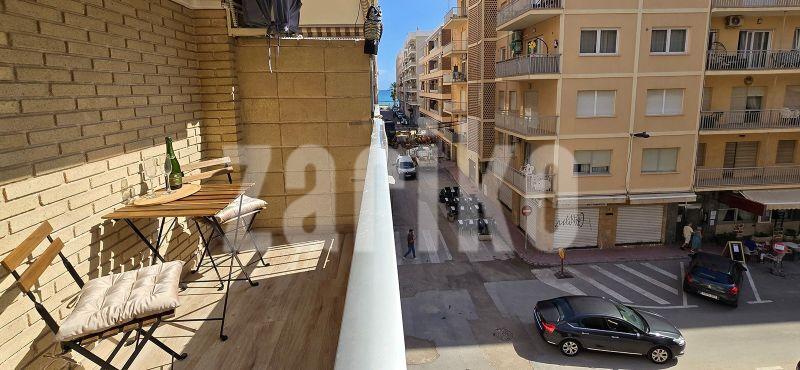 Se vende un singular apartamento de 77 m² completamente reformado en una de las mejores ubicaciones de Torrevieja, a pocos pasos de la playa de Del Cura y del paseo marítimo. Es la opción ideal para quienes buscan un apartamento confortable en pleno centro, con excelente acceso al mar, restaurantes, cafeterías y todos los servicios.El apartamento se encuentra en la segunda planta de un edificio bien conservado de 1981, con una característica fachada de ladrillo visto y dos ascensores.El interior ha sido diseñado y acabado con un estilo moderno y una atención exquisita al detalle.Consta de:dos dormitorios amueblados con camas, colchones y armarios empotrados nuevos,un baño y un aseo independiente,un amplio y luminoso salón con acceso a una soleada terraza con vistas panorámicas al mar,una moderna cocina a medida, totalmente equipada con electrodomésticos nuevos.Todo el apartamento cuenta con un suelo uniforme de gres porcelánico de alta calidad, y las ventanas recién renovadas con persianas eléctricas y mosquiteras garantizan el confort durante todo el año.Esta propiedad está lista para entrar a vivir; no requiere inversión adicional.Gracias a su excelente ubicación, es una magnífica inversión para alquiler o la casa de vacaciones perfecta en el Mediterráneo.