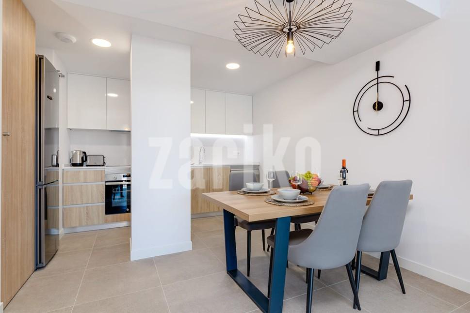 Moderno apartamento de 115 m², ubicado en el 11º piso de un edificio de 14 plantas (Sun Rise Tower, construido en 2023). El apartamento cuenta con 3 dormitorios, 2 baños, una cocina de planta abierta equipada con electrodomésticos energéticamente eficientes de Bosch (lavadora, lavavajillas), y un completo set de pequeños electrodomésticos (cafetera, tabla de planchar, plancha, etc.), además de una amplia sala de estar con televisores Samsung smart TV, con acceso a una terraza con vistas panorámicas al mar y al famoso Peñón de Ifach, que protege la ciudad del viento y crea un microclima único. ¡Bomba de calor geotérmica que calienta el agua y proporciona autonomía al sistema de control climático del apartamento! Espectacular estado del piso tiene todo lo necesario para entrar a vivir o alquilar el piso y sacar buena rentabilidad. El precio incluye plaza de aparcamiento y trastero.Calpe es uno de los resorts más prestigiosos de la Costa Blanca. Una ciudad con alto nivel de vida y población internacional, ideal tanto para residir permanentemente como para vacacionar.Más de 300 días de sol al año, clima mediterráneo suave. Un excelente lugar para deportes acuáticos, ciclismo, paseos y actividades al aire libre.Ubicación conveniente:1 hora al aeropuerto de Alicante1 hora 20 minutos al aeropuerto de ValenciaAcceso rápido a la autopista AP-7Complejo residencial de lujo con comodidades de primera clase:Gimnasio totalmente equipado y saunaCocina de verano y zona de descansoCanchas de pádel y otros deportesZona de juegos infantilPiscina al aire libreModernas zonas comunes y áreas verdesLa opción ideal para aquellos que valoran la calidad, las vistas al mar y el estilo de vida mediterráneo.Posibilidad de reserva online, así como compra a plazos del promotor y financiamiento bancario al 3-6% de interés anualContáctenos para obtener información adicional o concertar una visita.