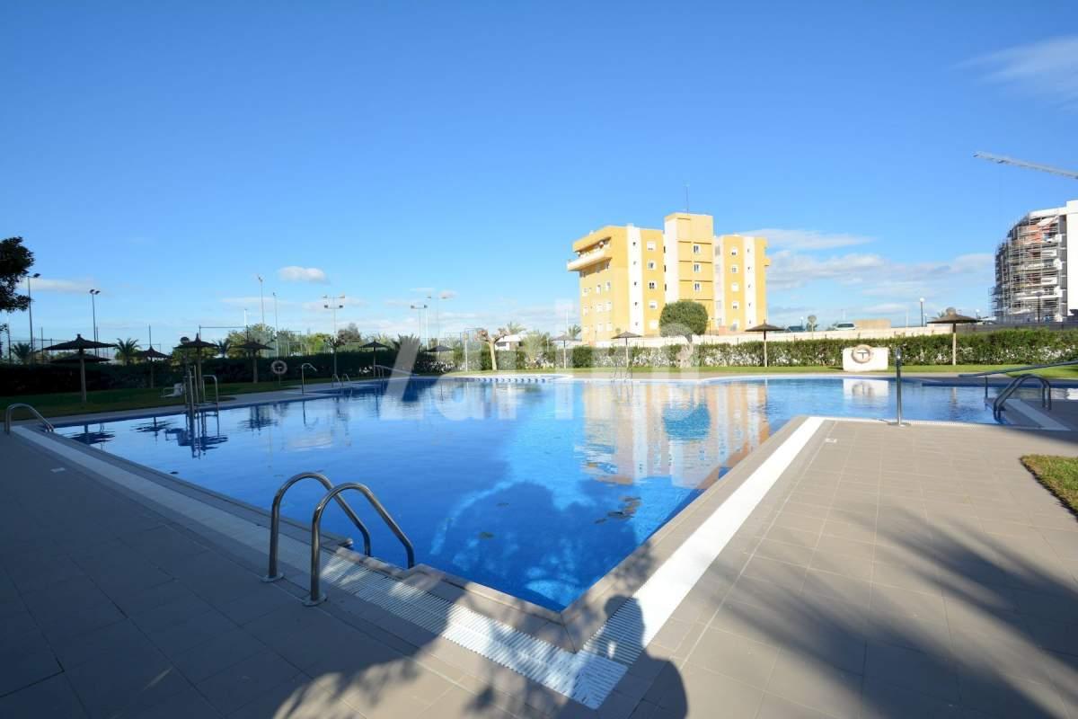Amplio y luminoso apartamento situado en la tranquila y moderna zona SUP 7 de Guardamar del Segura, a solo 1 km de la playa y del centro del pueblo. La zona ofrece un equilibrio perfecto entre comodidad y tranquilidad, con un gran supermercado a pocos minutos caminando y fácil acceso a todos los servicios. El apartamento cuenta con 91 m² de superficie construida y se encuentra en la primera planta de un edificio bien cuidado con ascensor. Dispone de tres dormitorios con armarios empotrados y dos baños, uno con bañera y otro con cabina de ducha, ambos con ventana para una mejor ventilación natural. La cocina es independiente, totalmente equipada y cuenta con una práctica galería. El salón se abre a una amplia terraza acristalada orientada al sur, que llena la vivienda de luz durante todo el día. Al ser una vivienda en esquina, ofrece mayor privacidad, ya que solo el salón y la cocina colindan con otro apartamento. Además, cuenta con aire acondicionado por conductos con bomba de calor y frío, lo que garantiza confort durante todo el año. El precio incluye dos plazas de aparcamiento: una en el garaje subterráneo y otra en superficie, con plaza asignada. La urbanización cerrada dispone de amplias zonas ajardinadas, piscina comunitaria, pista de pádel, campo de fútbol y agradables espacios sociales. Con vistas abiertas, excelente luminosidad y una ubicación muy práctica cerca de la playa y de todos los servicios, este apartamento se encuentra en buen estado y listo para entrar a vivir. Impuestos y gastos de compra no incluidos en el precio.