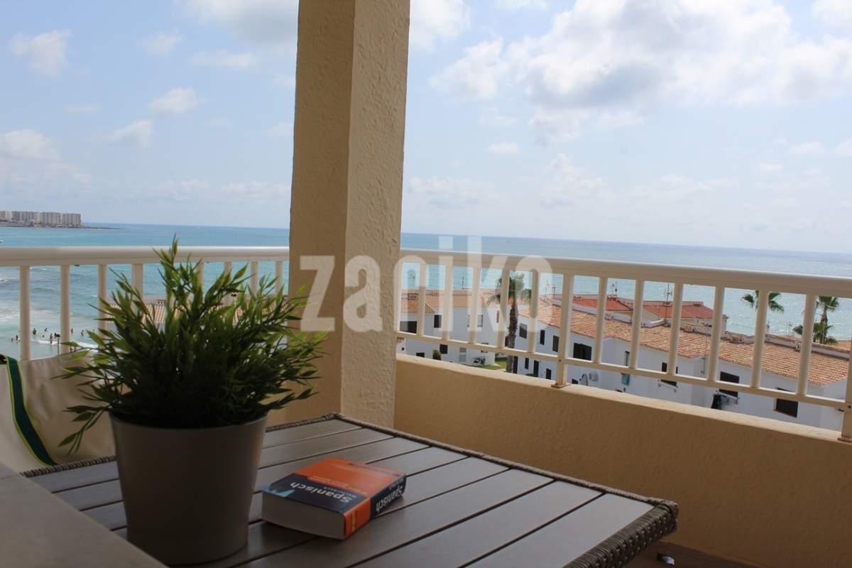 WOW!!! Spectacular Penthouse Seafront Apartment with stunning sea views in Playa Flamenca Beach! This 1 bedroom (originally 2 bedroom, easy and affordable to convert back) fully renovated apartment is a unique opportunity for those who value a privileged location and unparalleled views, just 100 meters from the beautiful beach with white sand and the purest water of the Mediterranean. The home offers stunning sea views from both the interior and the terrace, making it the perfect place to relax, have breakfast, or watch the sunrise over the Mediterranean Sea. The property has approximately 62 m² distributed, 1 spacious bedroom with built-in wardrobe, 1 bathroom with a walk in shower, a bright living-dining room, and a modern fully equipped kitchen. The east-south facing orientation ensures excellent light throughout the morning, bringing warmth and well-being to the spaces. The apartment is located in a residential complex with elevator and is equipped with integrated air conditioning C/W to ensure maximum comfort throughout the year. Just a short walk from restaurants, cafes, beach bars, supermarkets, water sports and all kinds of services, it is very close to the Saturday Street market and the Zenia Boulevard, the largest shopping centre in the province of Alicante with over 150 shops. Just a 10-minute drive takes you to 4 internationally renowned golf courses Villamartín, Las Ramblas, Campoamor and Las Colinas. Playa Flamenca is one of the most sought-after areas of Orihuela Costa, perfect for permanent residence or investment. Don't miss the opportunity to live the dream in this magnificent sea view apartment with exceptional amenities on your doorstep! The airports of Alicante and Murcia (Corvera) are only 45 min drive away. This highly popular area with close proximity to ALL amenities makes this property perfect for a holiday home, permanent residence or a great rental opportunity, so be quick as it will not be on the market for long. MUST BE SEEN !