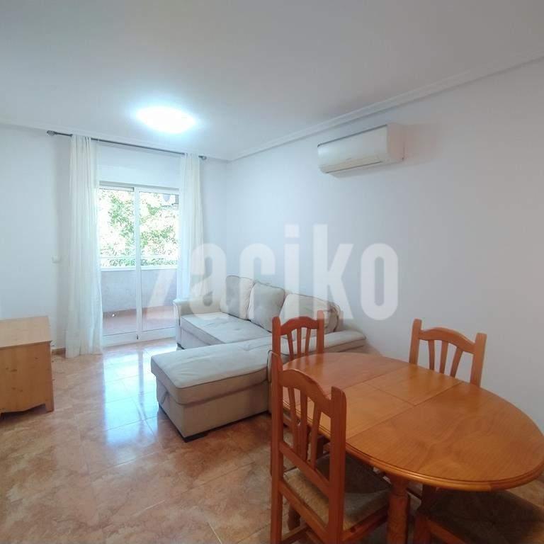En muy buenas condiciones listo para entrar a vivir. Con 59 m² construidos, con 2 dormitorios, 1 baño completo con plato ducha y con ventana, luminoso salón comedor con aire acondicionado frío calor con salida al balcón con vistas despejadas, amplia cocina con barra americana equipada. Se vende con PLAZA DE GARAJE y TRASTERO INCLUIDOS en el precio Edificio con piscina comunitaria Se vende amueblado y equipado según inventario, sin cosas personalesOrientación NORTEEDIFICIO CON 2 ASCENSORES Y ACCESO PMR AÑO DE CONSTRUCCIÓN 2003CEE E: 132 CONSUMO ENERGIACEE E: 24 EMISIONCOMUNIDAD PROPIETARIO VIVIENDA 377,82 € AÑOCOMUNIDAD PROPIETARIO PISCINA 100 € AÑOCOMUNIDAD PROPIETARIO GARAJE Y TRASTERO 120 € AÑOIBI SUMA VIVIENDA 180,26 € AÑOIBI PLAZA DE GARAJE 19,14 € AÑOIBI TRASTERO 14,36 € AÑO