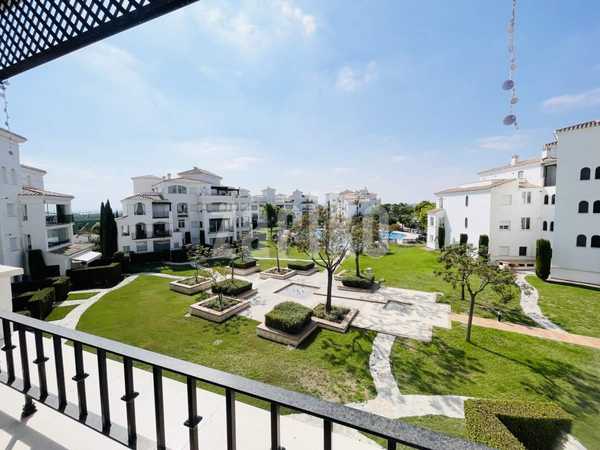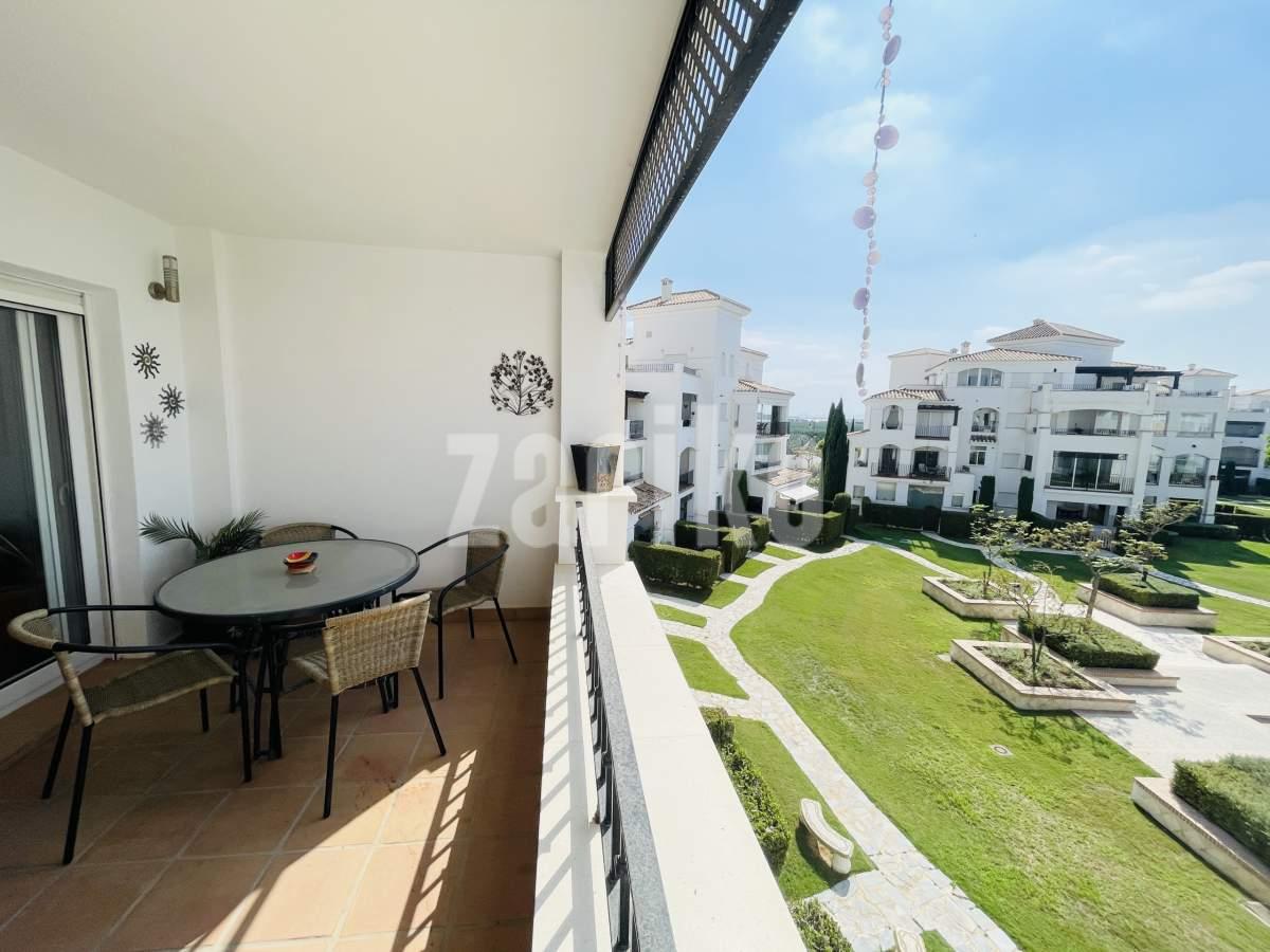 We are pleased to offer this wonderful second floor south west facing apartment on the highly sought after La Torre Golf Resort. The property is being sold furnished, with gas central heating and aircon and allocated underground parking. The resort is a 10 minutes drive from Murcia airport, 20 minutes to Murcia City and the beaches of the Mar Menor. On site you have a fantastic array of bars and restaurants in the town centre, an onsite supermarket, first class golf course and padel and tennis courts.This apartment has a southwest facing terrace with garden and pool views. There are two double bedrooms both with fitted wardrobes, a spacious lounge diner with patio door access to the main terrace, well equipped kitchen and family bathroom. To view the property please contact us to make an appointment with one of our agents.