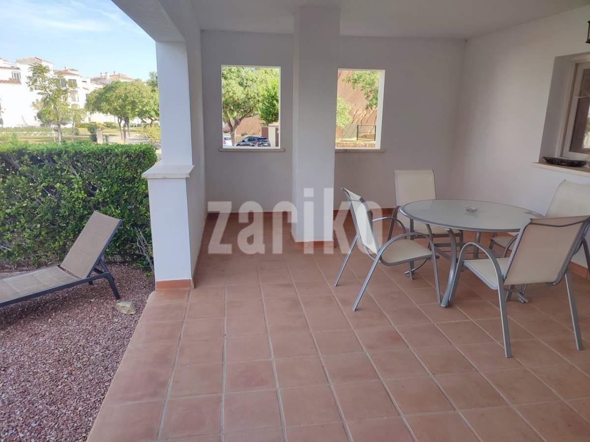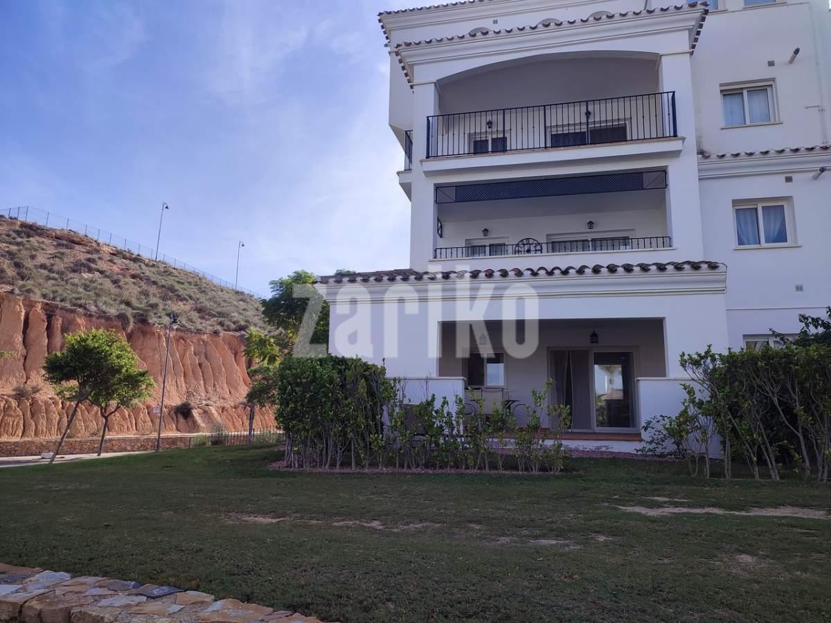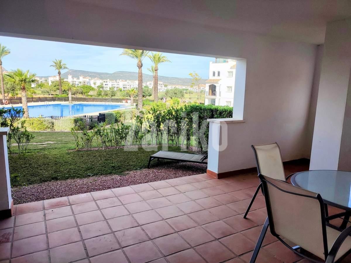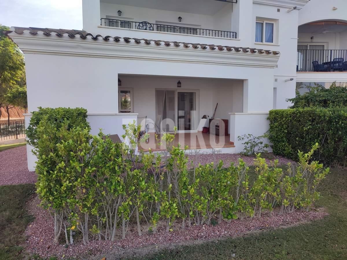 This ground floor corner garden apartment has the largest overall plot size available on Hacienda Riquelme and has lovely views over the gardens, swimming pool and to the mountains. The popular curved wall design apartment has a great sized kitchen and being on a corner also benefits from extra windows in the lounge and bathroom. Furthermore, if required, the design of this style of apartment can easily be made open planned and the opportunity to add a second bathroom if required. The property has air-conditioning throughout for summer and central heating for winter. A private underground parking space is also included in the sale.The apartment is being sold furnished minus personal possessions. It would make an excellent holiday home or suitable for permanent living.The first thing that impresses you about Hacienda Riquelme Golf Resort is the wide-open spaces, the extensive gardens and the low-density construction, which create a relaxing environment to enjoy a very safe and peaceful life or holiday. The apartments are set out spaciously around the magnificent and challenging 18 hole golf course part of the Jack Nicklaus Golf Trail. In the heart of the resort you will find the beautiful renovated Hacienda where you will find a supermarket, clubhouse, restaurant and bar. The inner court yard becomes the hive of entertainment in the Summer, whilst the large terrace set in the stunning gardens is open all year for “al fesco” dining and drinking.Facilities:Gated Community.24 hour security."El Cason" Bar, Restaurant, Clubhouse. "Sips" Coffee ShopSupermarket.Summer Entertainment.19 large community swimming pools.Communal gardens.Trees, 5 lakes.Wild flowers & local wildlife.Driving range & Golf ShopTennis courts.Paddle tennis courts.Football / Basketball court.Outside gym area.Children's play areas.Hacienda Riquelme is very well connected by the main motorways. Murcia Airport (20 mins)Mar Menor beaches (15 mins)Mediterranean beaches (20 mins)For those who like historical buildings, architecture or a desire to shop, the lovely cities of Murcia and Cartagena provide plenty of entertainment. Murcia (30 mins)Cartagena (45 mins) Murcia Airport (20 mins)Near to the bustling popular village of Sucina with shops, restaurants, bars, chemist, supermarket and lots more (5 minutes)For more information on the apartments available please contact us.