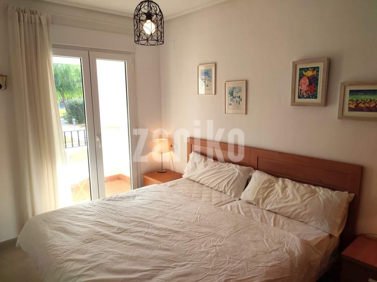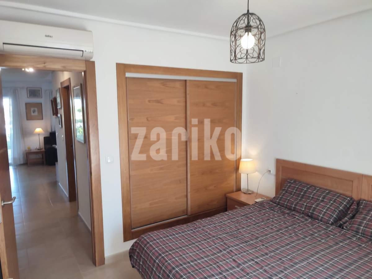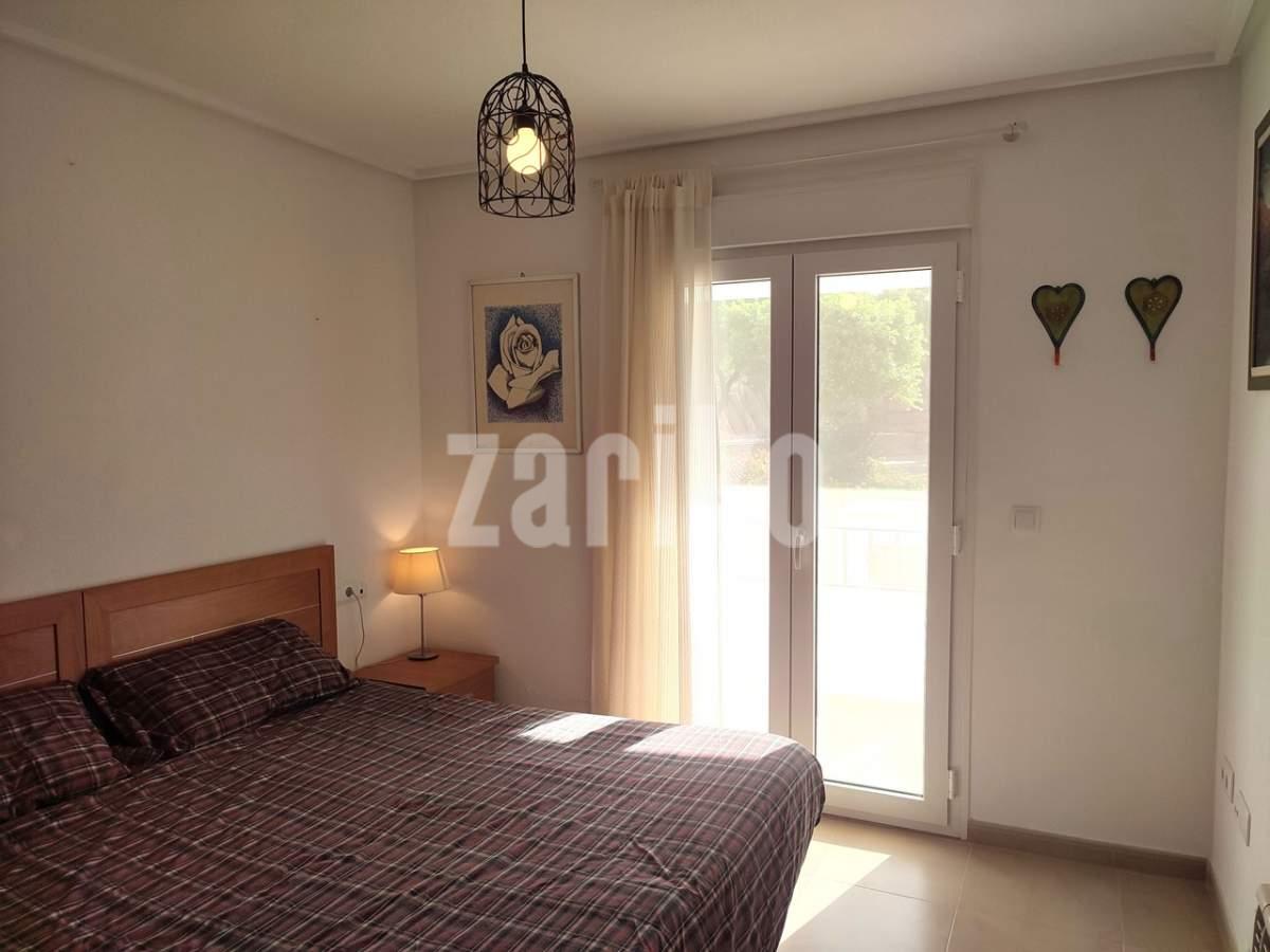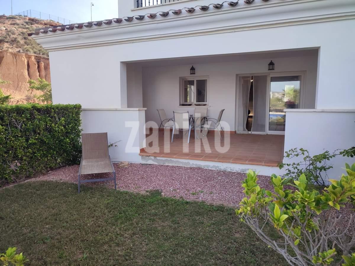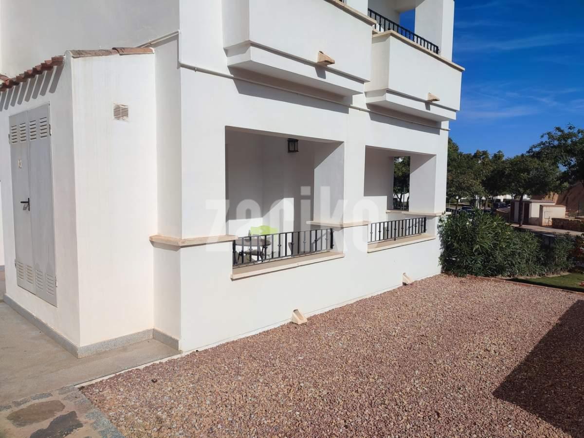 This ground floor corner garden apartment has the largest overall plot size available on Hacienda Riquelme and has lovely views over the gardens, swimming pool and to the mountains. The popular curved wall design apartment has a great sized kitchen and being on a corner also benefits from extra windows in the lounge and bathroom. Furthermore, if required, the design of this style of apartment can easily be made open planned and the opportunity to add a second bathroom if required. The property has air-conditioning throughout for summer and central heating for winter. A private underground parking space is also included in the sale.The apartment is being sold furnished minus personal possessions. It would make an excellent holiday home or suitable for permanent living.The first thing that impresses you about Hacienda Riquelme Golf Resort is the wide-open spaces, the extensive gardens and the low-density construction, which create a relaxing environment to enjoy a very safe and peaceful life or holiday. The apartments are set out spaciously around the magnificent and challenging 18 hole golf course part of the Jack Nicklaus Golf Trail. In the heart of the resort you will find the beautiful renovated Hacienda where you will find a supermarket, clubhouse, restaurant and bar. The inner court yard becomes the hive of entertainment in the Summer, whilst the large terrace set in the stunning gardens is open all year for “al fesco” dining and drinking.Facilities:Gated Community.24 hour security."El Cason" Bar, Restaurant, Clubhouse. "Sips" Coffee ShopSupermarket.Summer Entertainment.19 large community swimming pools.Communal gardens.Trees, 5 lakes.Wild flowers & local wildlife.Driving range & Golf ShopTennis courts.Paddle tennis courts.Football / Basketball court.Outside gym area.Children's play areas.Hacienda Riquelme is very well connected by the main motorways. Murcia Airport (20 mins)Mar Menor beaches (15 mins)Mediterranean beaches (20 mins)For those who like historical buildings, architecture or a desire to shop, the lovely cities of Murcia and Cartagena provide plenty of entertainment. Murcia (30 mins)Cartagena (45 mins) Murcia Airport (20 mins)Near to the bustling popular village of Sucina with shops, restaurants, bars, chemist, supermarket and lots more (5 minutes)For more information on the apartments available please contact us.