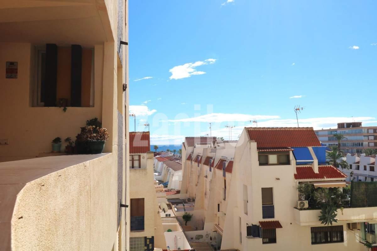 Apartamento en Torrevieja zona Mar Azul, 67 m2 de superficie, a 150 m. de la playa, 2 dormitorios dobles, un baño, propiedad en Buen estado, cocina equipada. Piscina comunitaria. Extras: armarios empotrados, ascensor, balcón, jardín, muebles, terraza, autobuses, centros comerciales, colegios, costa, supermercados, urbanización, vistas al mar, vistas despejadas