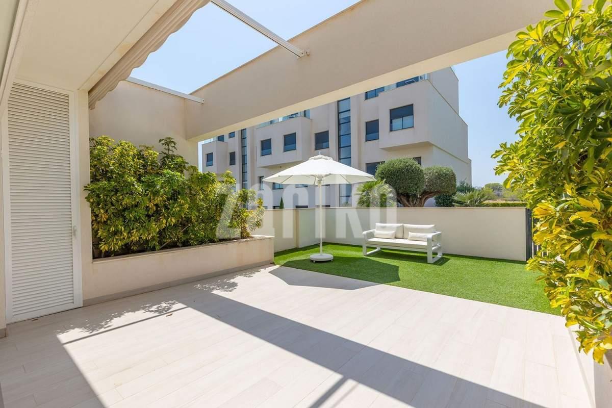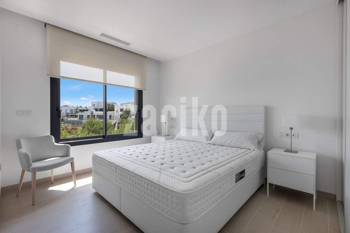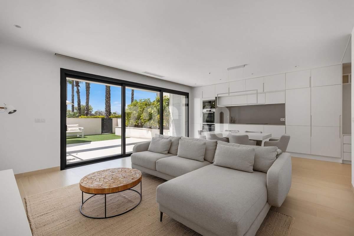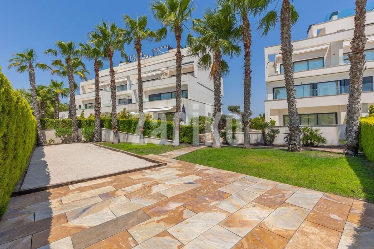 Ubicado dentro del exclusivo Las Colinas Golf & Country Club – uno de los complejos residenciales más prestigiosos de España – este magnífico apartamento en planta baja combina elegancia contemporánea con un confort excepcional. Reconocido por su galardonado campo de golf de campeonato, su entorno natural virgen y su baja densidad de construcción, Las Colinas ofrece un estilo de vida de tranquilidad, privacidad y sofisticación, a pocos minutos en coche de la costa mediterránea. El apartamento cuenta con una amplia terraza y un jardín privado paisajístico, con fácil acceso a la gran piscina comunitaria. Su distribución incluye tres amplios dormitorios con armarios empotrados y dos baños con calefacción eléctrica por suelo radiante. La cocina está totalmente equipada con electrodomésticos de alta gama y el sistema de aire acondicionado por conductos (frío/calor) garantiza confort durante todo el año. Un sistema domótico controla la iluminación y las persianas para mayor comodidad y funcionalidad moderna. La propiedad se vende completamente amueblada con un paquete de mobiliario de lujo que incluye camas dobles de gran calidad, un sofá de cuero en el salón y otros muebles de alta gama. También se incluye una plaza de aparcamiento subterránea privada y un trastero de aproximadamente 6 m². Con una ubicación tranquila y perfecta orientación sur, esta vivienda recibe sol durante todo el día y es ideal tanto para vivir todo el año como para disfrutar de unas vacaciones exclusivas – lista para entrar a vivir y disfrutar del estilo de vida único de Las Colinas.