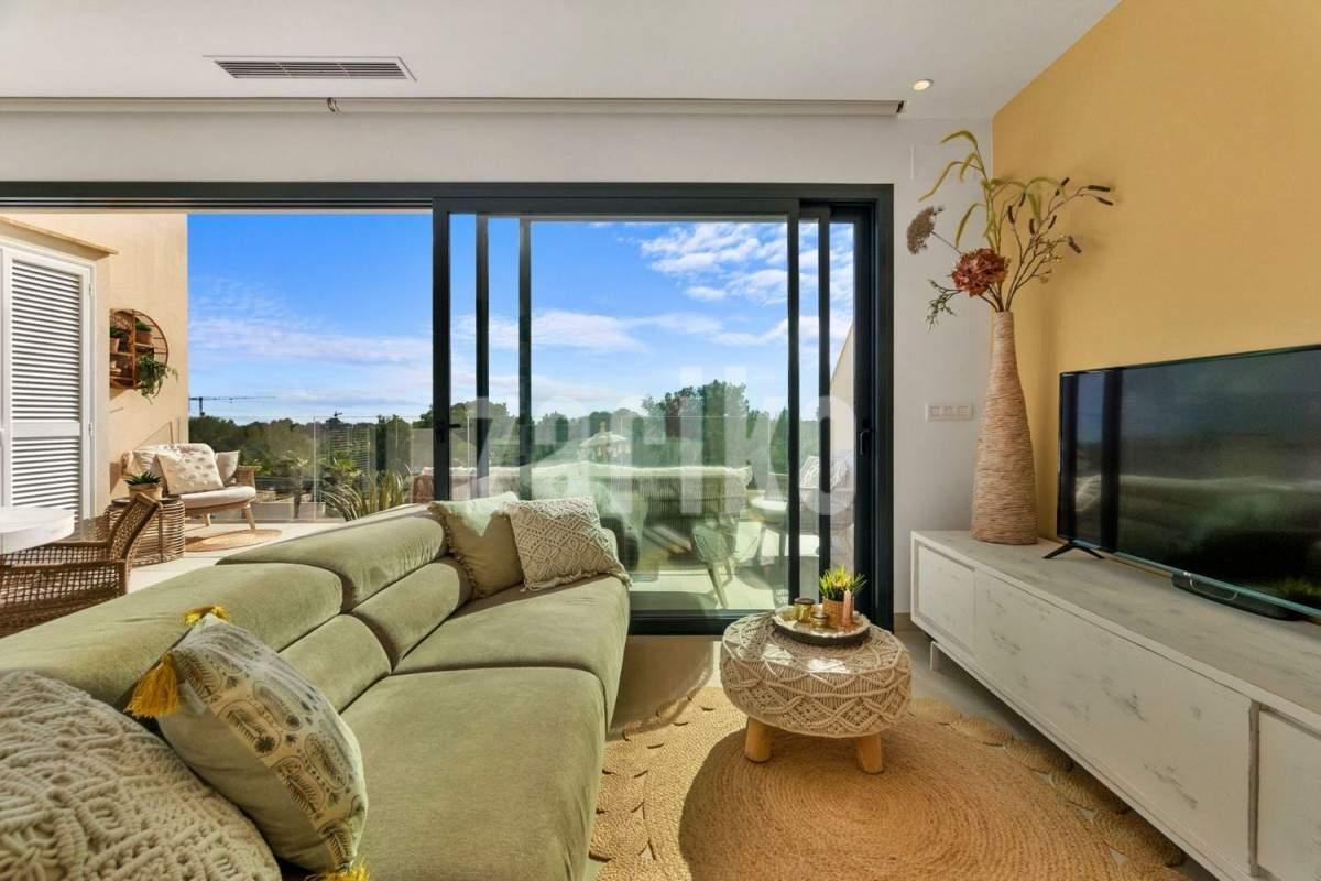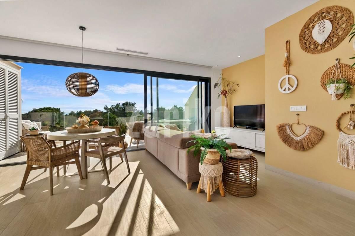 Apartamento de 2 dormitorios en Hinojo en Las Colinas Golf Si sueña con una casa de lujo en Las Colinas Golf and Country Club, en el clima más favorable de España, le ofrecemos este apartamento de ensueño amueblado en la Comunidad Hinojo 1, en la segunda planta. Al entrar, le recibe un ambiente cálido y acogedor. Este apartamento orientado al sur está amueblado y decorado con cariño al estilo ibicenco. El salón cuenta con tres grandes ventanales en todo su ancho, que se pueden abrir completamente para que la terraza, con el mismo suelo de baldosas, se convierta en una extensión del salón. Desde esta terraza, con un acogedor conjunto de salón, podrá disfrutar de una magnífica vista con mucha vegetación (bosque), el mar y el Mar Menor con la Manga. La cocina está equipada con electrodomésticos de lujo Bosch y se puede cerrar completamente con una amplia pared blanca. Hay dos dormitorios con amplios armarios empotrados y espacio de almacenamiento adicional debajo de las camas. El dormitorio principal tiene un lujoso baño en suite, y el segundo dormitorio también tiene su propio baño independiente. El apartamento incluye aparcamiento subterráneo y trastero privado. Las principales ventajas de este apartamento son: Totalmente amueblado Terraza orientada al sur Muy bien mantenido y limpio Como nuevo; sin daños ni defectos Vista fantástica Totalmente situado en el soleado sur La terraza está cerrada con paredes de cristal para que también tenga una vista completa mientras está sentado Aire acondicionado en todas las habitaciones Agua potable filtrada Lavadora/secadora disponible en el armario exterior Las Colinas Golf & Country Club ¡Un mundo aparte! Las Colinas Golf & Country Club es uno de los resorts más prestigiosos de la Costa Blanca. Es un exclusivo y único resort de golf de 330 hectáreas con muchas instalaciones deportivas, incluyendo golf, pádel, senderismo, fitness, yoga y mucho más. Es un mundo aparte donde podrá disfrutar de un estilo de vida mediterráneo saludable. Con un clima excepcional y servicios de primera clase, el resort ha sido reconocido como "Mejor Resort de Villas de España y Europa" por los World Travel Awards en los últimos años. Enclavado entre las colinas de la Dehesa de Campoamor, en la costa mediterránea al sur de Alicante, Las Colinas Golf & Country Club es un espacio natural único que se ha conservado cuidadosamente y donde se han integrado casas exclusivas en el entorno, donde podrá relajarse y disfrutar del paisaje. Este resort, con algunos excelentes restaurantes y la playa Wow by Las Colinas, tiene una reputación internacional y es conocido y buscado por celebridades. ¡Encuentre la casa de sus sueños hoy mismo echando un vistazo a las casas más bellas y exclusivas que tenemos para ofrecer!