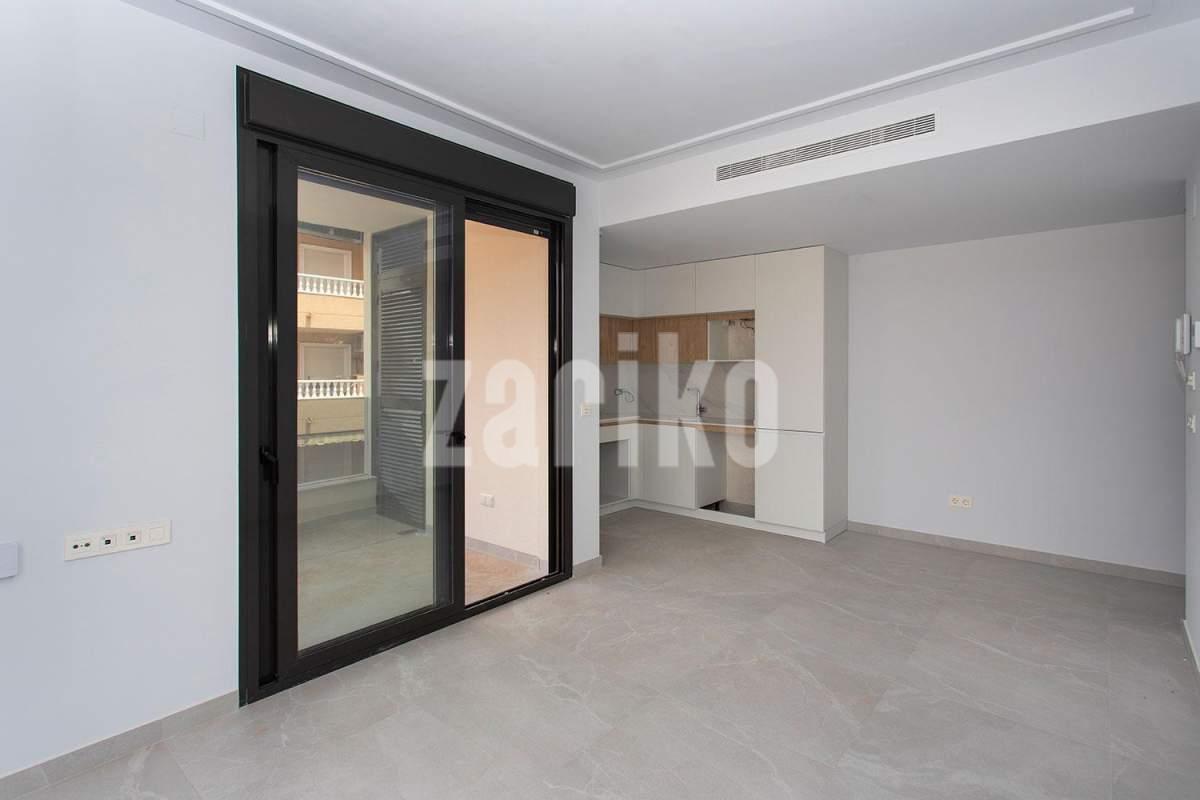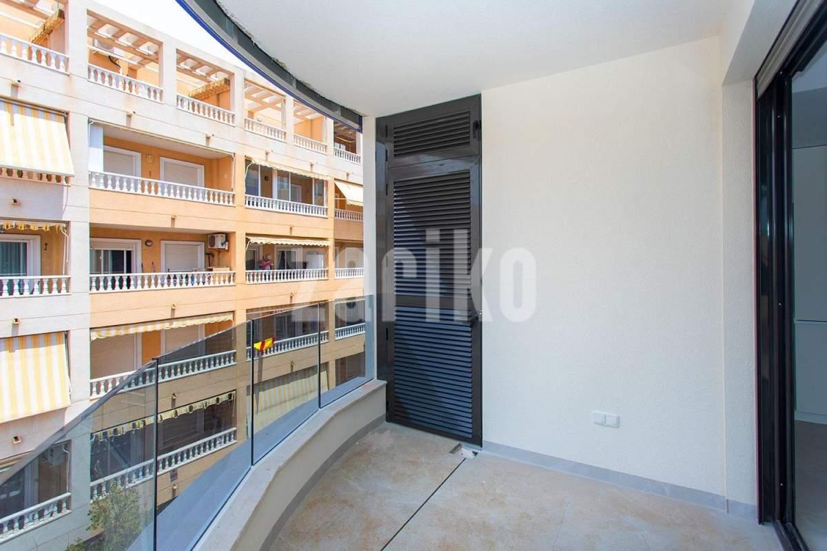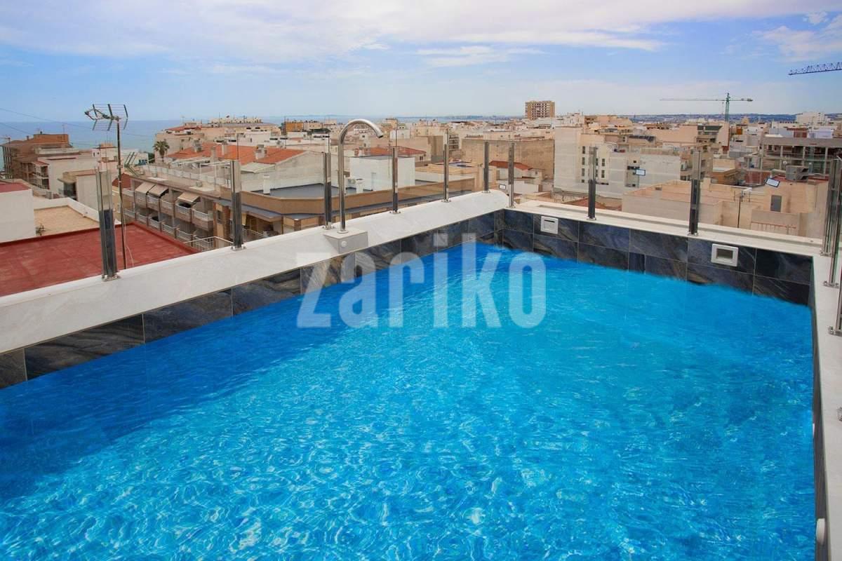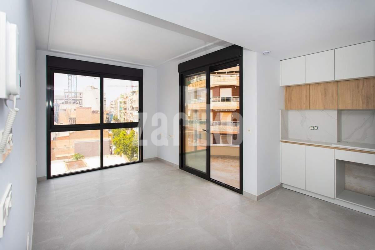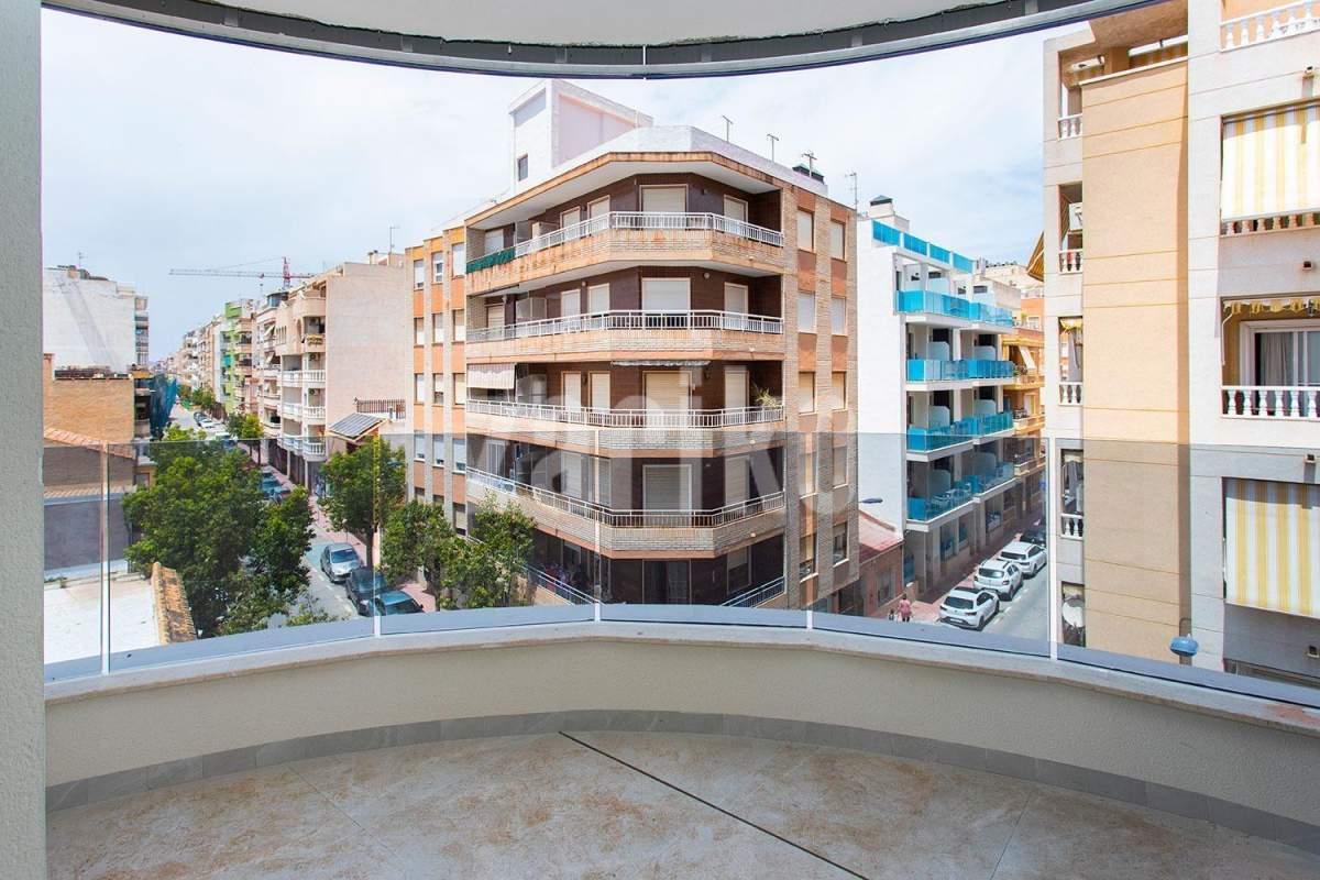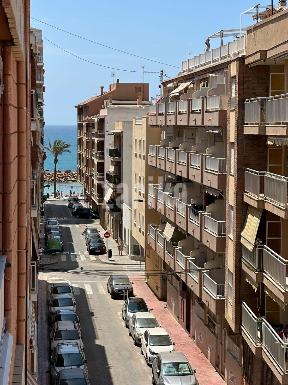 Apartamento a estrenar, en esquina, estilo contemporáneo, en Residencial elegante con piscina comunitaria en el solárium con vistas al mar en la mejor zona de Torrevieja, a unos minutos a pie de la Playa del Cura y del Paseo Marítimo! Consta de un amplio salón comedor con acceso a la terraza con vista lateral al mar, una cocina abierta amueblada, dos dormitorios dobles y dos cuartos de baño con duchas Italianas. El dormitorio principal dispone de un cuarto de baño en-suite y tiene acceso a una pequeña terraza. SIN amueblar. SIN electrodomésticos. Aire acondicionado por conductos. Luminoso. Armarios empotrados. Ascensores. Videoportero. Materiales de alta calidad. Todo un privilegio con su piscina y su terraza en el solárium con vistas panorámicas al mar para el descanso y el relax. Perfecta ubicación, cerca de todos los servicios, restaurantes, cafeterias, supermercados, tiendas, el Paseo Marítimo, las Piscinas Naturales,... Listo para entrar a vivir, disfrutar de la playa y del buen clima Mediterráneo durante todo el año. Y muy cerca, puede aparcar su vehículo en el aparcamiento subterráneo Virgen del Carmen!