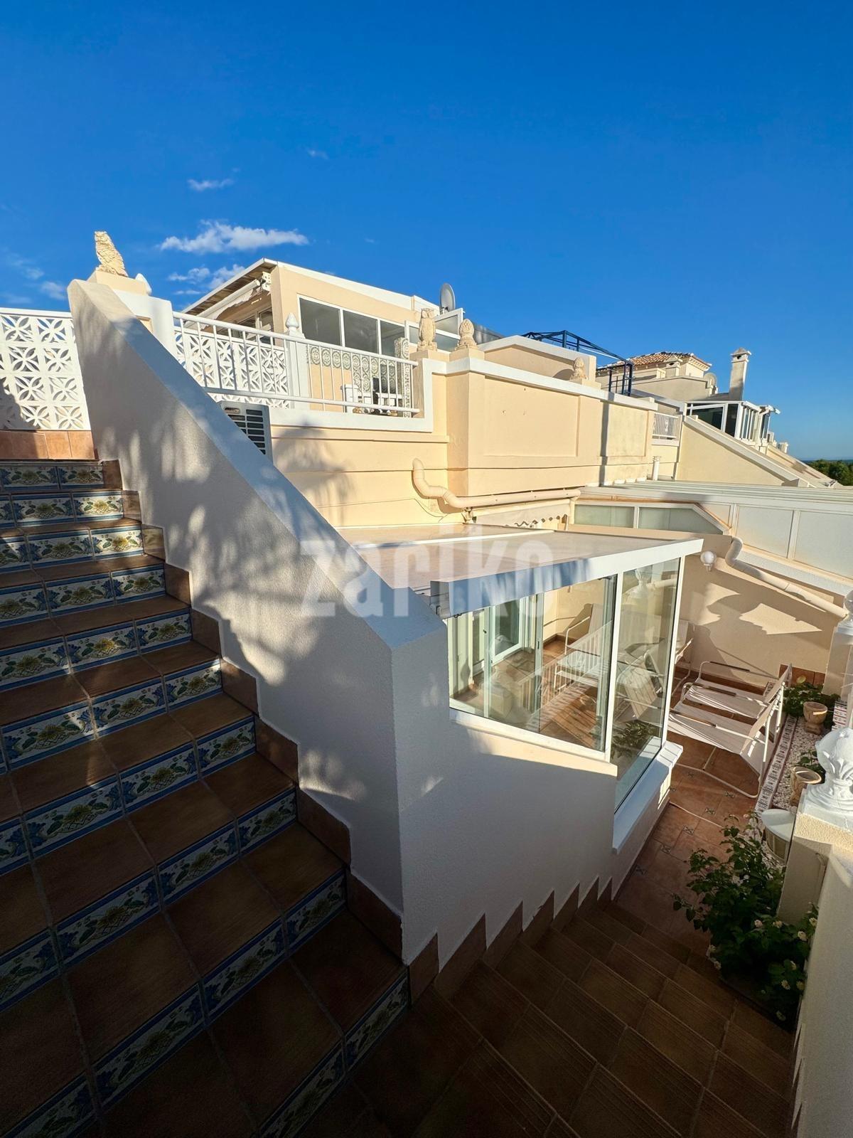 Descubre este encantador apartamento de dos dormitorios ubicado en la exclusiva urbanización Miraflores, Playa Flamenca. Con una superficie construida de 70 m² y completamente reformado, esta propiedad ofrece un estilo moderno y funcional para disfrutar al máximo del entorno costero. La vivienda cuenta con un amplio solárium privado que te permitirá relajarte bajo el sol mientras disfrutas de vistas lejanas al mar. Además, dispone de terrazas delanteras y traseras perfectas para momentos inolvidables al aire libre. La piscina comunitaria tipo playa es ideal para refrescarte durante los cálidos días veraniegos junto a familiares o amigos. El apartamento también incluye parking privado e instalaciones cercanas como autobuses, centros comerciales (a solo dos minutos del CC La Zenia Boulevard), colegios y más servicios esenciales. Con su ubicación privilegiada a tan solo1500 metros del mar Mediterráneo y todas las comodidades necesarias dentro alcance; esta propiedad representa una excelente oportunidad tanto como residencia habitual como inversión vacacional. ¿Programamos su visita?
