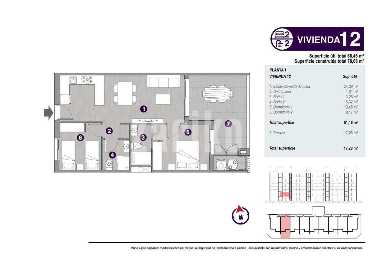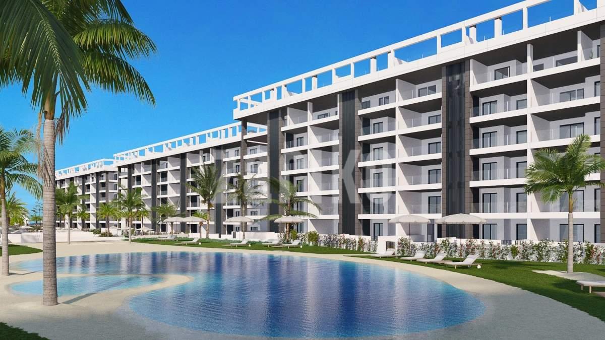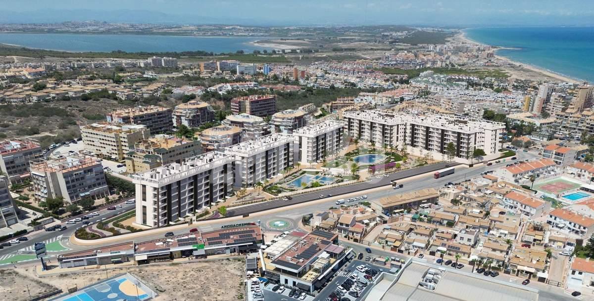 URBANIZACION CERRADA DE OBRA NUEVA EN TORREVIEJA A SOLO 700M DE LA PLAYA Complejo residencial de nueva construcción de 362 apartamentos con amplias zonas comunitarias en Torrevieja. Puede elegir entre lujosos apartamentos de 2 dormitorios y 2 baños, áticos de 3 dormitorios y 2 baños con solarium privado y apartamentos de 2 dormitorios y 2 baños en planta baja con jardín privado. -Diseños modernos y acabados y materiales de calidad -Casi todos los apartamentos tienen vistas al mar -Todos los apartamentos cuentan con amplias terrazas frontales orientadas a las zonas comunitarias -Zonas comunitarias con dos piscinas para adultos, piscina para niños, zona infantil, gimnasio, zona deportiva y spa, aparcamiento de bicicletas y zona de aparcamiento de vehículos -700 metros hasta la playa de La Mata, 10 minutos andando -Enfrente del Centro Comercial Torremarina con Mercadona, restaurantes, cafeterías y otras tiendas Torrevieja es una ciudad española de la provincia de Alicante, en la Costa Blanca. Es conocida por su clima y su costa típicamente mediterráneos. Cuenta con paseos marítimos con complejos turísticos a lo largo de sus playas de arena. El pequeño Museo del Mar y la Sal alberga exposiciones sobre la historia pesquera y salinera de la ciudad. En el interior, el Parque Natural de las Lagunas de La Mata-Torrevieja cuenta con senderos y dos lagunas saladas, una rosa y otra verde. El aeropuerto de Alicante se encuentra a 40 minutos y el de Murcia a una hora.