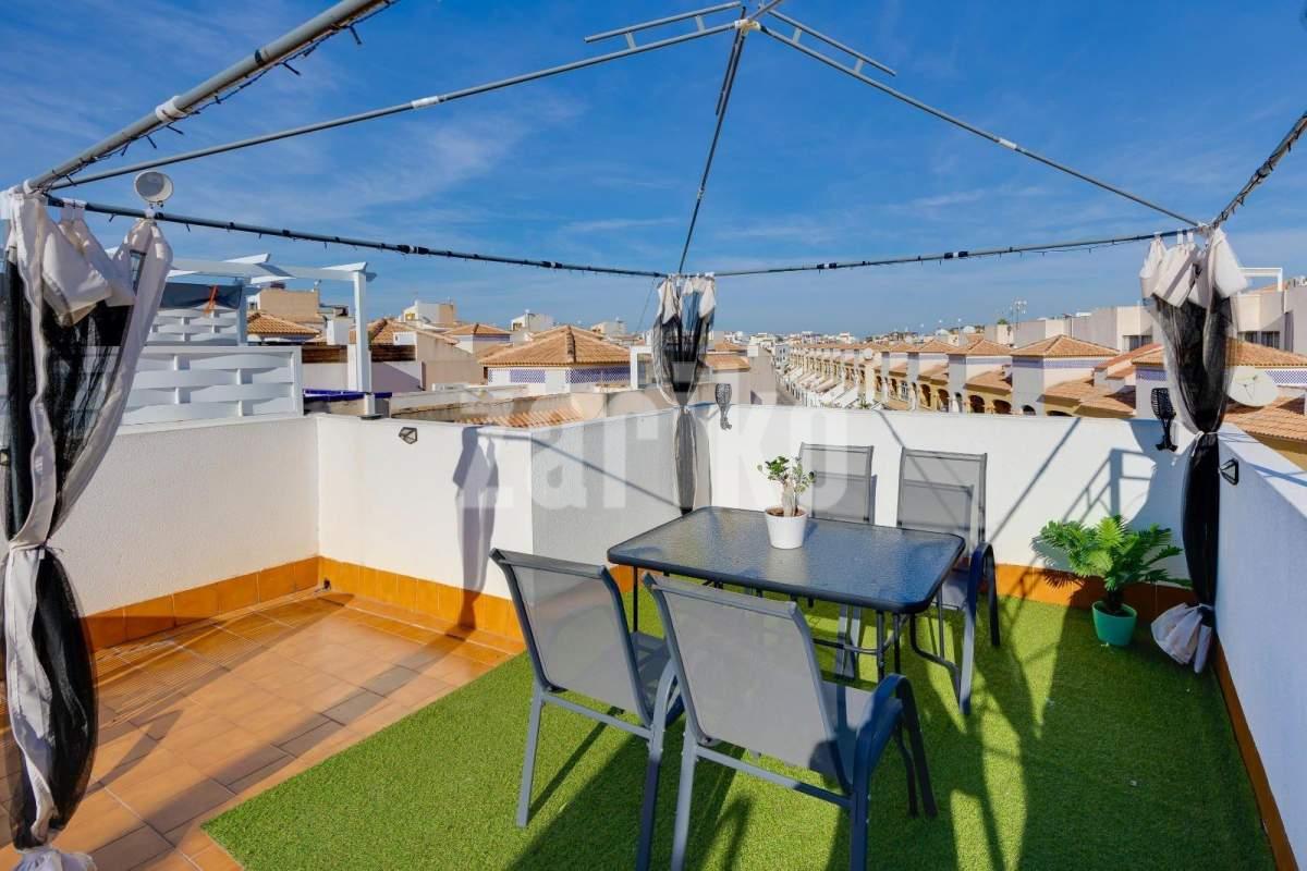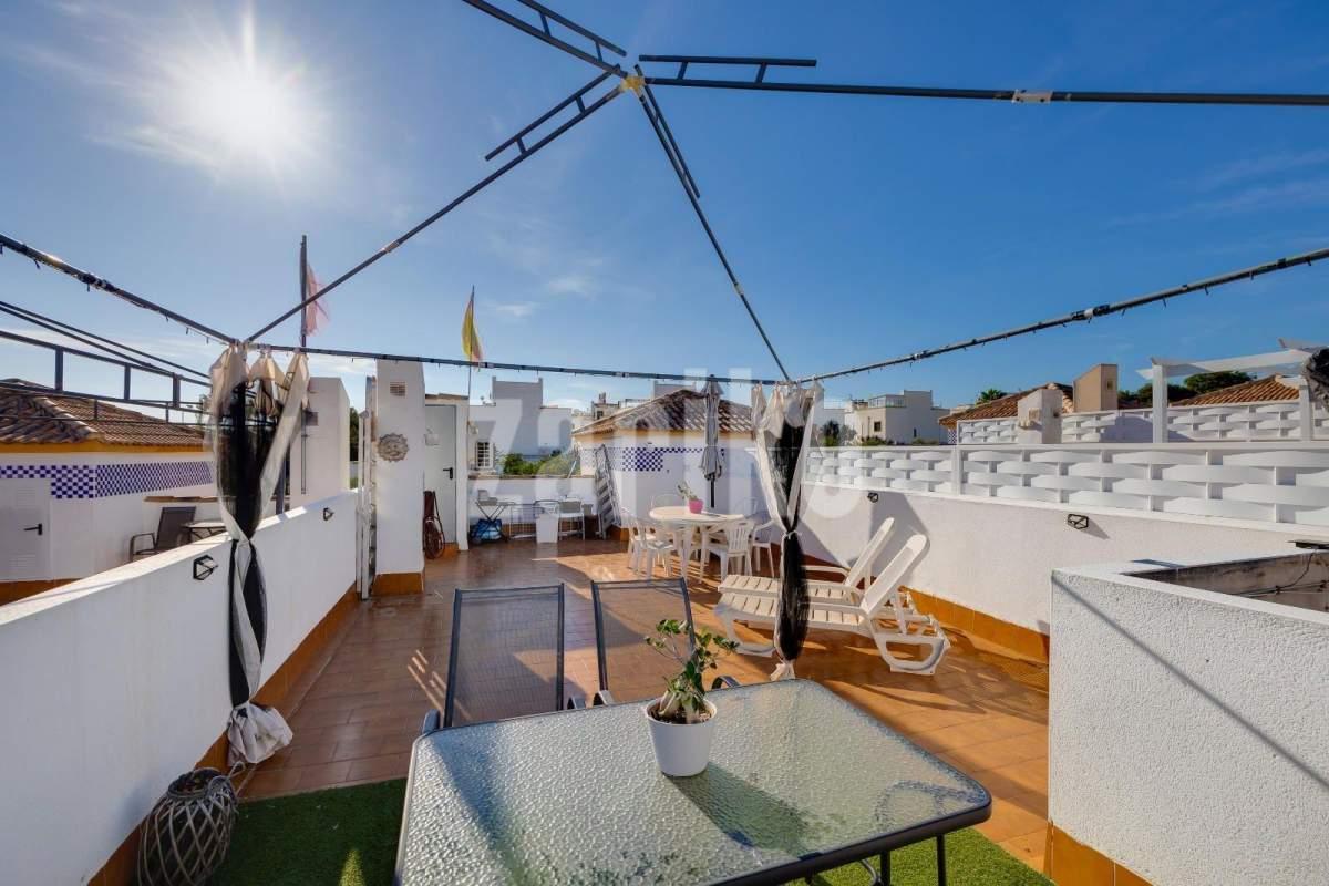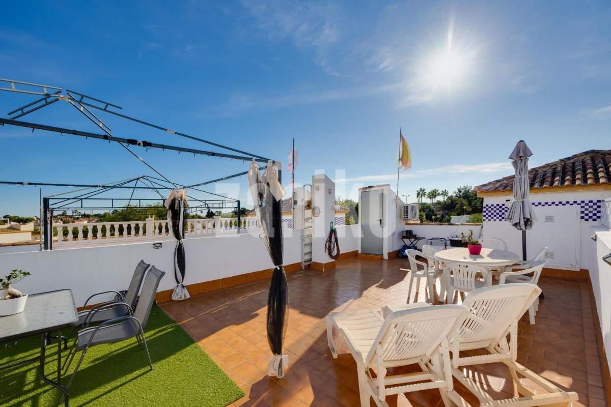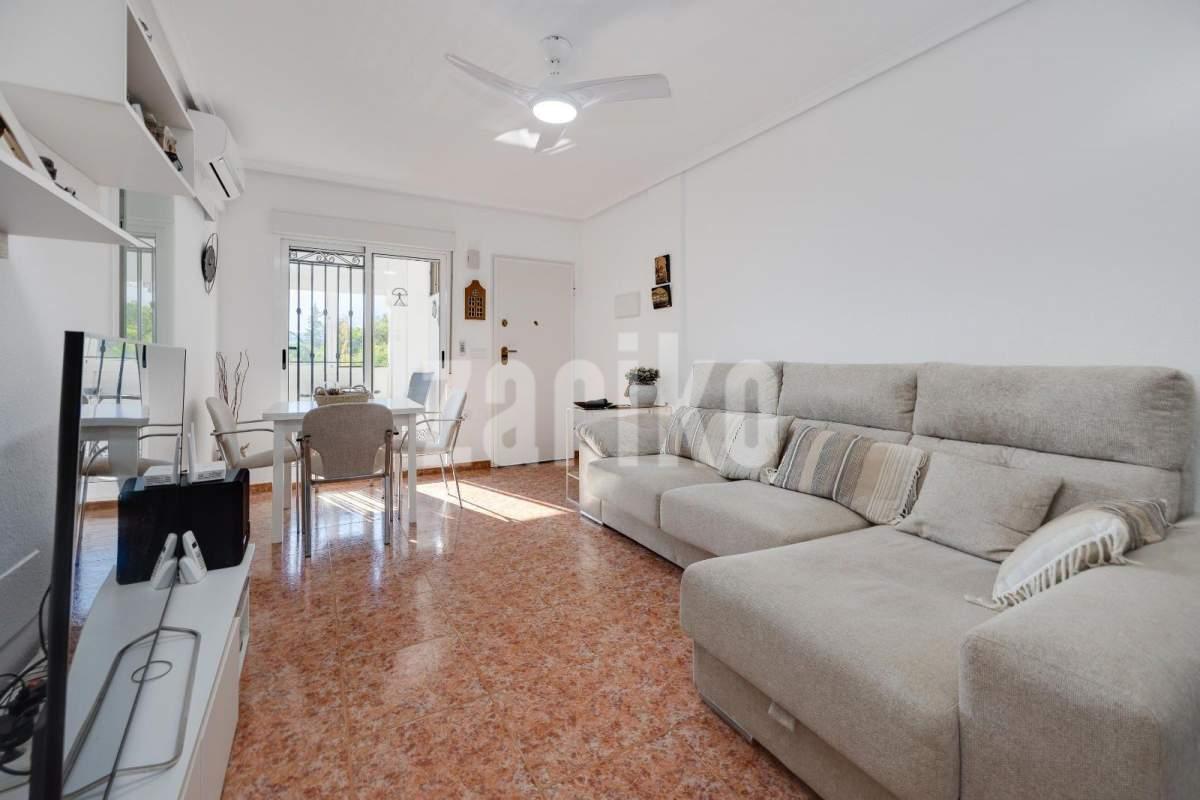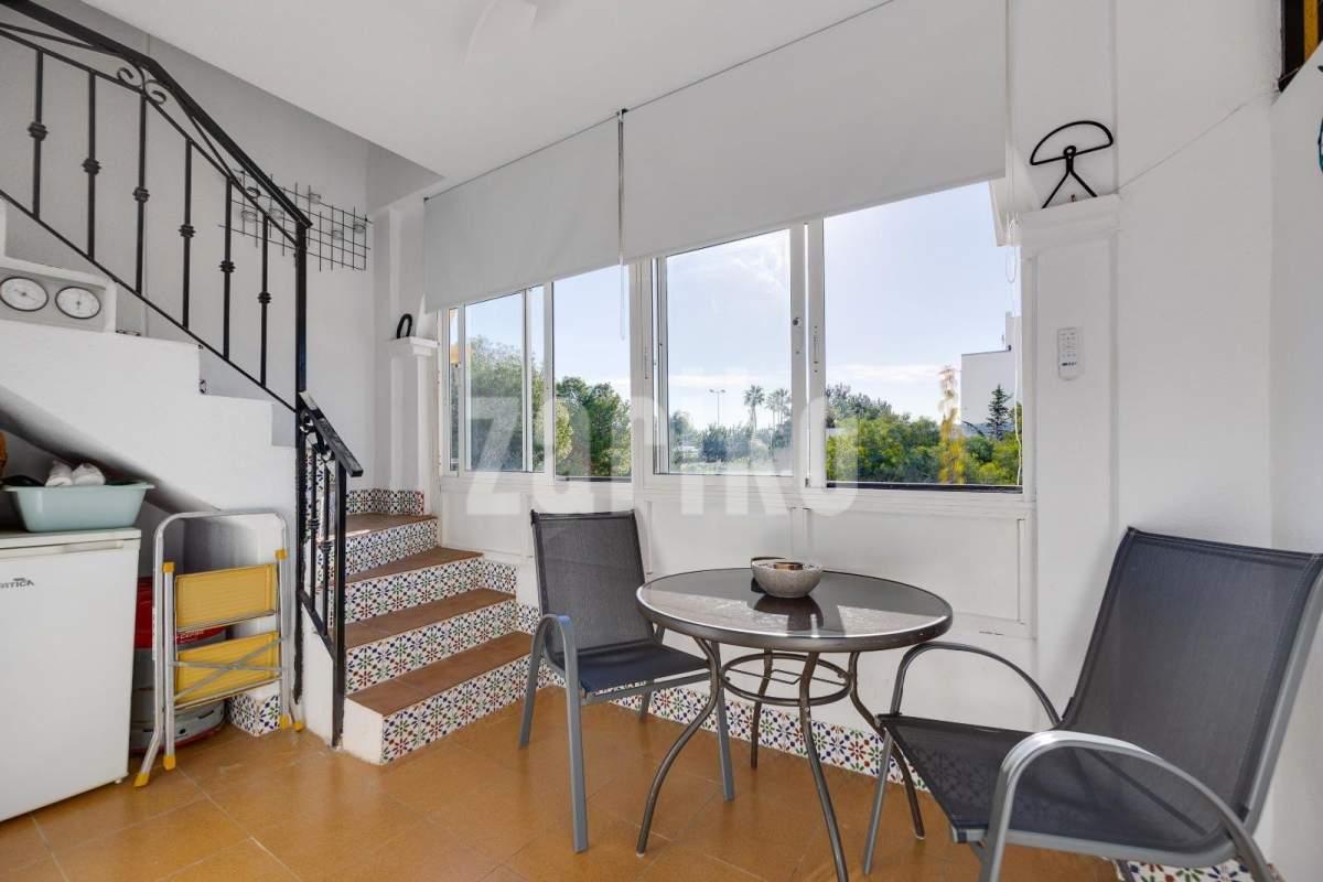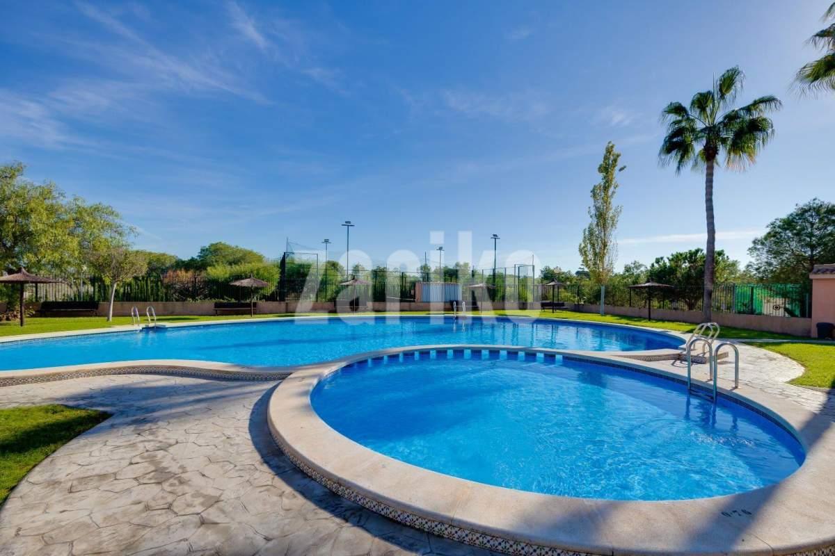 Bungalow reformado en planta alta en Dream Hills – orientación sur, solárium privado y piscina comunitaria Se vende bonito bungalow en planta alta totalmente reformado, situado en la reconocida urbanización Dream Hills, a tan solo 3 kilómetros del mar. La vivienda cuenta con 2 dormitorios, 1 baño, una luminosa sala de estar, cocina equipada y un amplio solárium privado, perfecto para disfrutar del sol durante todo el año gracias a su excelente orientación sur. La urbanización ofrece amplias zonas verdes, piscina comunitaria, pista de tenis y un ambiente tranquilo y familiar, ideal tanto para vivir todo el año como para pasar las vacaciones. Un hogar listo para entrar a vivir, con todo el confort y la luz del Mediterráneo.