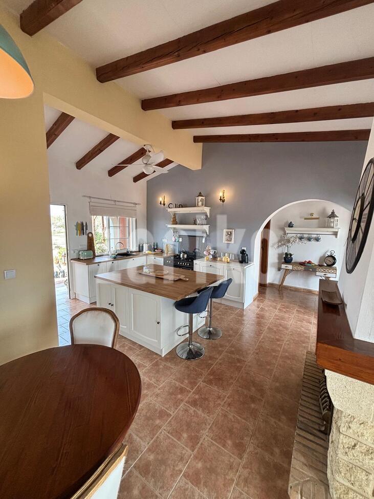 Stunning Country Villa with Breathtaking Mountain Views & Private PoolThis beautiful and spacious villa offers exceptional countryside living, featuring three double bedrooms (with potential to create a fourth), vaulted ceilings, and a modern kitchen complete with exposed beams and a stylish central island. The home enjoys a dual-aspect layout, flooding the interior with natural light and offering magnificent mountain and pool views.Fully equipped for comfort and efficiency, the property includes air conditioning  xxx , solar energy with lithium battery storage, and an xx Electric Vehicle  xx charging point powered by the system. Mains water is also connected.The main bedroom suite features patio doors leading directly to the naya  ? and pool area, a huge walk-in wardrobe, and a luxurious ensuite bathroom with a bath and overhead shower. The villa’s bright and airy living spaces include a large lounge with patio doors opening onto the rear terrace xx decking  Xx —perfect for enjoying the xx sunsets xx and stunning mountain backdrop.Additional features include a spacious utility/food prep room and a converted garage, currently used as a living room and small office but easily adaptable as a fourth bedroom.Outside, the covered naya ? opens onto a raised pool area with ample sunbathing space, all surrounded by fenced land and open farmland views. The property also benefits from a roof solarium offering 360° panoramic views of the surrounding countryside.The land is fully enclosed and comes complete with a tractor xx ride on lawnmower xx , ideal for those wishing to cultivate the land, keep horses, or even explore opportunities such as a motorhome park.This is a truly versatile property offering space, sustainability, and spectacular scenery — perfect for those seeking peace, privacy, and potential in the heart of nature.