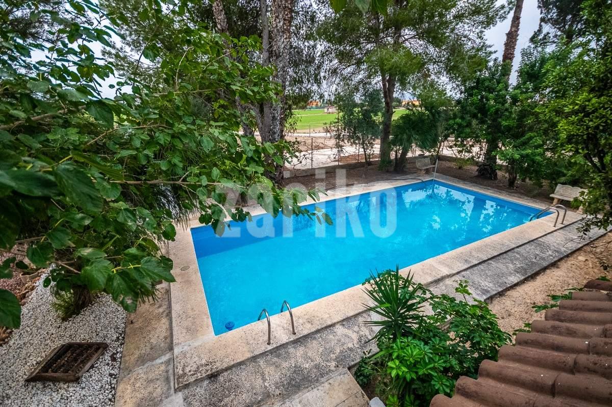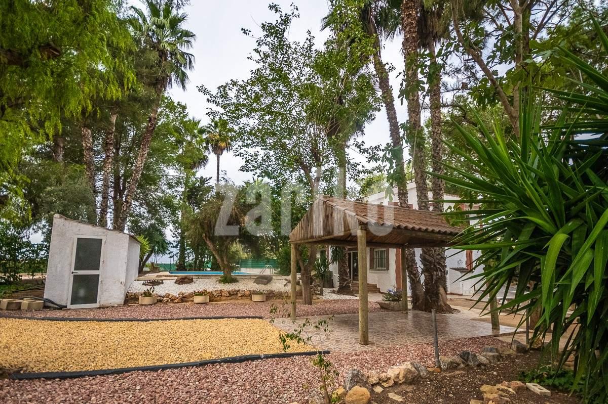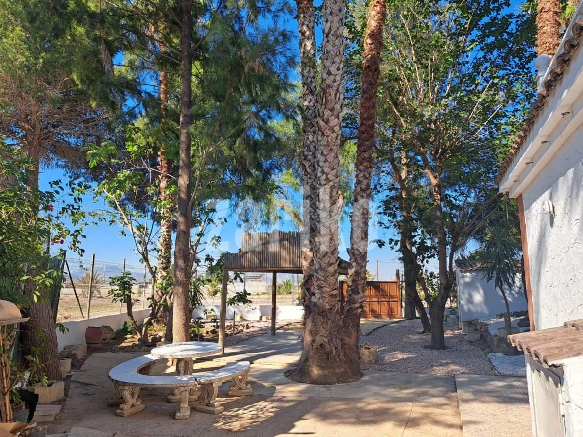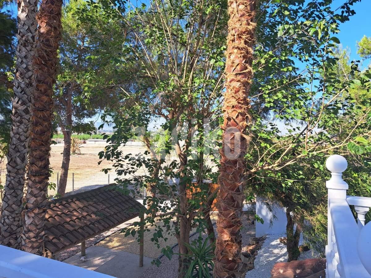 Una finca típica española ubicada en Desamparados (orihuela) a 30 minutos de las costas y 5 minutos de todos los servicios públicos. Esta finca ofrece una combinación armoniosa de encanto tradicional y comodidades modernas, ubicada en una zona tranquila y pintoresca, ideal tanto para vivienda permanente como para vacaciones. El terreno Superficie : 11.000 m² Superficie ajardinada : 1.500 m² totalmente ajardinados con una variedad de plantas, que incluyen flores de colores, hierbas aromáticas, olivos, naranjos y arbustos mediterráneos. La zona ajardinada cuenta con césped bien cuidado y elegantes senderos ajardinados. Piscina : Una preciosa piscina de 4x8, estratégicamente situada para que disfrute del máximo de horas de sol. Alrededor de la piscina hay cómodas tumbonas, sombrillas y un salón cubierto para relajarse a la sombra. La Finca Dormitorios : 5 amplios dormitorios, cada uno con grandes ventanales que dejan entrar mucha luz natural. Las habitaciones están decoradas con buen gusto en estilo rústico. Baños : 3 baños modernos, equipados con materiales de alta calidad. Cada baño tiene una ducha a ras de suelo, lavabo con espacio de almacenamiento y un inodoro. Uno de los baños tiene acceso al dormitorio principal. Cocina : Una cocina cerrada, totalmente equipada con electrodomésticos modernos como vitrocerámica, horno, frigorífico, lavavajillas y microondas. La cocina tiene mucho espacio de trabajo y almacenamiento, y un acogedor comedor para comidas informales. Otras características Sala de estar : una amplia sala de estar con chimenea, cómodos asientos y grandes ventanales con vistas a los jardines y a la piscina. Comedor : Un comedor independiente, ideal para comidas familiares y entretener a los invitados, con acceso directo a una terraza. Terrazas : Varias terrazas cubiertas y abiertas rodean la finca, perfectas para disfrutar del entorno sereno y del cálido clima español. Dependencias : Posiblemente un pequeño espacio de almacenamiento o una casa de invitados en la propiedad, dependiendo de la finca específica. .
