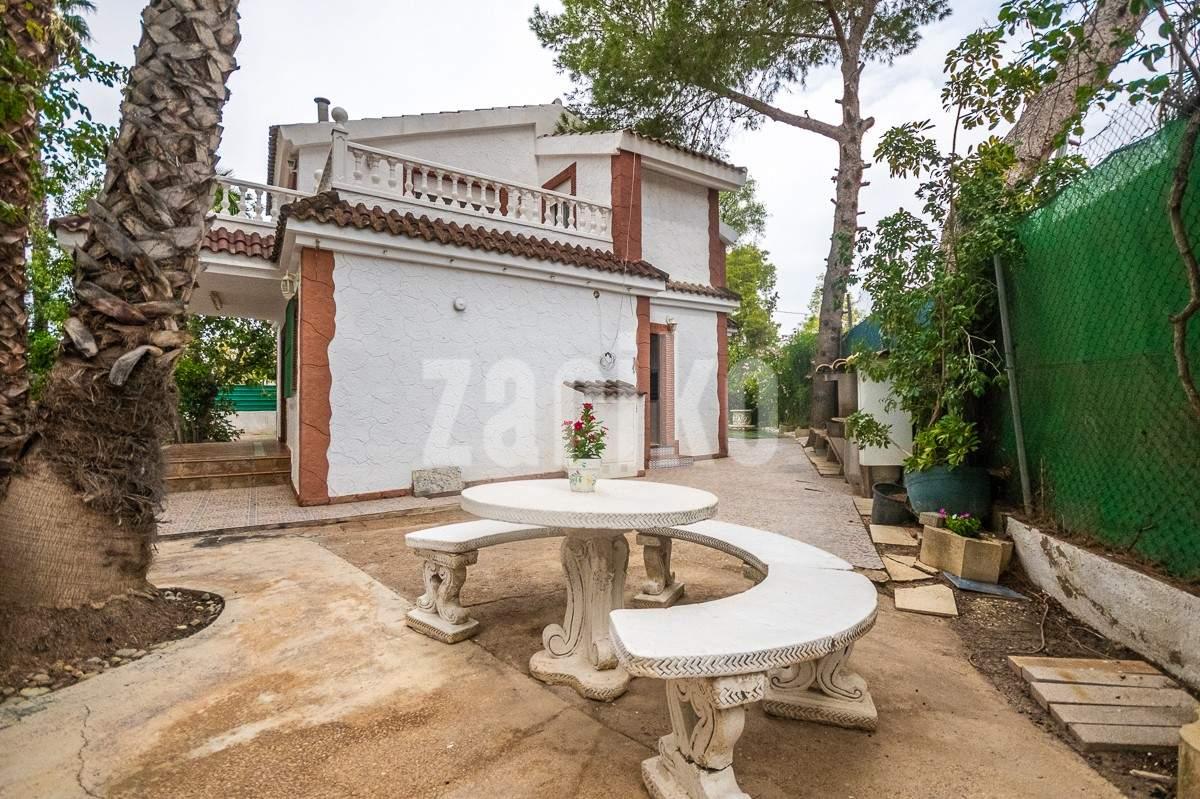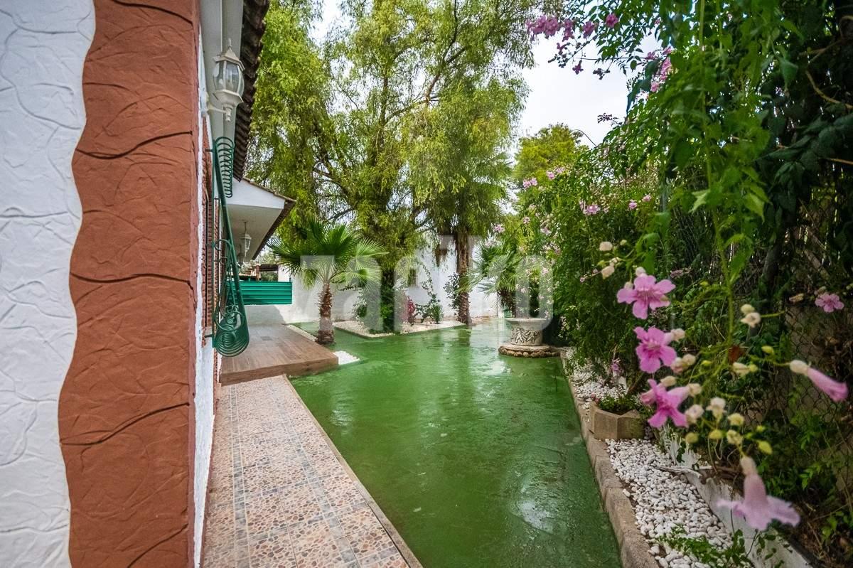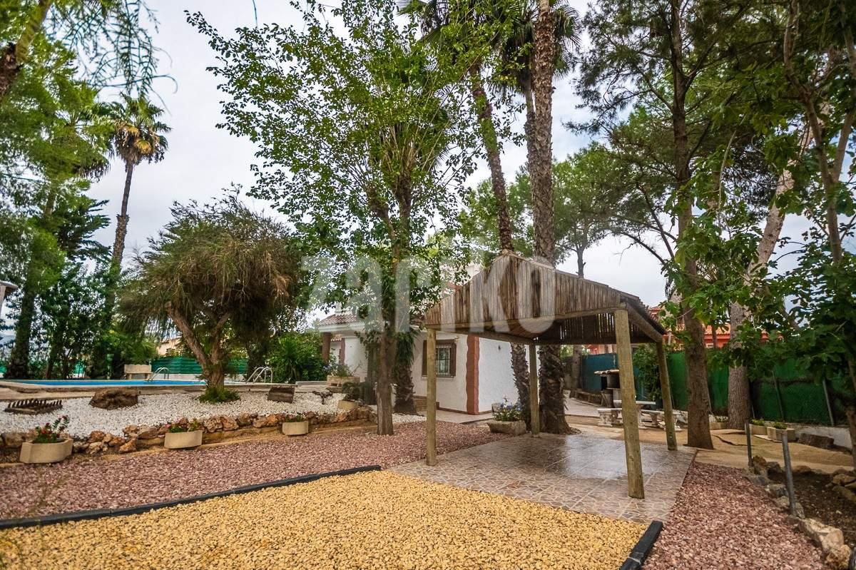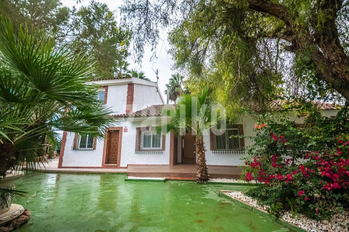 Una finca típica española ubicada en Desamparados (orihuela) a 30 minutos de las costas y 5 minutos de todos los servicios públicos. Esta finca ofrece una combinación armoniosa de encanto tradicional y comodidades modernas, ubicada en una zona tranquila y pintoresca, ideal tanto para vivienda permanente como para vacaciones. El terreno Superficie : 11.000 m² Superficie ajardinada : 1.500 m² totalmente ajardinados con una variedad de plantas, que incluyen flores de colores, hierbas aromáticas, olivos, naranjos y arbustos mediterráneos. La zona ajardinada cuenta con césped bien cuidado y elegantes senderos ajardinados. Piscina : Una preciosa piscina de 4x8, estratégicamente situada para que disfrute del máximo de horas de sol. Alrededor de la piscina hay cómodas tumbonas, sombrillas y un salón cubierto para relajarse a la sombra. La Finca Dormitorios : 5 amplios dormitorios, cada uno con grandes ventanales que dejan entrar mucha luz natural. Las habitaciones están decoradas con buen gusto en estilo rústico. Baños : 3 baños modernos, equipados con materiales de alta calidad. Cada baño tiene una ducha a ras de suelo, lavabo con espacio de almacenamiento y un inodoro. Uno de los baños tiene acceso al dormitorio principal. Cocina : Una cocina cerrada, totalmente equipada con electrodomésticos modernos como vitrocerámica, horno, frigorífico, lavavajillas y microondas. La cocina tiene mucho espacio de trabajo y almacenamiento, y un acogedor comedor para comidas informales. Otras características Sala de estar : una amplia sala de estar con chimenea, cómodos asientos y grandes ventanales con vistas a los jardines y a la piscina. Comedor : Un comedor independiente, ideal para comidas familiares y entretener a los invitados, con acceso directo a una terraza. Terrazas : Varias terrazas cubiertas y abiertas rodean la finca, perfectas para disfrutar del entorno sereno y del cálido clima español. Dependencias : Posiblemente un pequeño espacio de almacenamiento o una casa de invitados en la propiedad, dependiendo de la finca específica. .