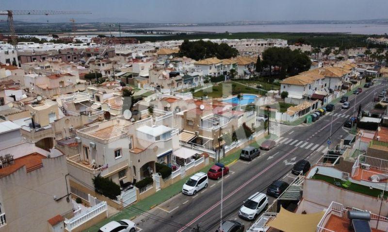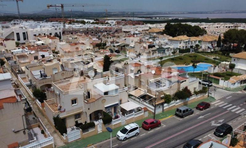 Descubre esta luminosa y acogedora vivienda adosada ubicada en una de las zonas más deseadas de Torrevieja, en el residencial Lago Jardín. Esta propiedad, ideal tanto para residencia habitual como para vacaciones, combina confort, amplitud y un entorno natural único.La vivienda cuenta con 3 amplios dormitorios y 2 baños completos, distribuidos de manera funcional para ofrecer el máximo confort y privacidad. El salón-comedor separado de una cocina independiente totalmente equipada, creando un espacio perfecto para compartir en familia o con amigos.Disfruta del cálido clima mediterráneo en su terraza-jardín privada, perfecta para desayunos al aire libre o veladas tranquilas al atardecer. Además, la propiedad dispone de un solárium privado con impresionantes vistas panorámicas a la emblemática Laguna Rosa de Torrevieja, un lugar ideal para tomar el sol o relajarte contemplando el paisaje.La urbanización cuenta con una gran piscina comunitaria rodeada de zonas ajardinadas, ofreciendo un ambiente agradable y seguro para toda la familia.Situado en un entorno tranquilo pero bien comunicado, con fácil acceso a servicios, transporte público, supermercados, y a pocos minutos de las playas y del centro de Torrevieja.