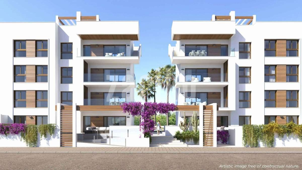 Nuevas residencias de estilo mediterráneo en Los Alcázares, Costa Cálida Vida costera moderna en una ubicación privilegiada Descubra esta exclusiva promoción nueva en Los Alcázares, una encantadora localidad costera de la Región de Murcia conocida por su relajado ambiente mediterráneo, sus playas doradas y su sol durante todo el año. El complejo combina diseño moderno, comodidad y estilo para crear una experiencia residencial única en una de las zonas costeras más deseadas del sur de España. Los Alcázares cuenta con 7 kilómetros de costa a lo largo del Mar Menor, una laguna natural de agua salada famosa por sus aguas tranquilas y terapéuticas y su clima templado, con una temperatura media de 18 °C durante todo el año. La localidad ofrece una amplia gama de servicios, como restaurantes, supermercados, tiendas, centros médicos y zonas de ocio, todos ellos a poca distancia a pie. Elegantes viviendas con espacios exteriores privados Elija entre apartamentos de 2 o 3 dormitorios, todos con 2 baños (uno en suite) y amplias zonas exteriores. Las viviendas de la planta baja cuentan con jardines privados, las de las plantas intermedias ofrecen amplias terrazas y los áticos de la planta superior incluyen soláriums privados, perfectos para disfrutar del sol, comer al aire libre o simplemente relajarse en su propio refugio de paz. Cada propiedad está diseñada con acabados modernos y materiales de alta calidad, lo que garantiza el confort y la eficiencia energética. Todas las viviendas incluyen una plaza de aparcamiento y algunas unidades, también un trastero, lo que ofrece practicidad y comodidad. Comunidad y servicios excepcionales Esta comunidad cerrada ofrece hermosos jardines, una gran piscina comunitaria y muchas zonas verdes para relajarse. El diseño residencial fomenta la vida al aire libre, integrándose perfectamente con el entorno natural y creando un ambiente tranquilo y seguro. Situada a solo 900 metros de la playa de Los Narejos y a solo 10 minutos a pie del centro de la ciudad, los residentes pueden disfrutar de lo mejor de la vida costera y tener todas las comodidades cerca. El aeropuerto internacional de la Región de Murcia está a solo 22 km (aproximadamente 30 minutos) y la histórica ciudad de Cartagena está a solo 15 minutos en coche. Varios campos de golf, como Roda Golf y La Serena Golf, se encuentran a menos de 5 km, lo que lo convierte en el destino ideal para los amantes del golf. Un equilibrio perfecto entre relajación y actividad Los Alcázares no solo es un paraíso para la relajación, sino también un centro de deportes al aire libre y cultura. Las tranquilas aguas del Mar Menor son ideales para practicar windsurf, kitesurf y vela, mientras que sus alrededores ofrecen senderos pintorescos y rutas en bicicleta. Su hogar ideal bajo el sol le espera Tanto si busca una residencia permanente, un refugio para las vacaciones o una oportunidad de inversión inteligente, este nuevo complejo residencial en Los Alcázares ofrece la combinación perfecta de encanto mediterráneo, comodidad y estilo de vida. Póngase en contacto con nosotros hoy mismo para concertar una visita y descubrir su nuevo hogar en la Costa Cálida.