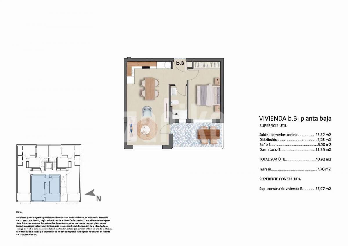 Nuevos apartamentos mediterráneos a solo 140 m de la playa en Torre de la Horadada Vida exclusiva junto al mar en la Costa Blanca Descubra este nuevo proyecto residencial en Torre de la Horadada, con una ubicación ideal a solo 140 metros del mar, entre las Playas de El Conde y de El Puerto y junto al puerto deportivo. Esta exclusiva promoción cuenta con solo 8 modernos apartamentos de estilo mediterráneo, que ofrecen una combinación única de encanto costero y comodidad contemporánea en una de las ubicaciones más codiciadas de la Costa Blanca Sur. Situadas en un tranquilo y pintoresco pueblo costero, estas viviendas están rodeadas de servicios esenciales como supermercados, restaurantes, cafeterías y tiendas, todos ellos a poca distancia a pie. La zona es conocida por su ambiente relajado, sus aguas cristalinas y su entorno familiar. Diseño elegante y acabados de calidad Cada apartamento cuenta con 1, 2 o 3 dormitorios y 1 o 2 baños, cuidadosamente diseñados para maximizar el espacio y la luz natural. Los interiores cuentan con: Puerta de entrada de seguridad para mayor tranquilidad Armarios empotrados en los dormitorios, totalmente revestidos y acabados Baños modernos equipados con muebles, espejos y mamparas de ducha Preinstalación de aire acondicionado por conductos para disfrutar de confort durante todo el año Estos acabados de alta calidad crean espacios luminosos y funcionales, perfectos tanto para residencia permanente como para uso vacacional. Solárium en la azotea con piscina y zona chill-out La característica más destacada de esta promoción es el solárium comunitario en la azotea, al que se puede acceder por escaleras o ascensor. Los residentes pueden disfrutar de una piscina en la azotea, una zona de cocina al aire libre, barbacoa y comedores bajo pérgolas, y una zona para tomar el sol con césped artificial. Este exclusivo oasis en la azotea es el lugar perfecto para relajarse bajo el sol español. Ubicación privilegiada y excelentes conexiones Torre de la Horadada es conocida por su impresionante costa, su puerto deportivo y su animado paseo marítimo. La promoción ofrece fácil acceso a destinos cercanos: Playas: 100 m Campo de golf Lo Romero: 7 km San Pedro del Pinatar: 5 km Aeropuerto de Murcia-Corvera: 40 minutos (55 km) Aeropuerto de Alicante: 55 minutos (75 km) La casa de playa de sus sueños le espera Con su inmejorable ubicación, su elegante diseño y sus excepcionales servicios comunitarios, este nuevo proyecto residencial boutique en Torre de la Horadada es la oportunidad perfecta para disfrutar del estilo de vida mediterráneo. Póngase en contacto con nosotros hoy mismo para concertar una visita y asegurarse su nueva casa a pocos pasos del mar en la Costa Blanca.