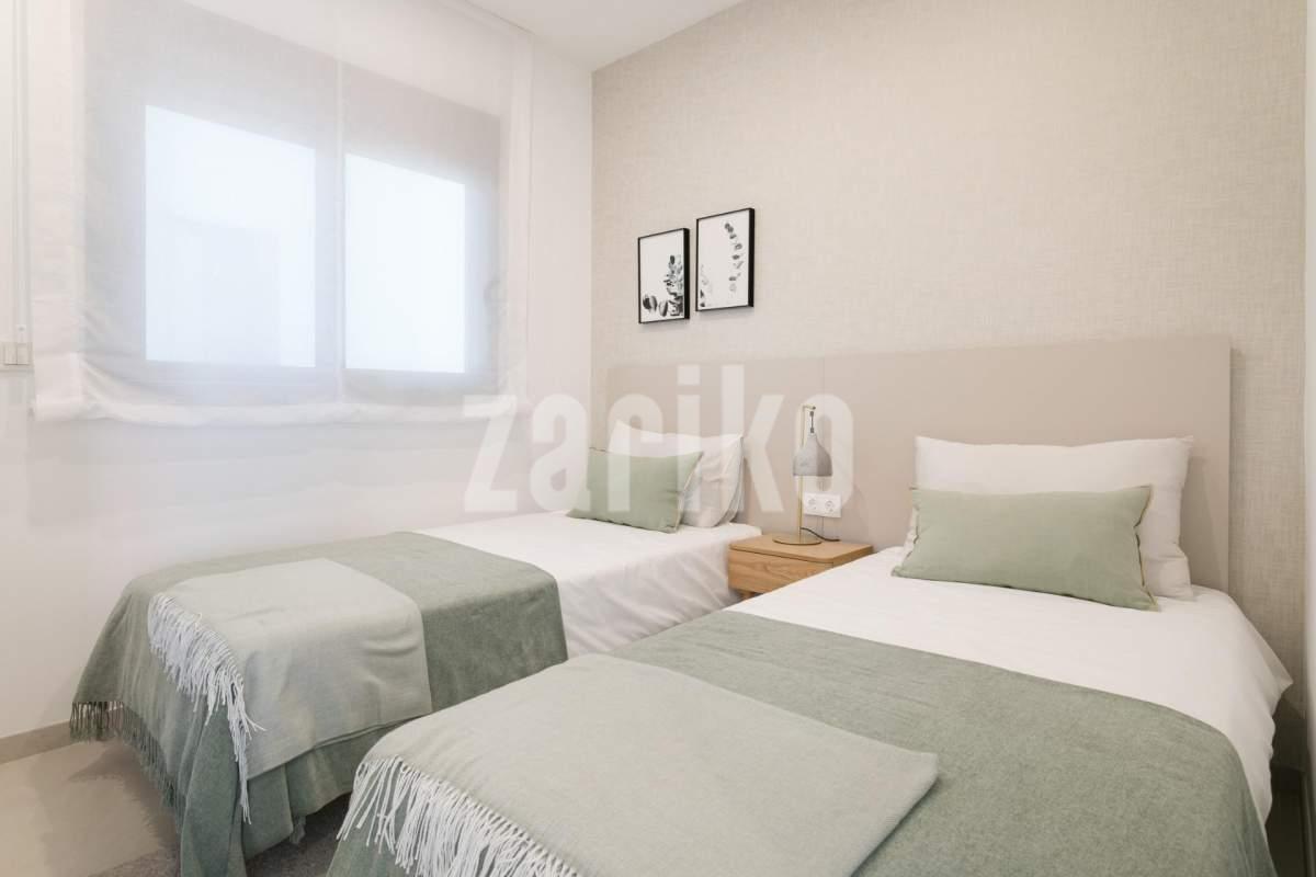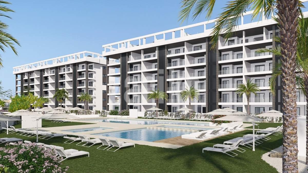URBANIZACION CERRADA DE OBRA NUEVA EN TORREVIEJA A SOLO 700M DE LA PLAYA Complejo residencial de nueva construcción de 362 apartamentos con amplias zonas comunitarias en Torrevieja. Puede elegir entre lujosos apartamentos de 2 dormitorios y 2 baños, áticos de 3 dormitorios y 2 baños con solarium privado y apartamentos de 2 dormitorios y 2 baños en planta baja con jardín privado. -Diseños modernos y acabados y materiales de calidad -Casi todos los apartamentos tienen vistas al mar -Todos los apartamentos cuentan con amplias terrazas frontales orientadas a las zonas comunitarias -Zonas comunitarias con dos piscinas para adultos, piscina para niños, zona infantil, gimnasio, zona deportiva y spa, aparcamiento de bicicletas y zona de aparcamiento de vehículos -700 metros hasta la playa de La Mata, 10 minutos andando -Enfrente del Centro Comercial Torremarina con Mercadona, restaurantes, cafeterías y otras tiendas Torrevieja es una ciudad española de la provincia de Alicante, en la Costa Blanca. Es conocida por su clima y su costa típicamente mediterráneos. Cuenta con paseos marítimos con complejos turísticos a lo largo de sus playas de arena. El pequeño Museo del Mar y la Sal alberga exposiciones sobre la historia pesquera y salinera de la ciudad. En el interior, el Parque Natural de las Lagunas de La Mata-Torrevieja cuenta con senderos y dos lagunas saladas, una rosa y otra verde. El aeropuerto de Alicante se encuentra a 40 minutos y el de Murcia a una hora.
