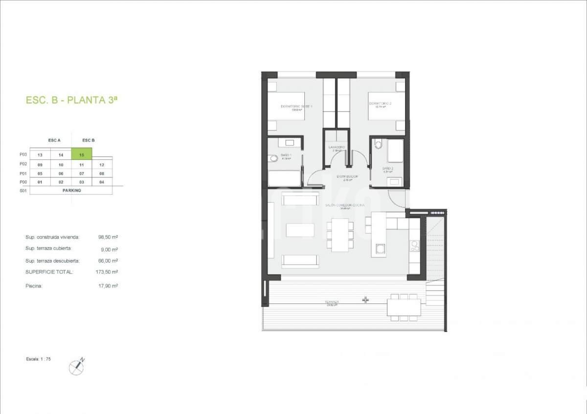 COMPLEJO RESIDENCIAL DE OBRA NUEVA EN LAS COLINAS GOLF La promoción de obra nueva consta de 15 apartamentos de lujo con enormes terrazas con vistas a la zona verde natural circundante. Hemos realizado una combinación de arquitectura mediterránea moderna y tradicional. Nuestra idea desde el principio ha sido hacer los apartamentos, con una descripción de materiales que incluye entre otros, calefacción por suelo radiante con agua, grifo quooker, sistema de renovación de aire, techos de reducción de sonido, cocinas lacadas, sistema de casa inteligente y mucho más. Teniendo en cuenta la ubicación privilegiada y las vistas creemos que el complejo ofrece las condiciones ideales para satisfacer los criterios de clientes con gusto exquisito. La tercera planta consta de 3 apartamentos: 2 apartamentos con 3 dormitorios, 3 baños y un aseo y 1 apartamento con 2 dormitorios y 2 baños. Desde los apartamentos se tiene acceso directo a grandes terrazas en el mismo nivel que el apartamento. Además, hay una escalera que lleva al solarium, donde cada apartamento de la planta superior tiene una piscina privada, un aseo, una cocina al aire libre con un pequeño ascensor desde la cocina de abajo y mucho más. En Las Colinas Golf & Country Club encontrará además una amplia variedad de servicios para los propietarios como tenis, padel-tenis, fitness, masajes, golf, senderismo y mucho más. Dentro de Las Colinas Golf & Country Club también encontrará varios restaurantes así como un minimarket con pan recién horneado y mucho más. Disfrutará de 200.000 metros cuadrados de hermosos paisajes mediterráneos y podrá realizar pintorescos paseos por la exuberante flora autóctona y los extensos campos de naranjos y limoneros. Complejo situado a 40 minutos del aeropuerto de Alicante y a 1 hora del aeropuerto de Murcia - Corvera.
