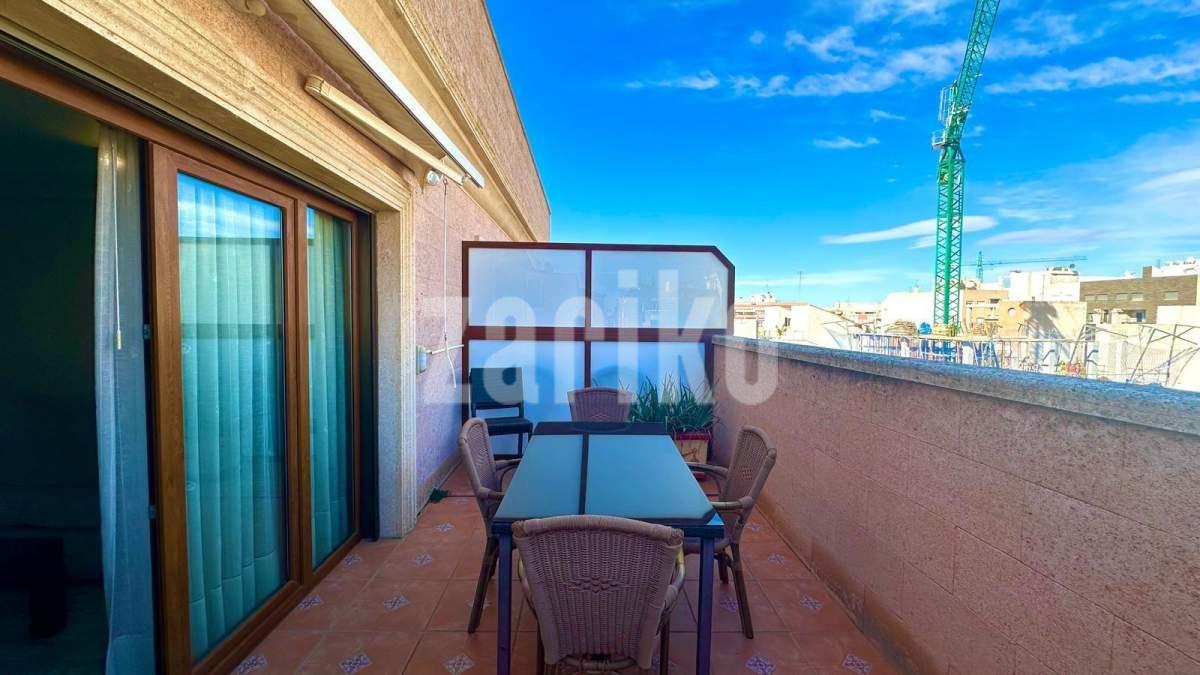 Ático a 450 metros de la playa – luminoso, funcional y con excelente ubicación Se ofrece este acogedor ático situado a tan solo 450 metros de la playa, una oportunidad ideal para quienes desean disfrutar del clima mediterráneo y la vida costera sin renunciar a la comodidad de tener todos los servicios a su alcance. Su localización privilegiada permite acceder caminando a supermercados, restaurantes, farmacias, colegios y paradas de transporte público, lo que lo convierte en una opción perfecta tanto para residencia habitual como para vivienda vacacional o inversión. El inmueble cuenta con una distribución práctica y confortable, pensada para aprovechar al máximo cada espacio: Salón-comedor de buen tamaño, situado nada más entrar a la vivienda, equipado con aire acondicionado, ofreciendo un ambiente fresco y agradable durante los meses más cálidos. Cocina independiente, completamente funcional, con salida directa a la terraza, lo que facilita la ventilación y la comunicación con el exterior. Amplia terraza privada, ideal para disfrutar de comidas al aire libre, tomar el sol o relajarse con total privacidad. Dos dormitorios dobles, uno de ellos, el principal, con aire acondicionado instalado para mayor confort. Cuarto de baño completo, en buen estado de conservación y perfectamente distribuido. Gracias a su orientación norte, la vivienda se mantiene fresca durante el verano, evitando el exceso de calor, lo que la hace especialmente cómoda para quienes buscan una temperatura equilibrada durante todo el año. El edificio dispone además de un solárium comunitario, un espacio perfecto para tomar el sol, disfrutar de las vistas panorámicas o relajarse en un ambiente tranquilo. En resumen, este ático combina ubicación, comodidad y funcionalidad, ofreciendo todo lo necesario para disfrutar de la vida junto al mar. Su cercanía a la playa, el entorno con todos los servicios y su buena conservación hacen de esta propiedad una excelente oportunidad de compra tanto para vivir como para invertir.