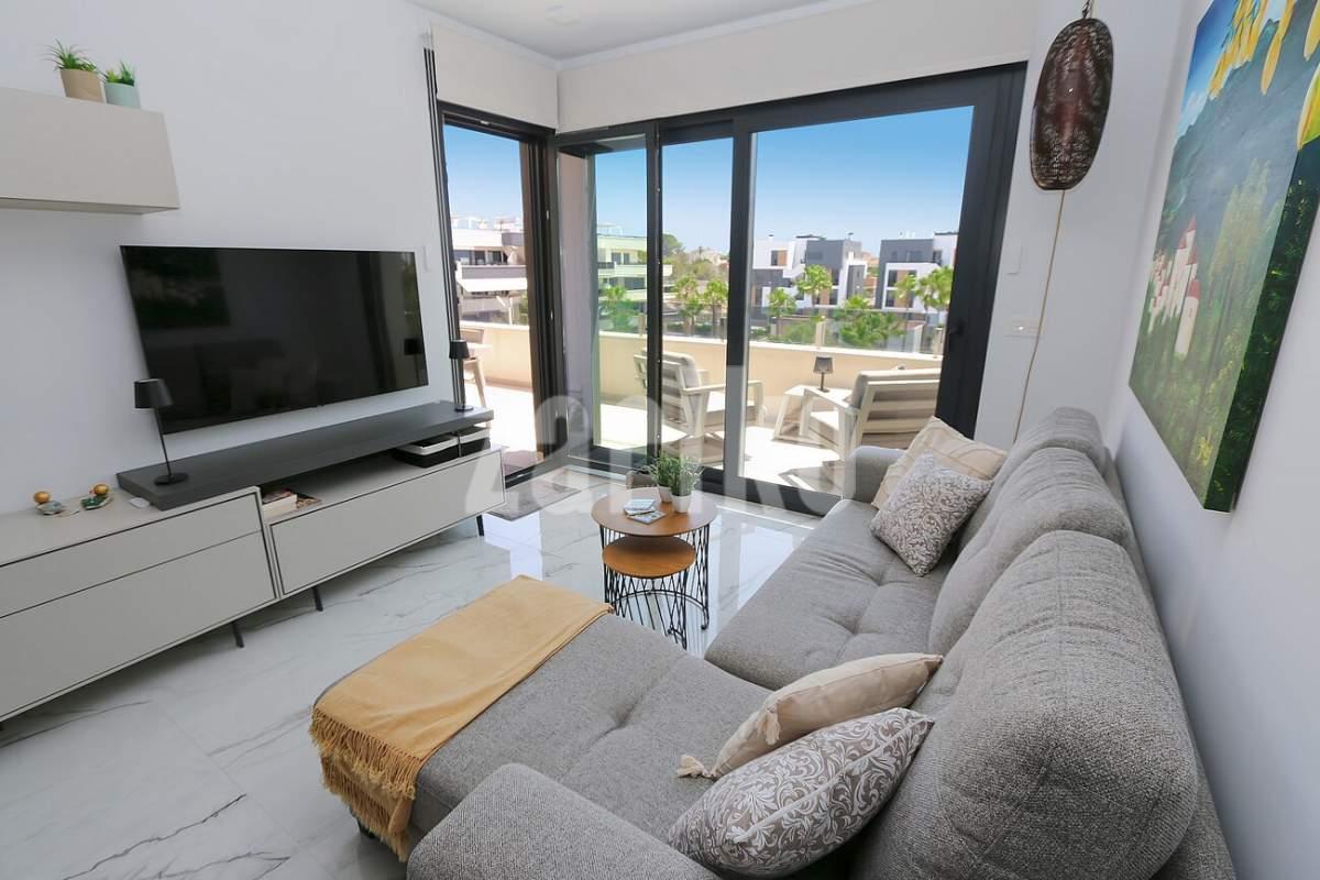 Lista para Entrar a Vivir & Parcialmente AmuebladaLa vivienda se vende parcialmente amueblada: incluye mobiliario interior elegante, accesorios y varios artículos prácticos – ¡solo necesitas traer tus maletas!Comunidad con Instalaciones PremiumEl complejo ofrece piscina comunitaria, gimnasio y sauna – todo lo necesario para disfrutar de una vida cómoda y saludable, todo el año.Ubicación Privilegiada en Los AltosLos Altos es conocido por su ambiente tranquilo, sus excelentes servicios y su proximidad a las playas, tiendas y restaurantes. Una combinación perfecta de espacio, comodidad y encanto mediterráneo.Una oportunidad única para quienes buscan lujo, tranquilidad y sol en la Costa Blanca – ¡cada día del