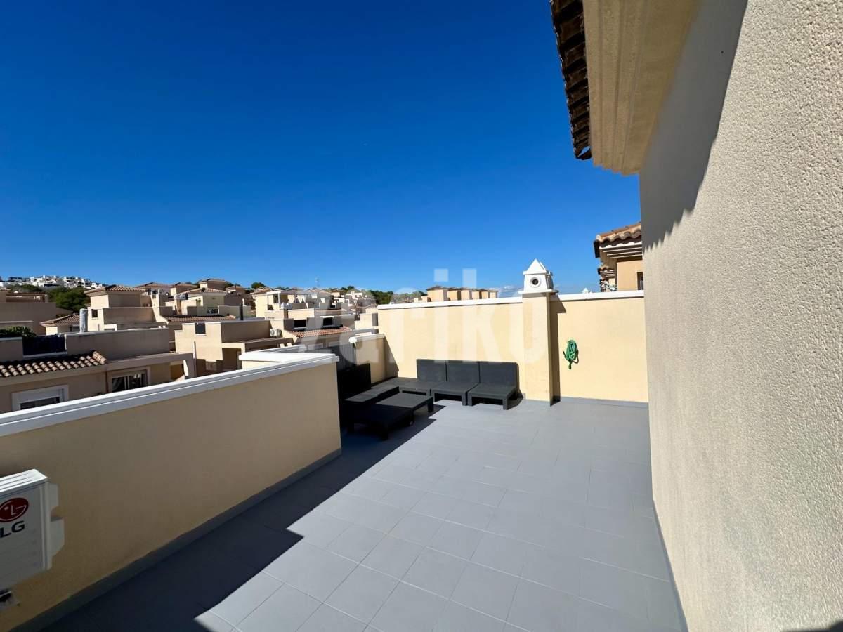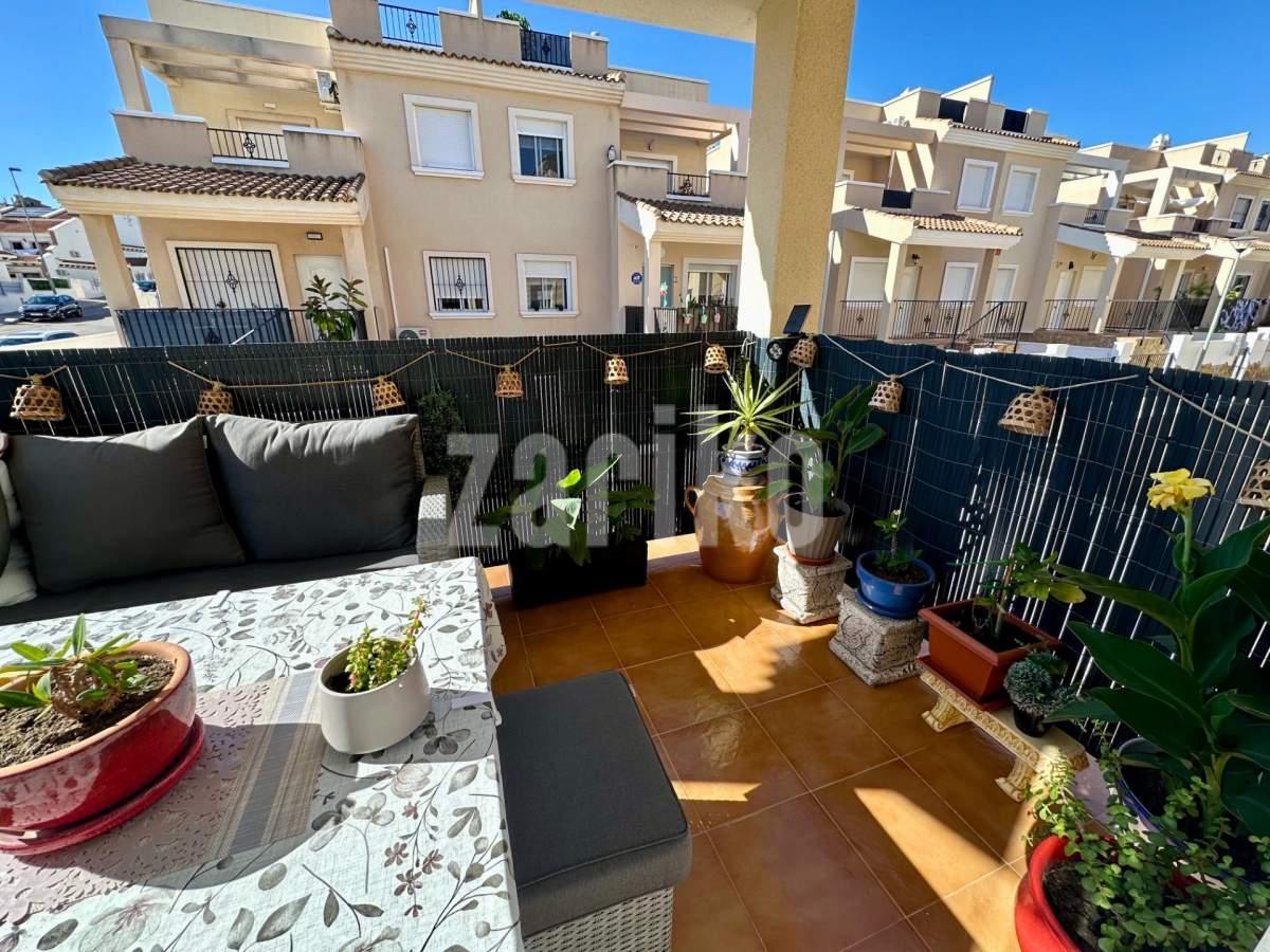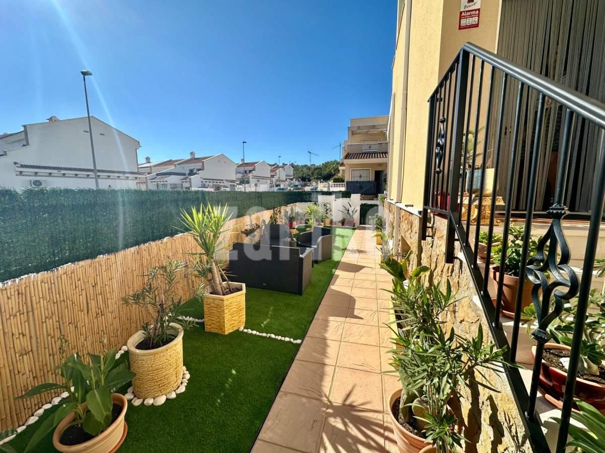Townhouse with Basement & Solarium in San Miguel de Salinas This well-presented four-bedroom townhouse is located in a gated community with communal pool in San Miguel de Salinas. The property offers a bright living room with access to a sunny terrace, a separate kitchen, one bedroom, and a bathroom on the ground floor. Upstairs you’ll find two additional bedrooms, one with a private terrace, plus a family bathroom. A private solarium provides open views and all-day sunshine, while the spacious basement has been converted into an extra living area with lounge, bedroom space, and a large storage room. Perfect for permanent living or holidays, this home combines space, comfort, and excellent location—just a short drive from Orihuela Costa beaches, golf courses, and local amenities.