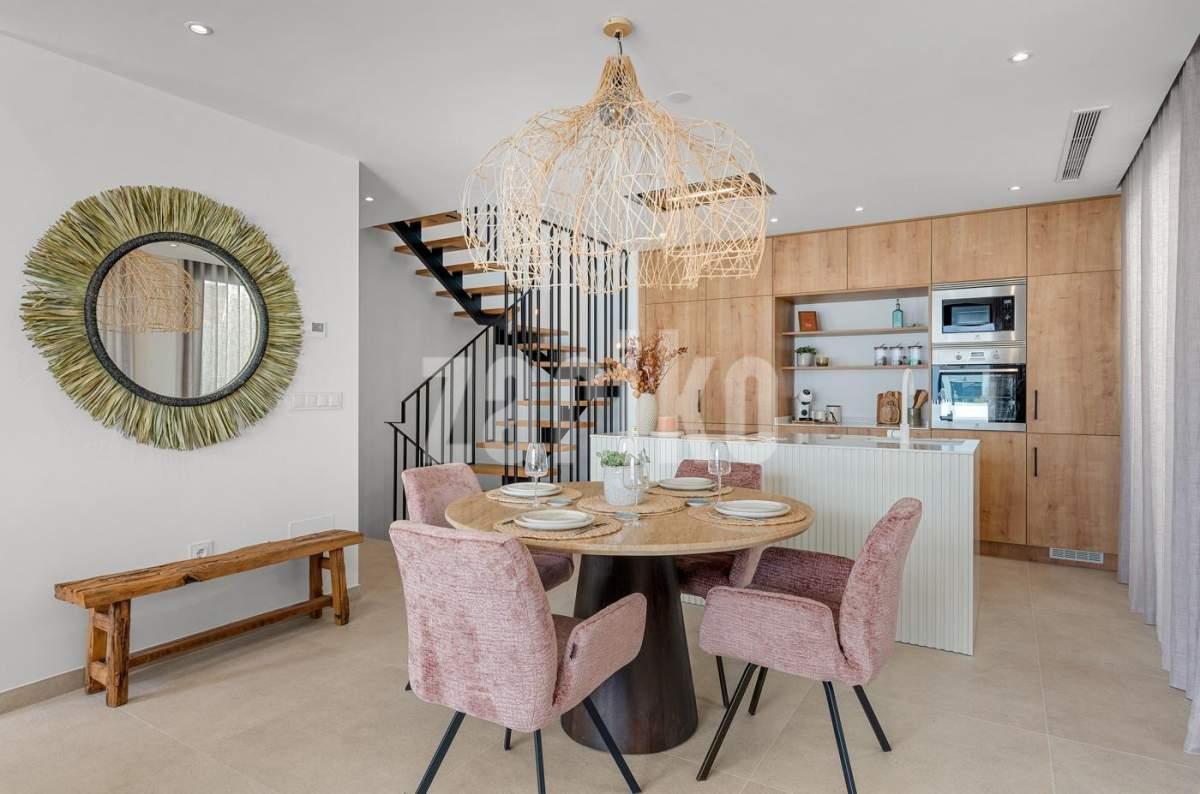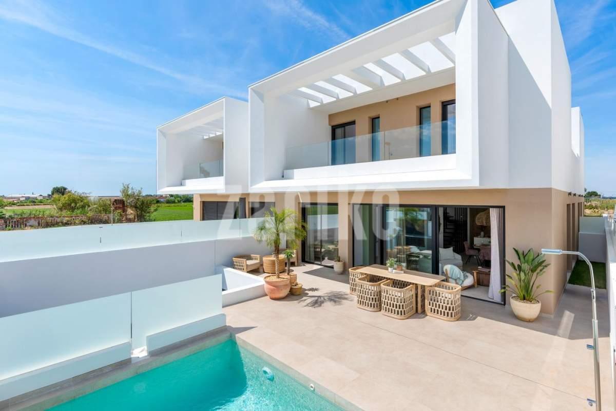 Villas adosadas y pareadas de nueva construcción en Dolores, Alicante Descubra esta exclusiva promoción de 20 modernas villas adosadas y pareadas en Dolores, un encantador pueblo situado en el corazón de la Vega Baja, en la provincia de Alicante. Rodeado de huertos y belleza natural, Dolores ofrece un estilo de vida tranquilo a poca distancia en coche de la costa mediterránea. Villas contemporáneas con piscinas privadas Cada vivienda de esta nueva promoción está cuidadosamente diseñada en dos plantas y cuenta con: 3 amplios dormitorios 2 baños completos y 1 aseo de invitados Cocina americana con isla, amueblada y equipada con electrodomésticos Luminoso salón-comedor con acceso directo a la terraza Jardín privado con piscina, sistema de filtración e iluminación LED Aparcamiento en la parcela Estas villas combinan funcionalidad y estilo, ofreciendo todo lo necesario para la vida moderna en el Mediterráneo. Características de alta eficiencia y comodidades modernas Construidas con los más altos estándares, las viviendas incluyen: Instalación de aire acondicionado por conductos en ambas plantas Sistema de calefacción por aire térmico de 250 litros Calefacción eléctrica por suelo radiante en los baños Persianas motorizadas Iluminación LED en todo el interior y el exterior Paneles solares fotovoltaicos de 3 kW para una mayor eficiencia energética Estas características garantizan un entorno doméstico sostenible y confortable durante todo el año. Ubicación ideal cerca de la costa y de los servicios Dolores es una localidad bien comunicada y en crecimiento, a solo 12 km de las impresionantes playas de La Marina y Guardamar del Segura. La zona cuenta con todos los servicios esenciales, como tiendas, restaurantes, colegios y centros de salud. Además, mantiene un ambiente tranquilo y residencial, ideal para familias y jubilados. Distancias a los principales puntos de interés: Playa de La Marina: 12 km Guardamar del Segura: 14 km Aeropuerto de Alicante: 30 km Aeropuerto de Murcia-Corvera: 85 km La Marquesa Golf (Ciudad Quesada): 13 km Torrevieja: 25 km Su nuevo hogar le espera en Dolores Tanto si busca una residencia permanente, un refugio para las vacaciones o una inversión en la Costa Blanca, estas nuevas villas en Dolores son la elección perfecta. Póngase en contacto con nosotros hoy mismo para obtener más información o concertar una visita.