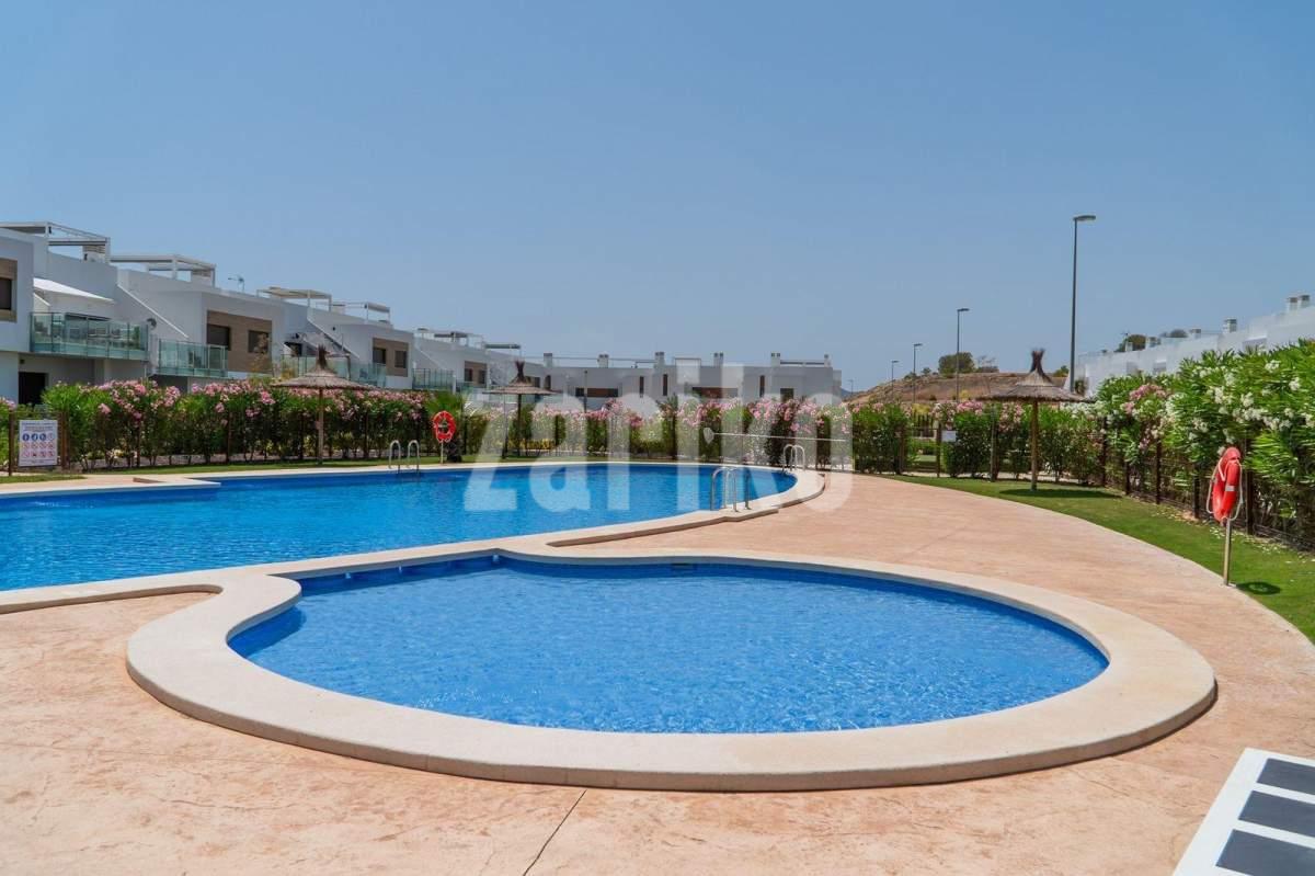 RESIDENCIAL DE OBRA NUEVA DE BUNGALOW EN VISTABELLA Residencial de obra nueva de bungalows de diseño moderno en Vistabella. Modernos bungalows de 2 y 3 dormitorios, cocina americana y salón, armarios empotrados, plaza de garaje. Los bungalows de planta baja disponen de jardín privado y los de planta alta de solarium privado. El residencial cuenta con jardines comunitarios muy bien diseñados con una preciosa piscina comunitaria. Estos preciosos y espaciosos apartamentos están siendo construidos con productos y materiales de primera calidad. En Vistabella Golf hay espacio para todos. El campo está diseñado para que cada jugador pueda disfrutarlo de principio a fin. Sus calles onduladas, bunkers estratégicos o lagos son algunas de las características que lo convierten en uno de los diseños más atractivos de la zona, donde cada golpe es un reto y un placer para los sentidos. Los 18 Hoyos de Vistabella Golf, par 72 y más de 6.000 metros de longitud han sido diseñados siguiendo las pautas de los campos modernos con 4 tees de gran amplitud en cada hoyo, calles anchas y bunkers elevados. La casa club y restaurante de Vistabella Golf y los bares y tiendas de la zona se encuentran a 5 minutos a pie. La animada ciudad de San Miguel de Salinas y Los Montesinos están a 5 minutos en coche y las hermosas playas de bandera azul en Guardamar están a sólo 15 minutos en coche. El aeropuerto de Alicante está a 35 minutos y el nuevo aeropuerto de Corvera Murcia está a 45 minutos.