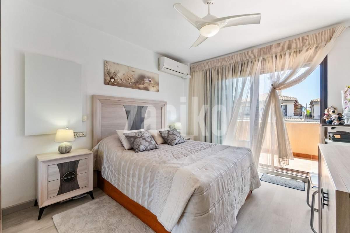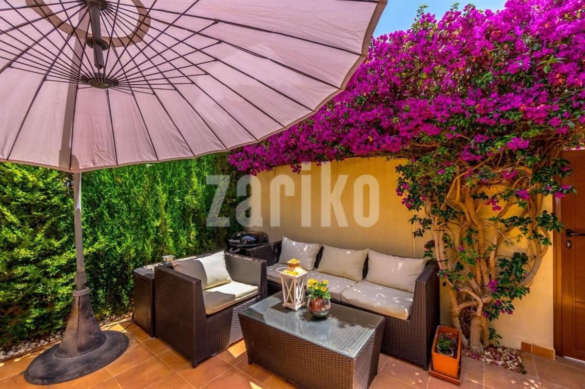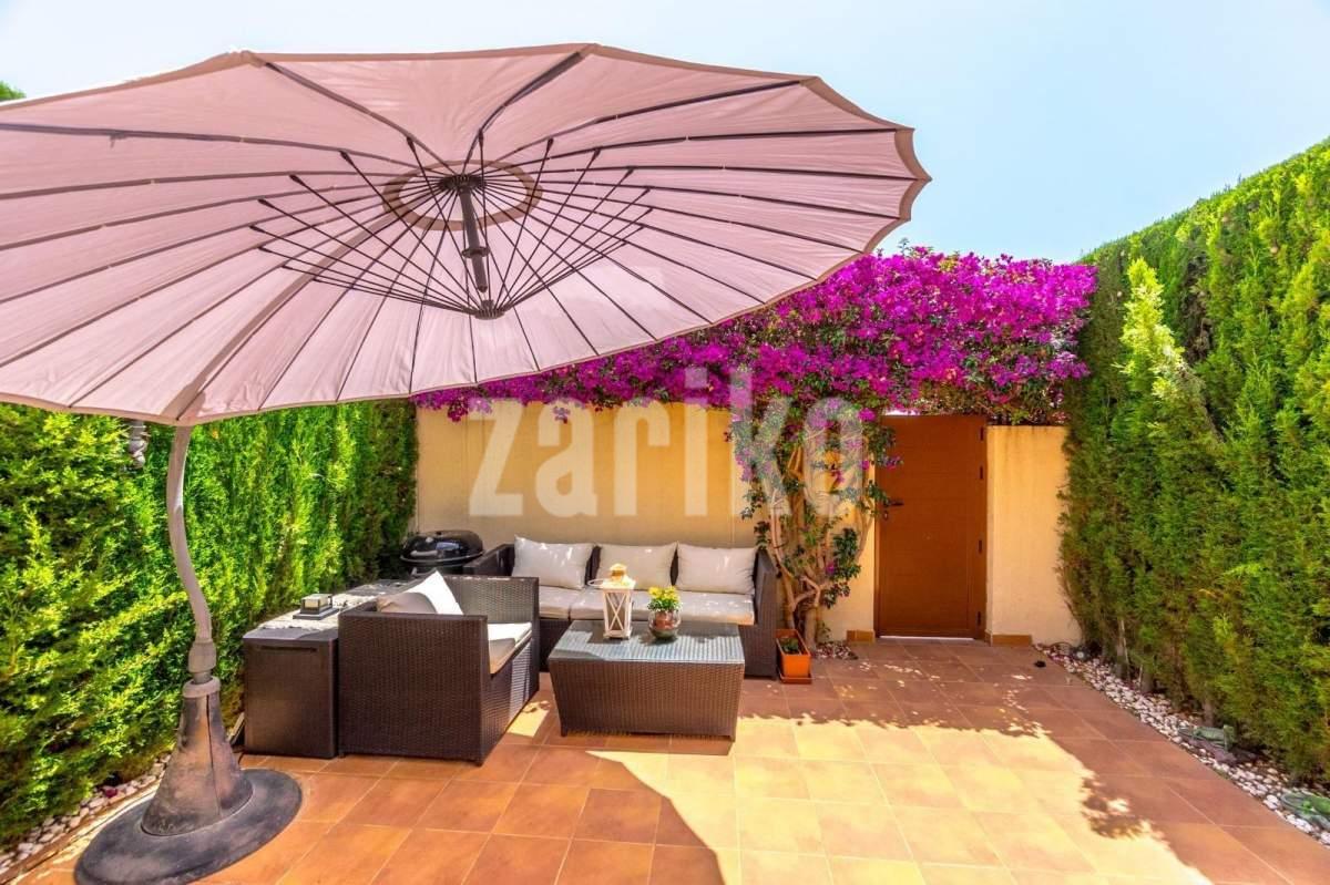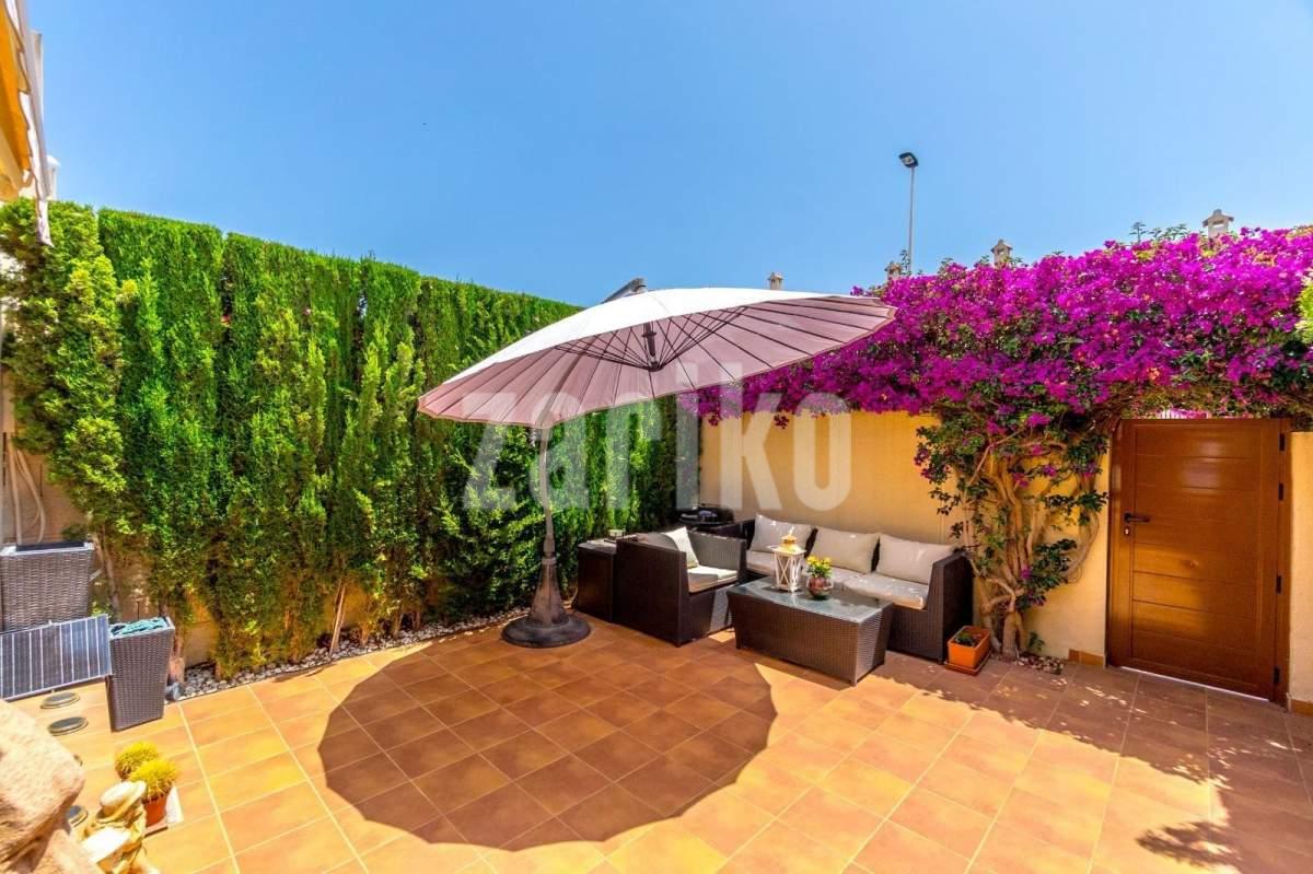 Este magnífico adosado de dos plantas combina privacidad, confort y diseño contemporáneo en una vivienda completamente reformada y decorada con un gusto exquisito. Dispone de tres amplios dormitorios con armarios empotrados y dos baños modernos, ofreciendo un espacio funcional y elegante. La cocina totalmente equipada se integra con un salón luminoso y acogedor, amueblado con piezas de alta calidad, incluyendo dos sofás de cuero. Los espacios exteriores son un verdadero privilegio: una terraza delantera de 43 m² con muebles de ratán, un patio trasero íntimo, un balcón en la planta superior y un solárium privado de 40 m², perfectos para disfrutar del sol y del estilo de vida mediterráneo durante todo el año. La vivienda se vende completamente equipada, incluyendo tres televisores (50" a 65"), electrodomésticos de primeras marcas como lavavajillas Bosch y calentador Ariston Wi-Fi, aire acondicionado Panasonic, calefacción por infrarrojos en todas las estancias y ventanas automáticas. En materia de seguridad y confort, cuenta con sistema de alarma, cámaras de vigilancia, puertas y ventanas antirrobo de alta resistencia, rejas de seguridad y grifería Grohe. En el exterior, el jardín con iluminación ambiental, riego automático y toldos aporta el toque perfecto. Totalmente renovado —suelos, baños, habitaciones y exteriores—, este adosado se entrega listo para entrar a vivir, con todo el mobiliario y decoración que aparece en las fotografías. Una propiedad única para quienes buscan calidad, estilo y tranquilidad en una ubicación privilegiada.