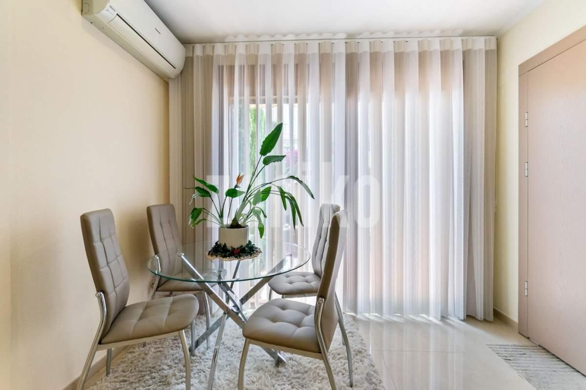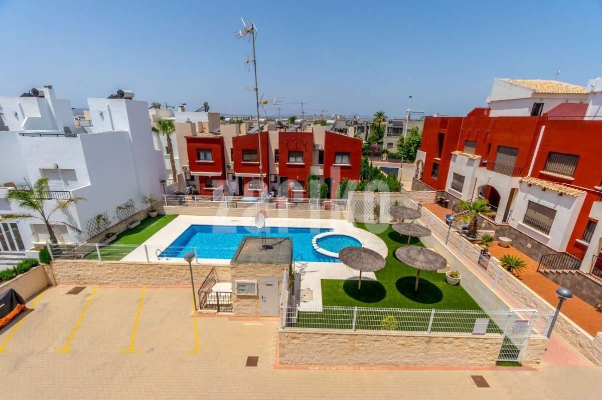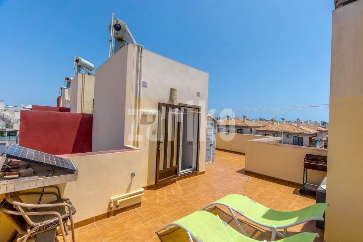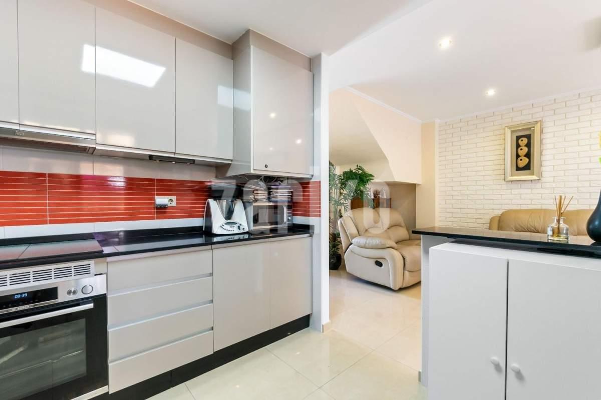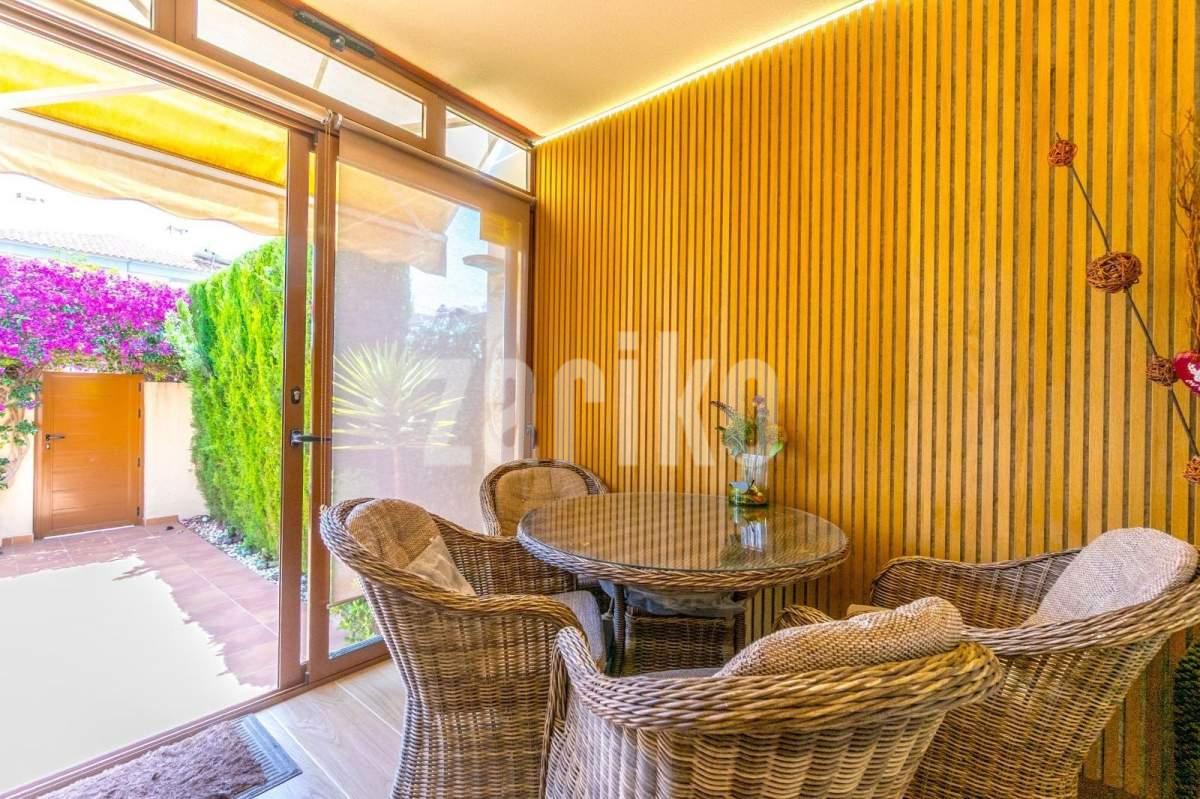 Este magnífico adosado de dos plantas combina privacidad, confort y diseño contemporáneo en una vivienda completamente reformada y decorada con un gusto exquisito. Dispone de tres amplios dormitorios con armarios empotrados y dos baños modernos, ofreciendo un espacio funcional y elegante. La cocina totalmente equipada se integra con un salón luminoso y acogedor, amueblado con piezas de alta calidad, incluyendo dos sofás de cuero. Los espacios exteriores son un verdadero privilegio: una terraza delantera de 43 m² con muebles de ratán, un patio trasero íntimo, un balcón en la planta superior y un solárium privado de 40 m², perfectos para disfrutar del sol y del estilo de vida mediterráneo durante todo el año. La vivienda se vende completamente equipada, incluyendo tres televisores (50" a 65"), electrodomésticos de primeras marcas como lavavajillas Bosch y calentador Ariston Wi-Fi, aire acondicionado Panasonic, calefacción por infrarrojos en todas las estancias y ventanas automáticas. En materia de seguridad y confort, cuenta con sistema de alarma, cámaras de vigilancia, puertas y ventanas antirrobo de alta resistencia, rejas de seguridad y grifería Grohe. En el exterior, el jardín con iluminación ambiental, riego automático y toldos aporta el toque perfecto. Totalmente renovado —suelos, baños, habitaciones y exteriores—, este adosado se entrega listo para entrar a vivir, con todo el mobiliario y decoración que aparece en las fotografías. Una propiedad única para quienes buscan calidad, estilo y tranquilidad en una ubicación privilegiada.