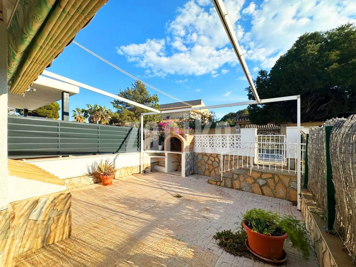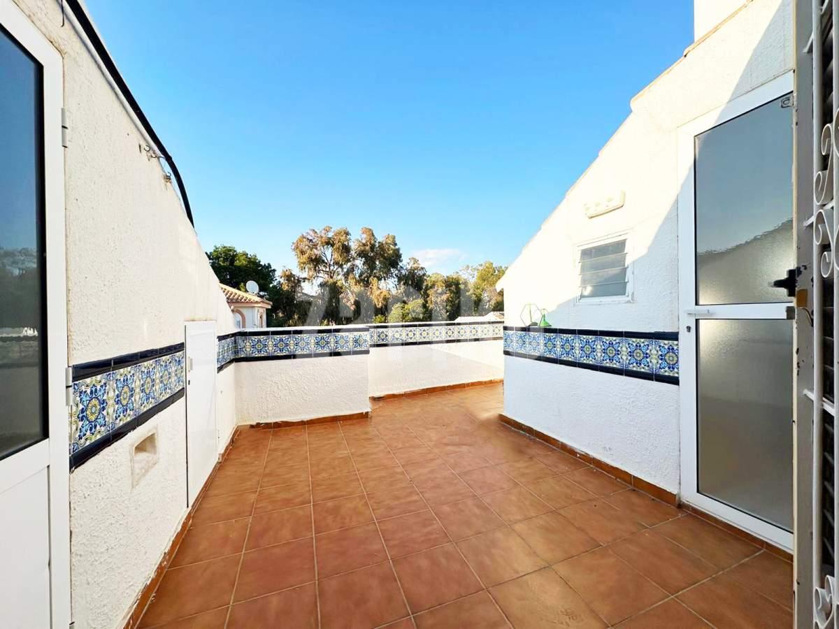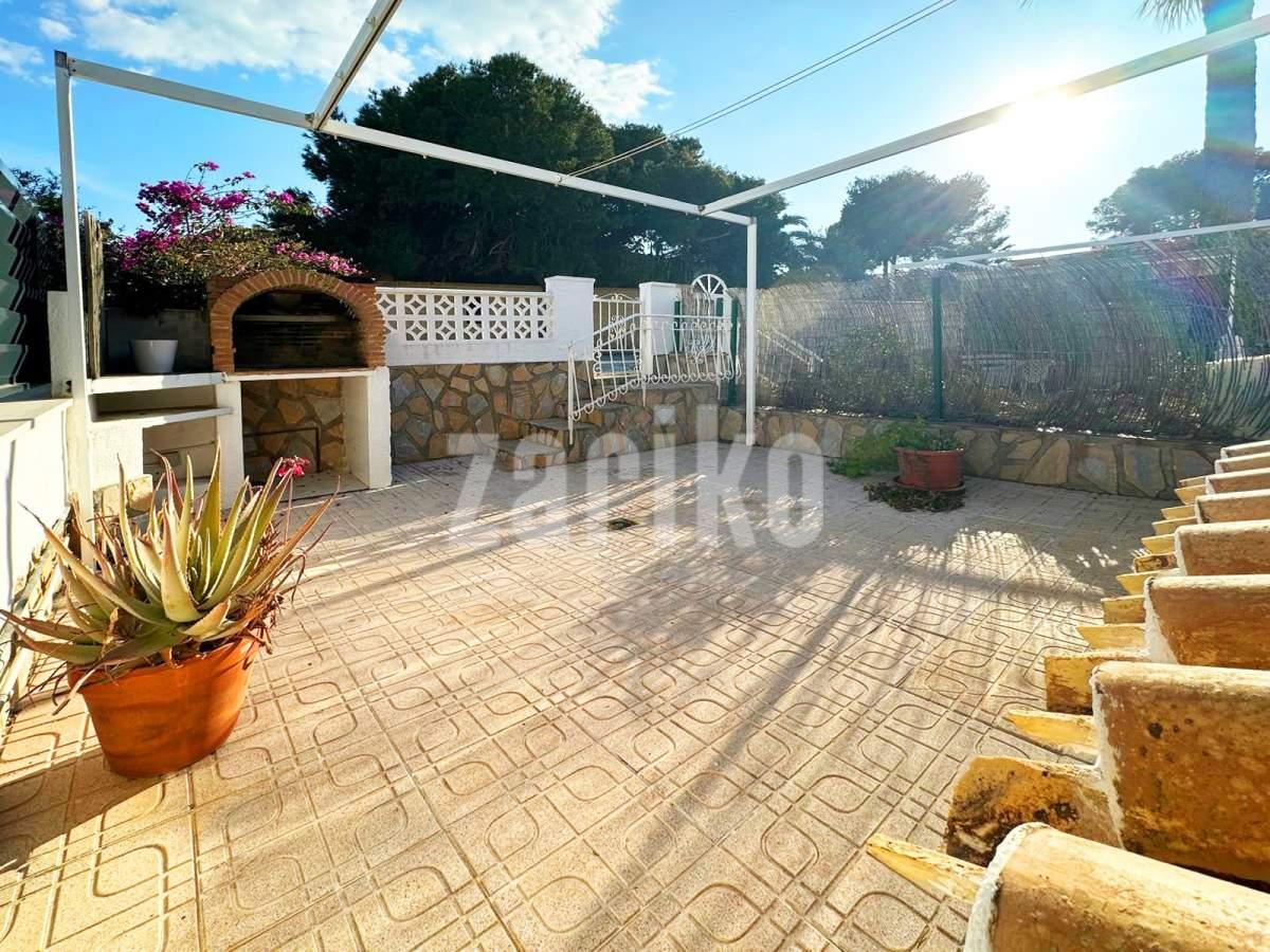 Oportunidad única. Orihuela Costa. Precioso chalet adosado en venta. Si usted está considerando seriamente la compra de una propiedad aquí en España, ahora es un momento ideal para aprovechar un mercado boyante, recoger una ganga y asegurar su inversión para el futuro. Esta villa adosada de estilo mediterráneo en 2 niveles ofrece un jardín delantero orientado al sur con zona de barbacoa, un elegante salón con chimenea y calefacción por suelo radiante y una terraza privada. Cocina de estilo americano con barra americana, aseo de invitados con ducha y trastero independiente. En el nivel inferior hay un dormitorio principal con acceso directo al jardín trasero, 2 dormitorios más y 2 baños con ducha. Esta propiedad está buscando un nuevo propietario, con un interés en la modernización o renovación, una casa de vacaciones o tal vez residencia a tiempo completo en la urbanización establecida y prestigiosa de La Zenia, en la ubicación perfecta para todos los servicios, tiendas, bares, supermercados y la playa de bandera azul muy popular de La Zenia, que está a sólo 600 metros a pie.