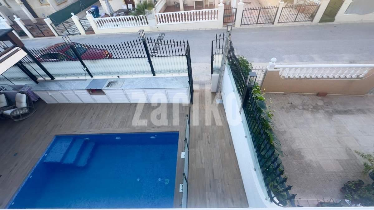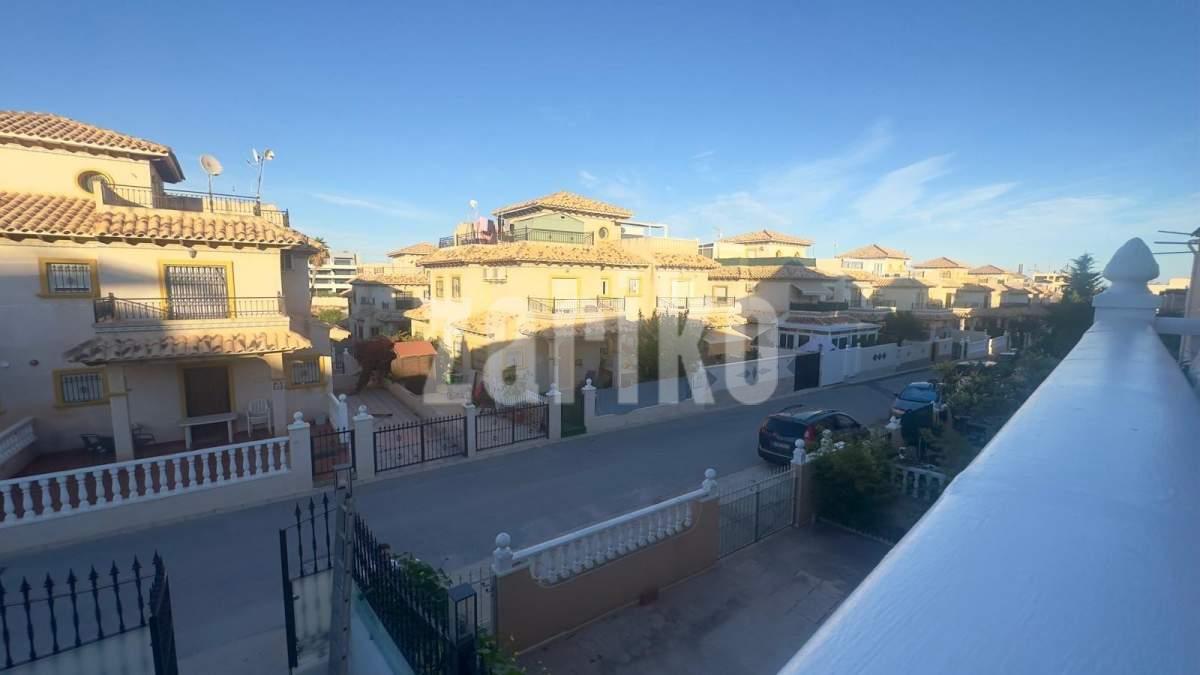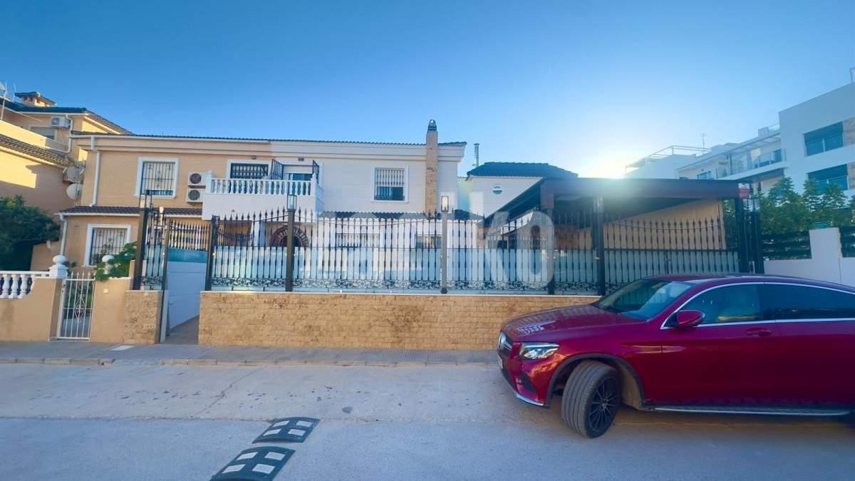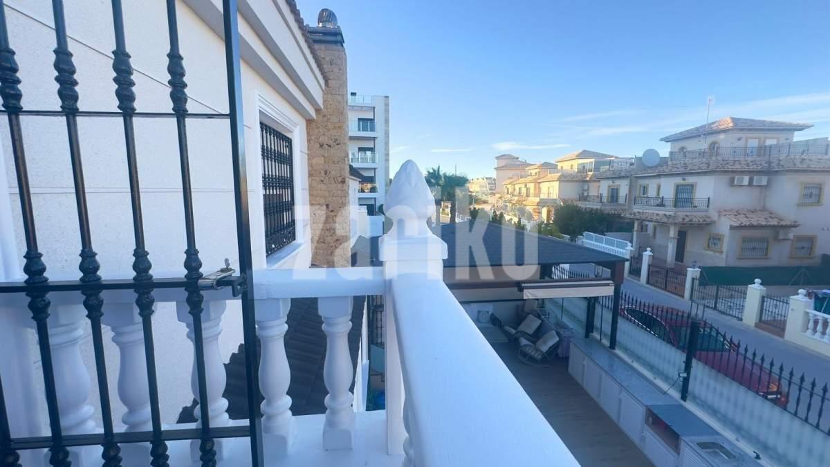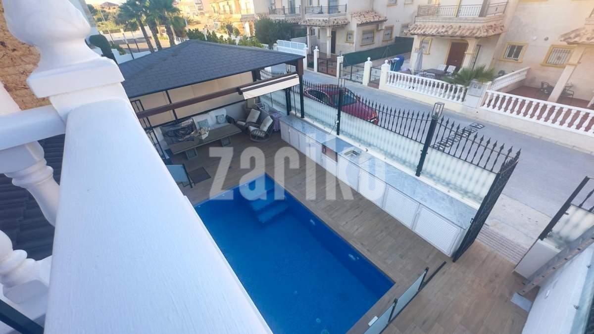 Casa Adosada en Esquina en Orihuela Costa – Urbanización Marco Polo A tan solo 1.500 metros del mar, en la codiciada Urbanización Marco Polo, se encuentra esta impresionante casa adosada en esquina, una propiedad que combina el encanto mediterráneo con la comodidad moderna. Reformada hace aproximadamente 20 años, se presenta hoy en día con un aspecto actual, funcional y perfectamente cuidado, lista para entrar a vivir sin necesidad de reformas. Exterior Privado y Zona de Ocio Nada más acceder a la parcela, destaca el espacio exterior privado, cuidadosamente diseñado para disfrutar al máximo del clima de la Costa Blanca. A mano derecha se encuentra una piscina privada de excelente tamaño, ideal para relajarse y refrescarse en los meses más cálidos. Junto a ella, una zona de barbacoa completamente equipada invita a compartir momentos con familia y amigos, mientras que un espacio chill-out techado aporta un ambiente relajado y acogedor, perfecto para las tardes de verano o reuniones al aire libre. La vivienda cuenta además con puerta de garaje en la misma parcela, proporcionando comodidad y seguridad al poder estacionar el vehículo dentro de la propiedad. Planta Baja: Amplitud y Confort En el interior, la casa ofrece un salón amplio y luminoso, presidido por una chimenea funcional que aporta calidez en los meses de invierno y realza el carácter acogedor de la vivienda. En esta misma planta encontramos un aseo de cortesía, un dormitorio de invitados ideal para familiares o visitas, y una cocina independiente completamente equipada, que comunica con un comedor adicional y un baño con plato de ducha. Desde esta zona se accede directamente al jardín trasero, donde se ubica nuevamente la zona chill-out, creando una perfecta continuidad entre interior y exterior. Planta Superior: Espacios Privados y Luz Natural Subiendo a la segunda planta se ubica el dormitorio principal, con baño en suite y balcón privado, ofreciendo un ambiente íntimo y confortable. En esta misma planta encontramos un segundo dormitorio doble, otro baño completo con plato de ducha, y un tercer dormitorio amplio que dispone de terraza acristalada con salida a una terraza abierta, ideal para disfrutar del sol durante todo el año. Equipamiento y Detalles Adicionales Todas las estancias de la vivienda cuentan con aire acondicionado, garantizando confort térmico tanto en invierno como en verano. La urbanización Marco Polo dispone además de una piscina comunitaria, aunque esta propiedad destaca precisamente por su piscina y espacios privados, que aportan exclusividad y mayor independencia. Ubicación y Entorno Situada en una zona tranquila y bien comunicada de Orihuela Costa, la casa se encuentra cerca de playas, centros comerciales, restaurantes y servicios, lo que la convierte en una opción ideal tanto como residencia habitual como vivienda vacacional o inversión con alta rentabilidad. En resumen: Esta casa adosada en esquina representa una oportunidad única de disfrutar de una vivienda amplia, moderna, reformada y con espacios exteriores excepcionales, a solo unos minutos del mar. Una propiedad que combina comodidad, privacidad y estilo de vida mediterráneo en una de las zonas más demandadas de la Costa Blanca.
