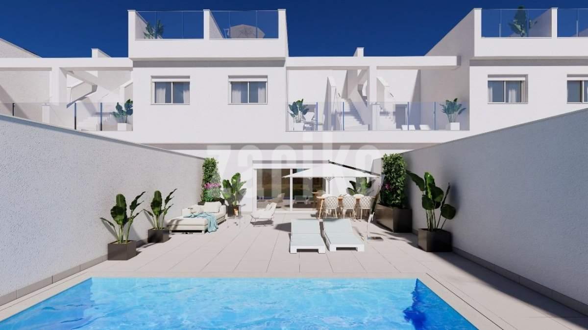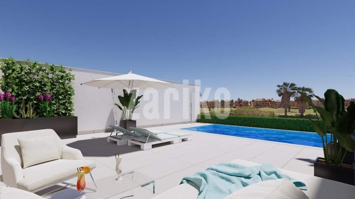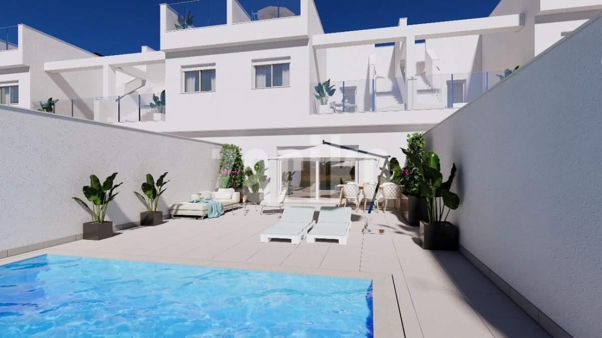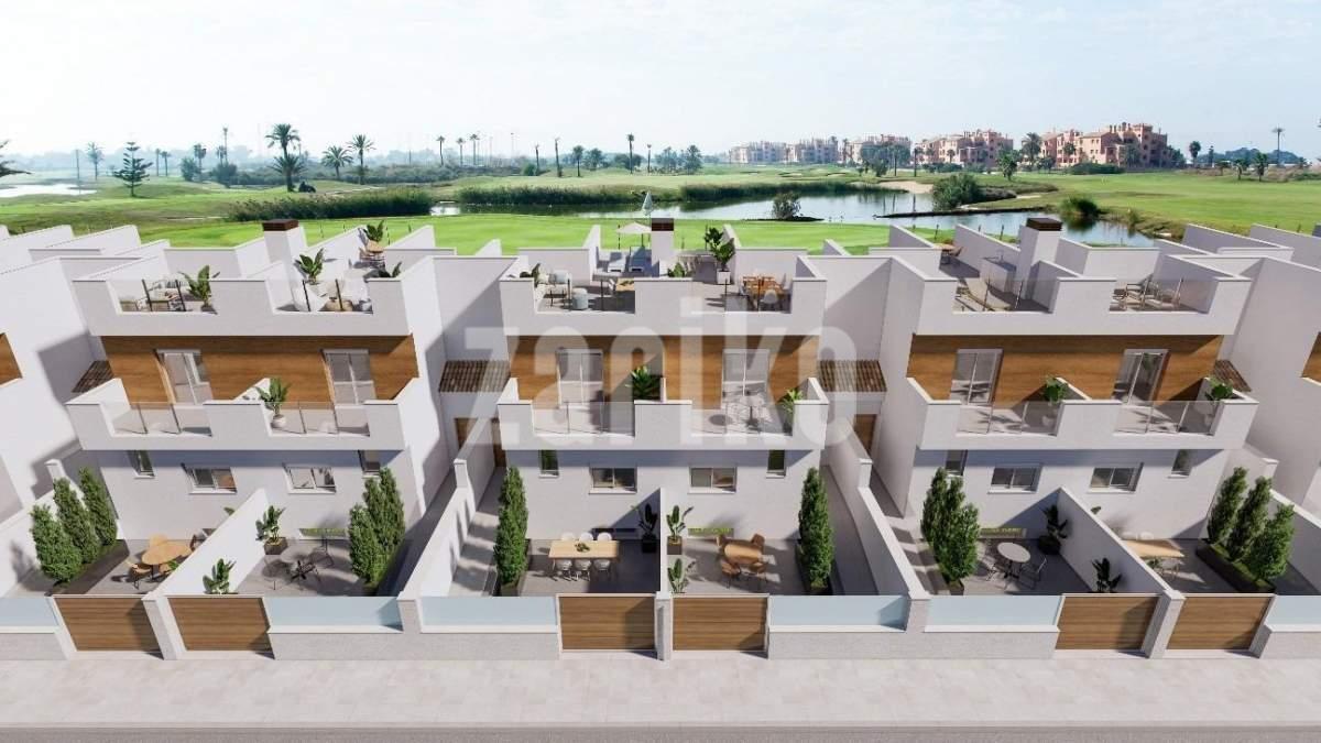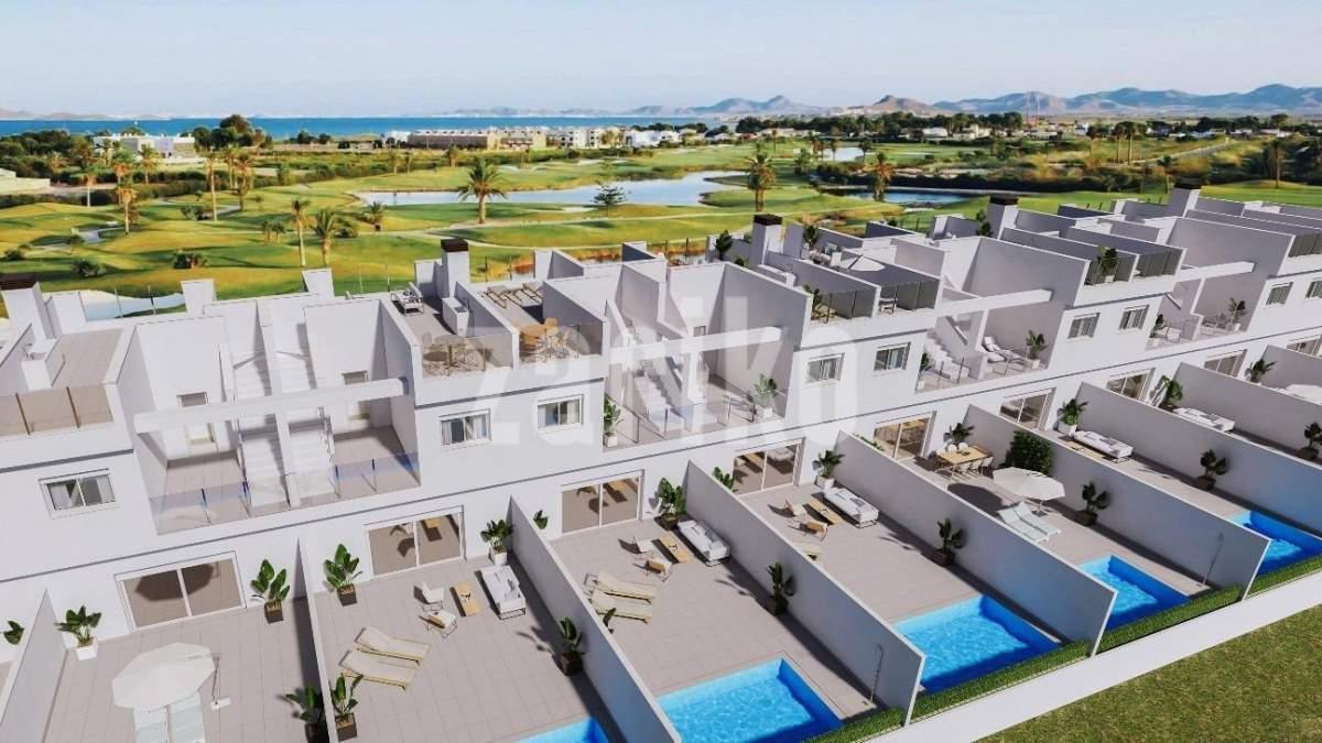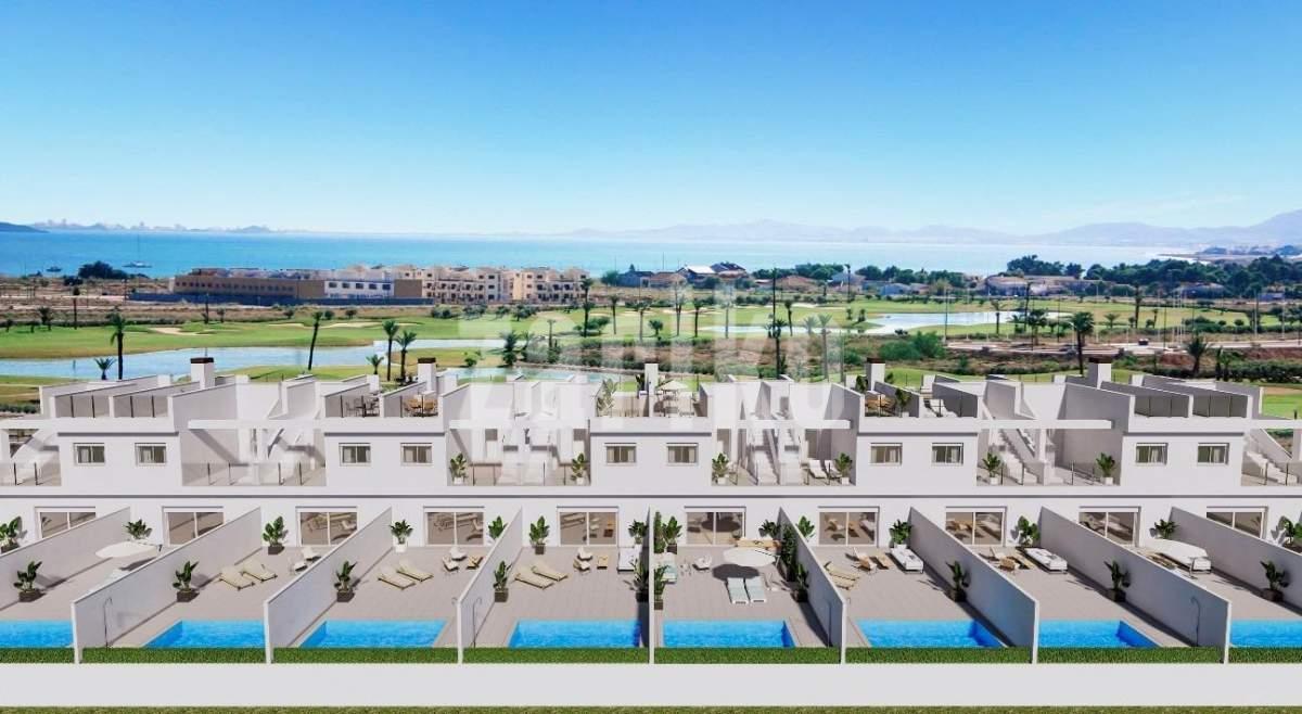 Casas adosadas de nueva construcción en primera línea de La Serena Golf en Los Alcázares Ubicación privilegiada junto al campo de golf y el mar Descubra una exclusiva urbanización de 31 casas adosadas de nueva construcción situadas en primera línea de La Serena Golf en Los Alcázares, a solo 600 m del Mar Menor. Situada en el corazón de la Costa Cálida, esta privilegiada ubicación combina golf, playa y estilo de vida mediterráneo. Con todos los servicios cerca y un excelente acceso por carretera, es el lugar ideal tanto para vacaciones como para vivir todo el año. Viviendas modernas con piscina privada y solárium en la azotea Cada vivienda cuenta con un elegante diseño contemporáneo y espacios interiores luminosos. Las viviendas están distribuidas en tres niveles más un solárium en la azotea, lo que ofrece el máximo confort y privacidad: Sótano con garaje privado para 2 coches y acceso a un patio Planta baja con salón y cocina diáfanos que dan a un jardín y una piscina privada, 1 dormitorio y 1 baño Primera planta con 2 dormitorios, 1 baño y 2 terrazas Solárium en la azotea con cocina de verano, ideal para relajarse y disfrutar de las vistas panorámicas La orientación este y oeste garantiza una excelente luz natural y la posibilidad de disfrutar del aire libre durante todo el día. Acabados de alta calidad y comodidad Estas viviendas están construidas con los más altos estándares de calidad y ofrecen características premium, entre las que se incluyen: Piscina privada Garaje subterráneo para 2 coches con puerta motorizada Sistema de agua caliente aerotérmica Aire acondicionado por conductos totalmente instalado Cocina amueblada y equipada Baños totalmente equipados con muebles, espejos y mamparas de ducha Puerta de entrada de seguridad Viva entre el mar y la calle Situada en medio de exuberantes paisajes mediterráneos, esta exclusiva comunidad ofrece una vida tranquila junto al campo de golf Serena, un reconocido campo de 18 hoyos rodeado de naturaleza y tranquilos lagos. Las cálidas y poco profundas aguas del Mar Menor son perfectas para nadar y disfrutar de deportes acuáticos como la vela, el paddle surf y el kayak durante todo el año. Distancias clave: Playa (Mar Menor): 600 m La Serena Golf: junto al complejo Centro de Los Alcázares: 2 km Cartagena: 22 km Ciudad de Murcia: 40 km Aeropuerto de Murcia: 30 km Aeropuerto de Alicante: 90 km Asegúrese su estilo de vida mediterráneo Tanto si busca una residencia permanente, una casa de vacaciones o una inversión rentable, estas viviendas ofrecen lujo, comodidad y un estilo de vida costero superior. Póngase en contacto con nosotros hoy mismo para concertar una visita y asegurarse su nueva vivienda en Los Alcázares.
