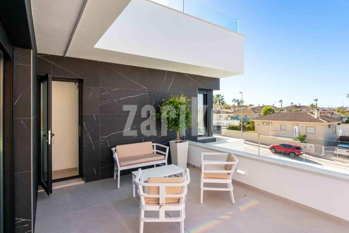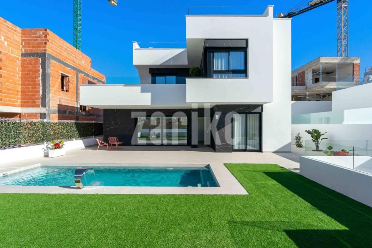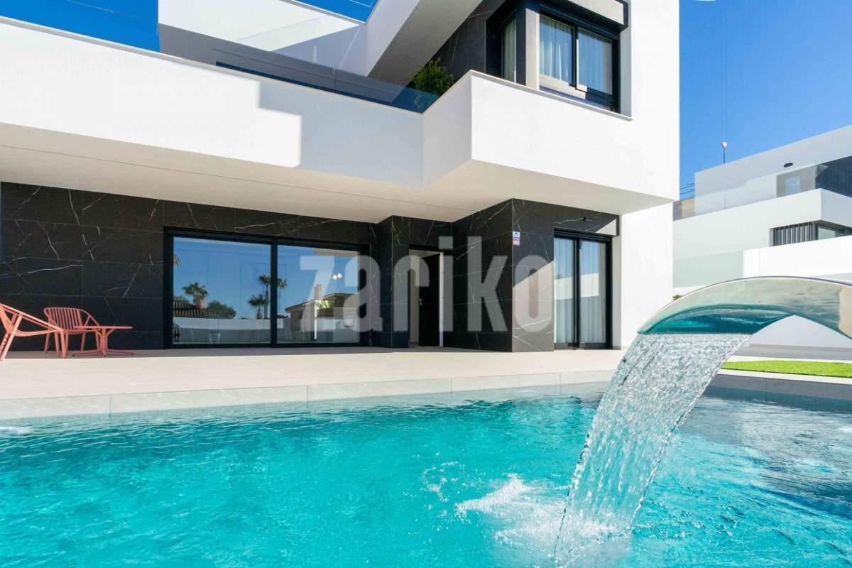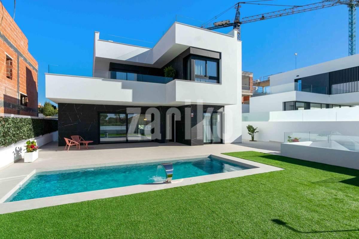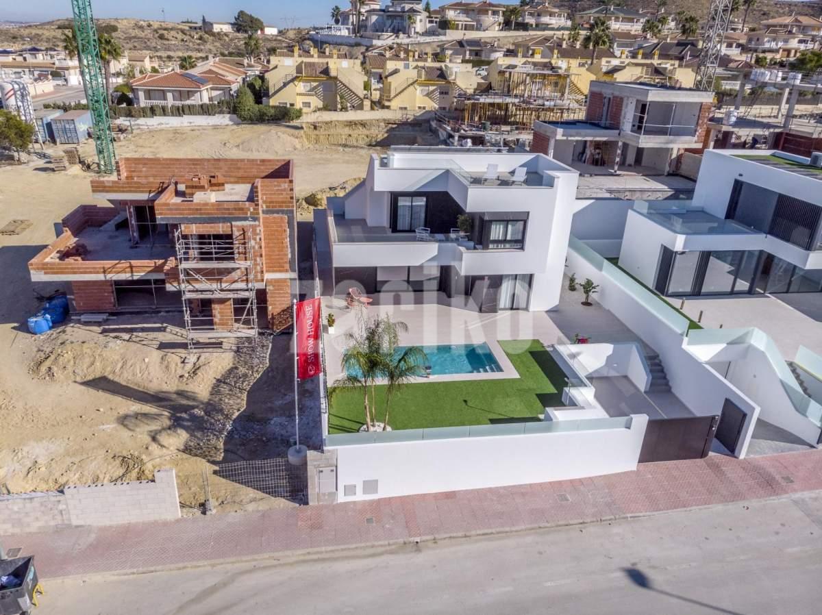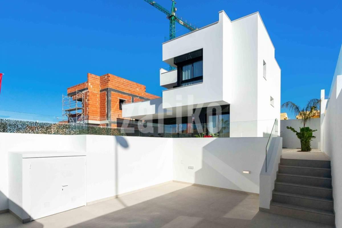 VILLAS DE OBRA NUEVA EN ROJALES Nueva construccion exclusiva de villas en Rojales. Precias villas de 2 plantas con 3 dormitorios, 3 baños, cocina americana con salón y terraza. Villas construidas en parcelas independientes con jardin con piscina privada y plaza de aparcamiento. Posibilidad de solarium con coste adicional. Hay 3 campos de golf cerca y las playas de bandera azul están a sólo 10 minutos en coche. Rojales es un pueblo encantador con todos los servicios como supermercados, farmacias, bancos, restaurantes y parque natural situado muy cerca de las villas. Hay varios campos de golf cerca, así como parques acuáticos en Rojales y Torrevieja. Los aeropuertos de Alicante y Murcia están a 45 minutos en coche.