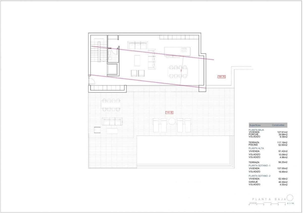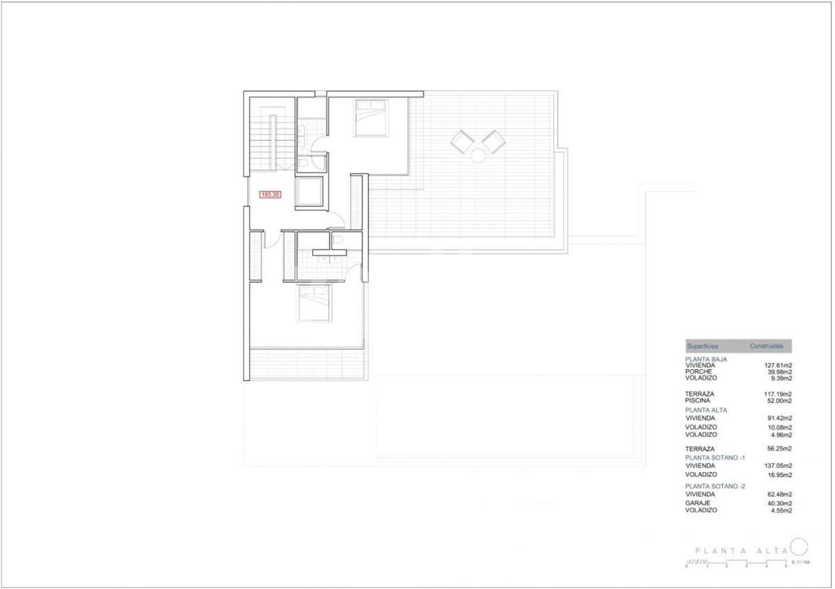 VILLA DE LUJO DE OBRA NUEVA EN BENISSA Villa de lujo de nueva construcción en Benissa con VISTAS AL MAR y al Peñón de Ifach. Esta villa, con acabados de hormigón visto, tiene 4 plantas que están conectadas con un ascensor y una escalera interior. La planta baja tiene un gran salón-comedor-cocina abierto y un aseo de invitados. La cocina está totalmente equipada y cuenta con una isla para cocinar. Unas puertas correderas a la altura del techo dan acceso directo a una amplia terraza y a la piscina. La planta superior contiene dos dormitorios con baños en suite y una terraza. La propiedad tiene 2 sótanos. El sótano número 1 tiene otros dos dormitorios, cada uno con su propio baño y un lavadero. El sótano número 2 alberga el gimnasio, la bodega y un garaje con capacidad para 4 coches. La casa tiene aire acondicionado (por conductos) y calefacción central con bomba de calor. Tiene una puerta de entrada automática con una entrada peatonal independiente y un interfono. En el mismo nivel que la casa principal se encuentra la piscina. Incluye carpintería exterior con persianas automáticas y mosquiteras en dormitorios, armarios empotrados con módulos e instalación de alarma básica. Benissa está situada en el extremo norte de la Costa Blanca, justo al lado de la autopista A-7; el viaje desde y hacia el aeropuerto de Alicante dura poco más de una hora. La ciudad es pequeña, pero encantadora con su arquitectura medieval y sus encantadoras plazas. Aunque está a sólo 5 kilómetros del mar -a vuelo de pájaro-, las playas más cercanas por carretera están a unos 11 kilómetros y las localidades costeras de Calpe (al sur) y Moraira (al noreste) están a unos 12 kilómetros. Las vistas del Mediterráneo, el clima, la naturaleza salvaje, la calidad de la luz, la arquitectura del pueblo, Benissa le seducirá. El aeropuerto de Alicante se encuentra a 1 hora de distancia.
