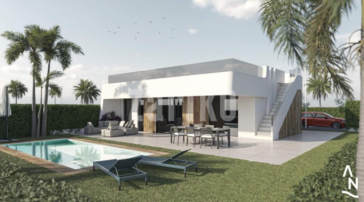 VILLAS DE OBRA NUEVA EN EL CAMPO DE GOLF DE CONDADO DE ALHAMA Complejo residencial de villas y apartamentos de nueva construcción en Condado de Alhama. Se trata de 11 villas independientes, con piscina privada, solárium y plaza de aparcamiento exterior, con amplias zonas de terrazas orientadas al sur y cocina de verano, donde podrá disfrutar del sol todo el año. Estas hermosas villas, construidas con los más altos estándares de calidad, tienen 2, 3 o 4 dormitorios y 2 o 3 baños completamente equipados. Las villas han sido diseñadas con un estilo contemporáneo y un concepto abierto, compuesto por una cocina equipada y un salón-comedor. La promoción se encuentra en el Condado de Alhama, Murcia, dentro de un complejo turístico de lujo, con zonas deportivas y rodeado de naturaleza, todos los servicios, y varios Campos de Golf. La vivienda cumplirá con los más altos estándares y estará equipada con: Piscina privada con ducha solar y amplias zonas verdes. Cocina completamente amueblada y equipada con horno y microondas elevados y en columna, nevera y lavavajillas integrados, placa de inducción y campana extractora. Iluminación: en el interior de la vivienda (comedor, cocina, pasillos y baños), así como en las zonas exteriores. Armarios forrados con cajones y estantes. Cuartos de baño totalmente equipados con mueble de lavabo, inodoro suspendido, espejo, ducha mural, mamparas de ducha y calefacción radiante en el suelo. Preinstalación de aire acondicionado por conductos. Cocina de verano en el solarium. Solarium. Plaza de aparcamiento exterior. Puntos de carga para coches eléctricos. Condado de Alhama Golf Resort es un fantástico complejo de golf con muchas instalaciones y servicios. Un centro comercial, un centro deportivo, una variedad de bares y restaurantes, supermercados y más de 25 piscinas y jardines comunitarios. Condado de Alhama Golf Resort tiene su propio campo de golf diseñado por Jack Nicklaus y está a sólo 15 minutos de las hermosas playas de Bolnuevo y Mazarrón. Mazarrón tiene más de 35 km de costa, gran parte de la cual es costa virgen. Numerosas playas de la Bahía de Mazarrón han sido galardonadas con la Bandera Azul por su calidad. Condado de Alhama Golf Resort está a sólo 20 minutos del nuevo aeropuerto internacional de Corvera.