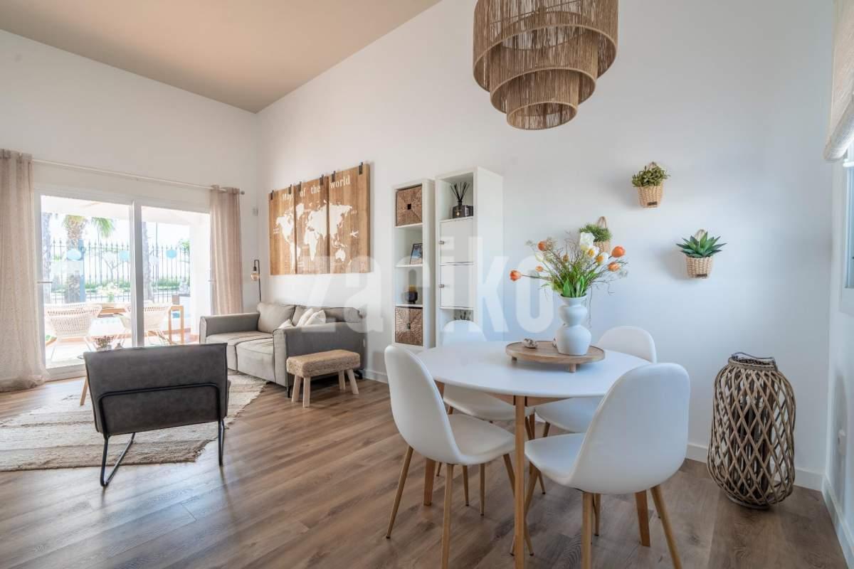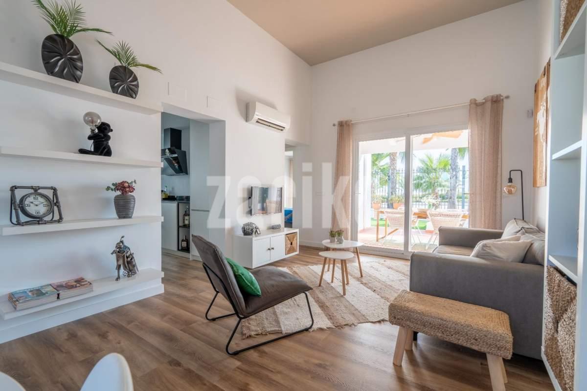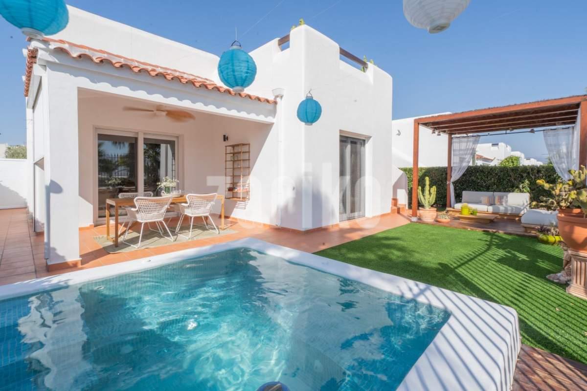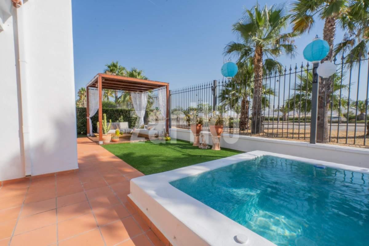 Villa Jana de Lujo en Condado de Alhama Descubre el equilibrio perfecto entre confort, estilo y sostenibilidad en Villa Jana, una exclusiva propiedad ubicada en el prestigioso Condado de Alhama Golf Resort, una de las zonas residenciales más valoradas de la región de Murcia. Esta villa ha sido diseñada pensando en tu bienestar, combinando una arquitectura moderna con acabados de alta calidad, espacios abiertos y una orientación ideal para aprovechar al máximo la luz natural durante todo el día. Características destacadas: 2 habitaciones amplias y luminosas, ideales tanto para familias como para recibir invitados. 2 baños modernos y totalmente equipados, con acabados de diseño y materiales de primera calidad. Piscina privada, perfecta para disfrutar del sol mediterráneo los 365 días del año. Gran jardín con zonas verdes, ideal para relajarte, jugar con los niños o simplemente disfrutar de la tranquilidad del entorno. Terraza exterior amplia, perfecta para barbacoas, reuniones con amigos o cenas bajo las estrellas. Paneles solares instalados, que garantizan un consumo energético eficiente y una reducción notable en la factura eléctrica. Totalmente equipada, con cocina moderna, electrodomésticos de alta gama y aire acondicionado: lista para entrar a vivir desde el primer día. ¿Por qué elegir Villa Jana? Ubicada dentro de un complejo cerrado con vigilancia 24 horas, acceso controlado y todos los servicios al alcance (supermercados, restaurantes, farmacias, zonas deportivas). A solo 20 minutos de las playas del Mediterráneo y cerca de campos de golf de clase mundial. Ideal como residencia habitual, casa vacacional o como una excelente inversión inmobiliaria con alto potencial de alquiler. ¡No dejes pasar esta oportunidad única! Vive en un entorno natural, seguro y con todas las comodidades que siempre soñaste. Contáctanos hoy mismo para más información o para agendar tu visita privada a Villa Jana. ¡Te enamorarás al verla!