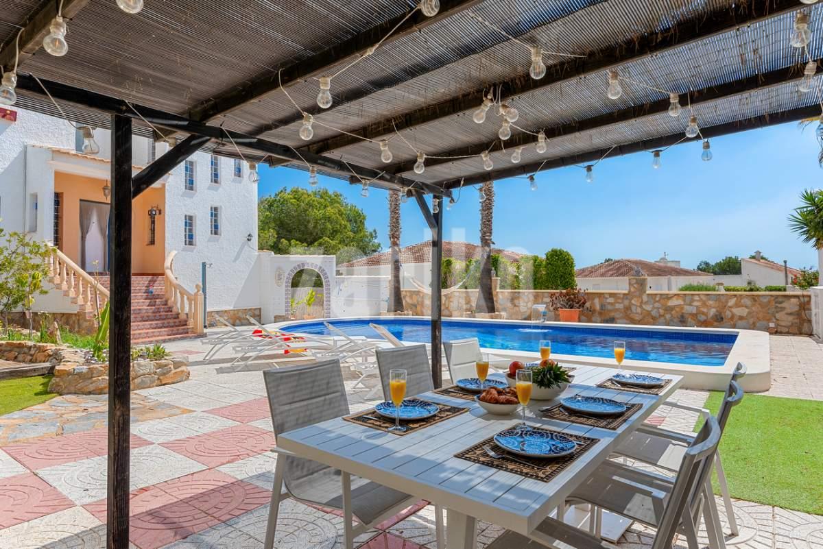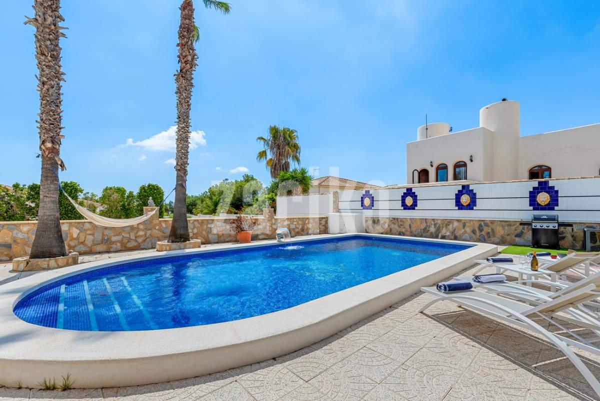 En venta: una villa excepcional en Pinar de Campoverde (Ref: YC9101), que ofrece tanto lujo como potencial de inversión.La propiedad cuenta con 4 amplios dormitorios y 3 baños modernos, una piscina privada de 13x5m con cascada y efecto de cielo estrellado, y un solárium con vistas panorámicas al mar y a las montañas. La villa se encuentra en una parcela ajardinada de 1100m², lo que garantiza total privacidad y mucho espacio para disfrutar al aire libre. Varias terrazas, tanto soleadas como sombreadas, ofrecen el entorno perfecto para relajarse, recibir invitados o disfrutar en familia.En el interior encontrará un salón luminoso y acogedor, una cocina totalmente equipada y acceso directo al jardín y la piscina. La propiedad combina comodidad y elegancia, por lo que es adecuada como residencia permanente, casa vacacional familiar o inversión rentable en alquiler.Una ventaja importante es que esta villa cuenta con una licencia de alquiler turística activa, lo que permite al nuevo propietario alquilar la vivienda legalmente y generar ingresos de inmediato. Esto la convierte en una opción muy atractiva para los inversores que buscan rentabilidad en una de las zonas costeras más populares de España.Situada en la Costa Blanca Sur, la villa está cerca de las ciudades de Alicante, Murcia, Torrevieja y Cartagena, así como de las playas del Mediterráneo, a solo unos minutos en coche. La zona ofrece excelente infraestructura, aeropuertos internacionales, campos de golf y sol durante todo el año.Ref: YC9101 – Una oportunidad única de adquirir una villa de lujo con licencia de alquiler en la Costa Blanca.