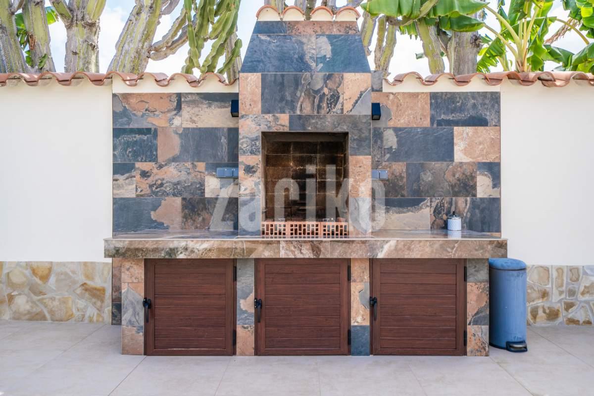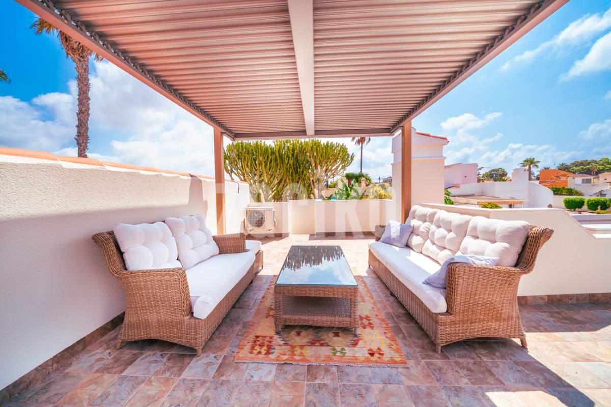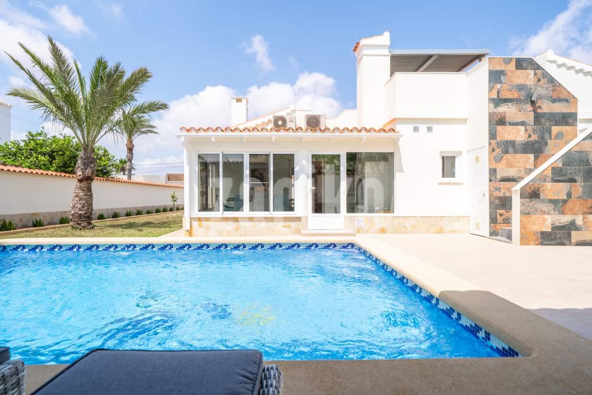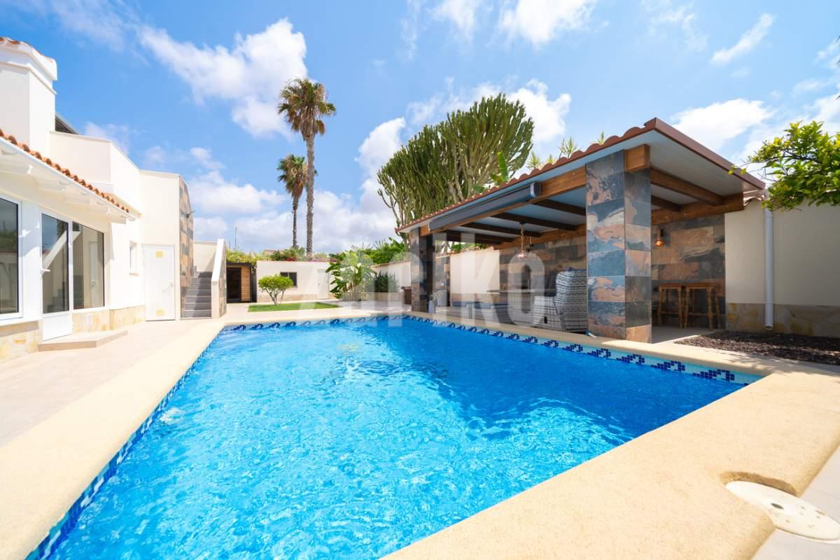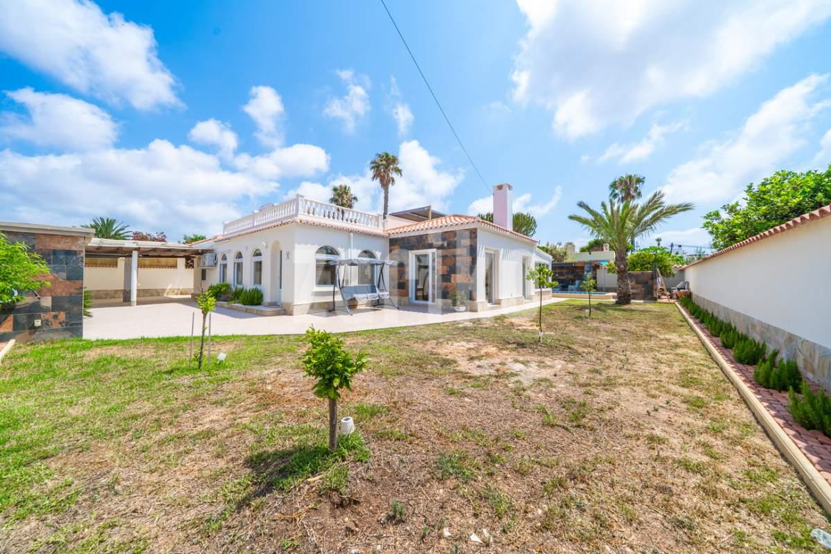 Discover unparalleled luxury and serenity in this stunning, fully renovated villa, perfectly situated near the famous Pink Lake of Torrevieja!This isn't just a house; it's a lifestyle. Experience ultimate comfort and superior design with high-quality materials throughout the impressive 201m² built area, completely renewed in 2025 to meet the highest modern standards.Key Features You'll Love:Ultimate Relaxation: Dive into your own private, salinated pool with heating—perfect for year-round enjoyment. The dedicated next-to-pool leisure area and separate rooftop terrace offer multiple idyllic spots for sunbathing and socializing.Spacious & Elegant: The home boasts 4 generous bedrooms and 3 modern bathrooms, offering ample space for family and guests. Enjoy entertaining in the two spacious living areas, complete with a cozy fireplace for those cooler evenings.Premium Comfort: Say goodbye to cold feet! Enjoy luxurious comfort with floor heating throughout the entire house. Plus, elevate your wellness routine with your very own sauna!Outdoor Oasis: Set on a substantial 771m² garden, the property provides a private haven for outdoor living, featuring a dedicated BBQ area for al-fresco dining and a separate storage building for convenience.Practical Amenities: The property includes covered parking for two cars, ensuring security and ease of access.Located in a sought-after area, this villa offers a unique opportunity to own a piece of paradise near a natural wonder. Don't miss the chance to experience the pinnacle of Mediterranean living!Contact us today to schedule your exclusive viewing!