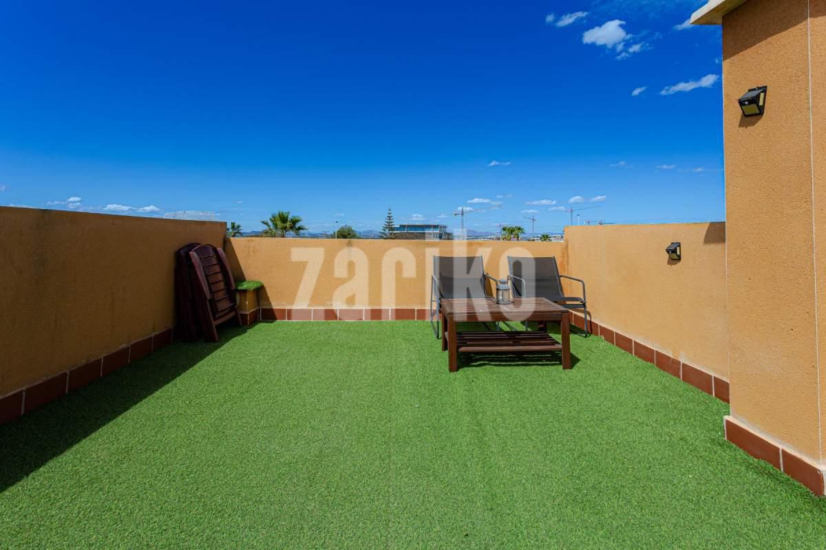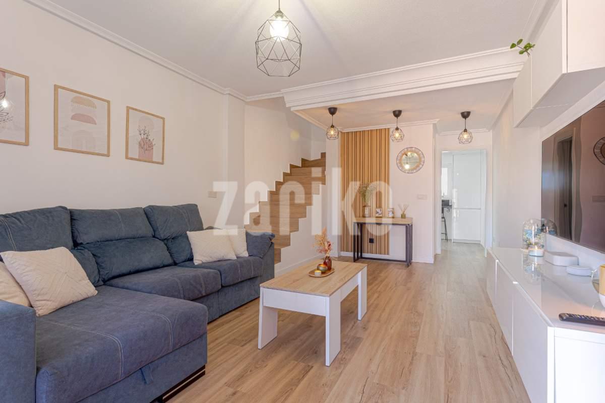 Vivienda totalmente renovada y lista para entrar a vivir, ubicada en una urbanización privada con piscina comunitaria. Situada en una zona muy cómoda, a pocos minutos del Centro Comercial Habaneras, el Hospital Quirón, el polideportivo municipal y con fácil acceso a la N-332.La playa de La Mata se encuentra a escasos minutos en coche y el aeropuerto de Alicante está a unos 35–40 minutos.Características principales:Vivienda de 80 m² construidosSalón amplio de 20 m² con aire acondicionadoOrientación suroeste, muy luminosa2 dormitorios (el principal con aire acondicionado y vestidor a medida)1 baño completo y moderno + 1 aseo en planta baja, ambos reformadosCocina nueva, instalada hace un añoSuelo ceramico con revestimiento vinílico + pintura reciente en toda la viviendaTerraza trasera cubierta, ideal como zona de lavandería o trasteroSolárium privado perfecto para disfrutar del sol todo el añoUrbanización cerrada con piscina comunitariaConstruida en 2001 y completamente renovadaIdeal como vivienda habitual, casa de vacaciones o inversión para alquiler. Lista para disfrutar desde el primer día.