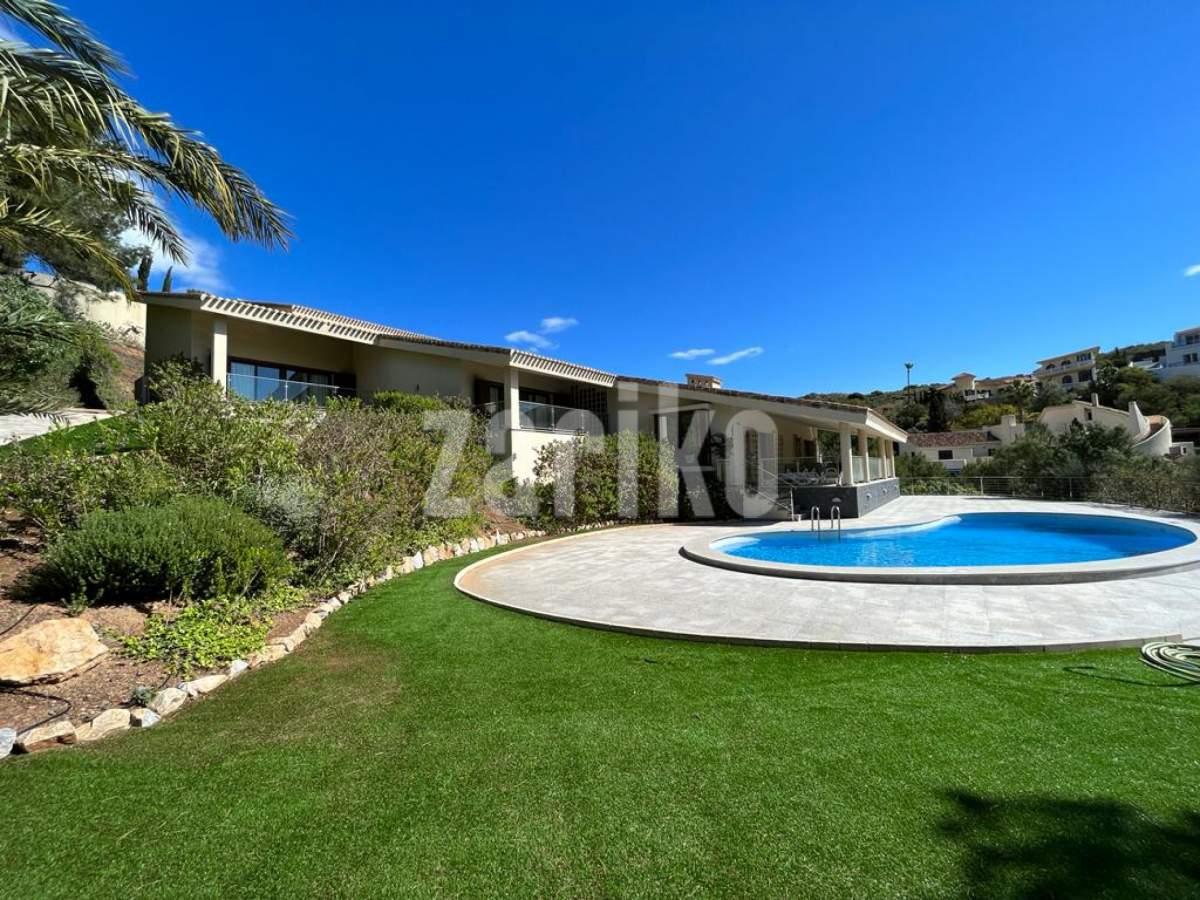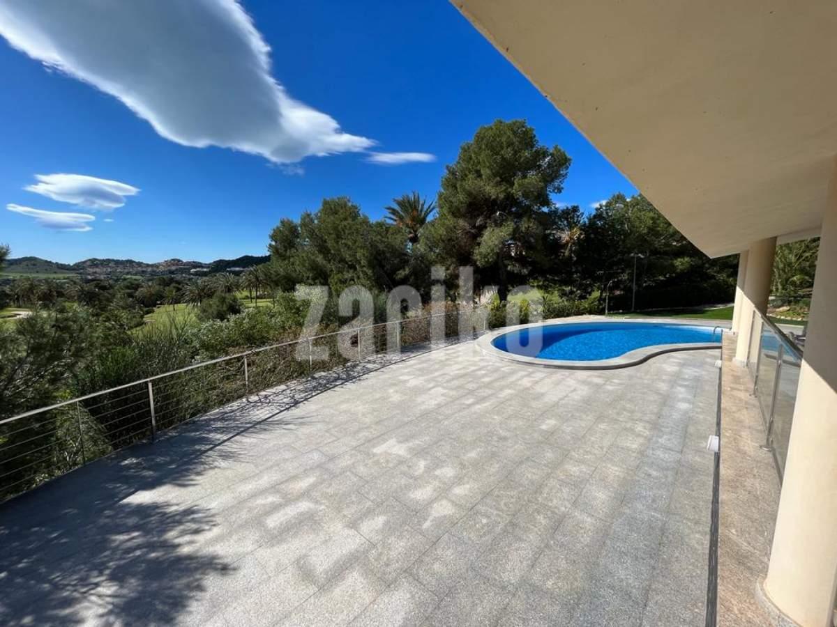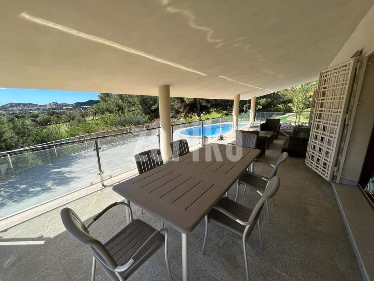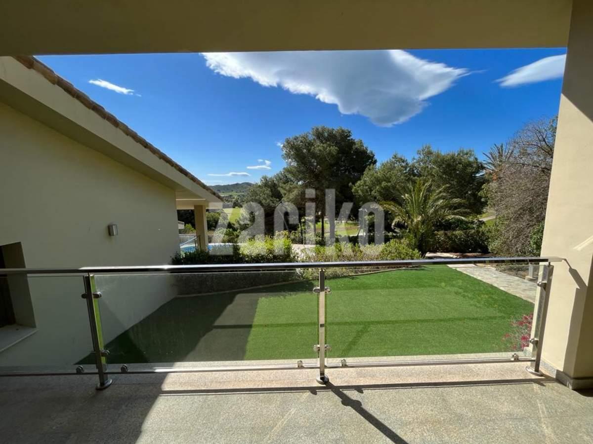This luxury detached villa is frontline with stunning views over the North Course in La Manga Club. The property has private gates with video entry with a driveway leading down to the villa. There is a large garage with access to the house and ample parking space. The main entrance leads into the large, bright living/dining area which has windows on all three sides and glass doors leading out to the sun terrace and swimming pool area. The fully fitted kitchen has an island and american fridge freezer. There is also a pantry and laundry room. The villa has six bedrooms and five bathrooms spread around the house. The property is being sold fully furnished.