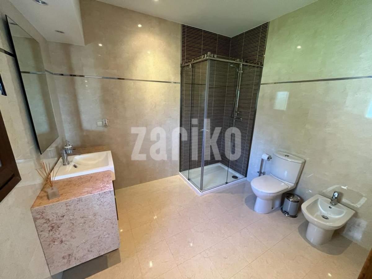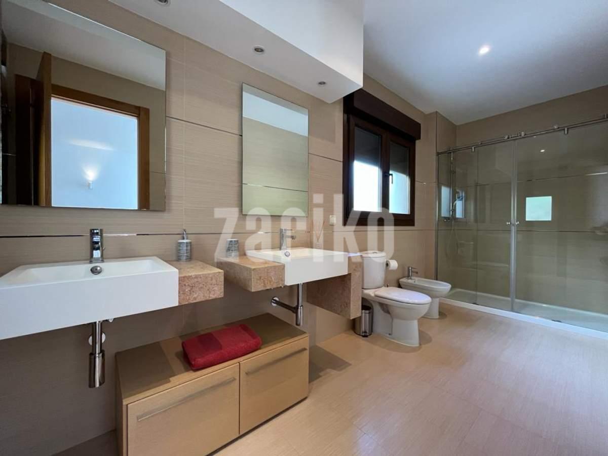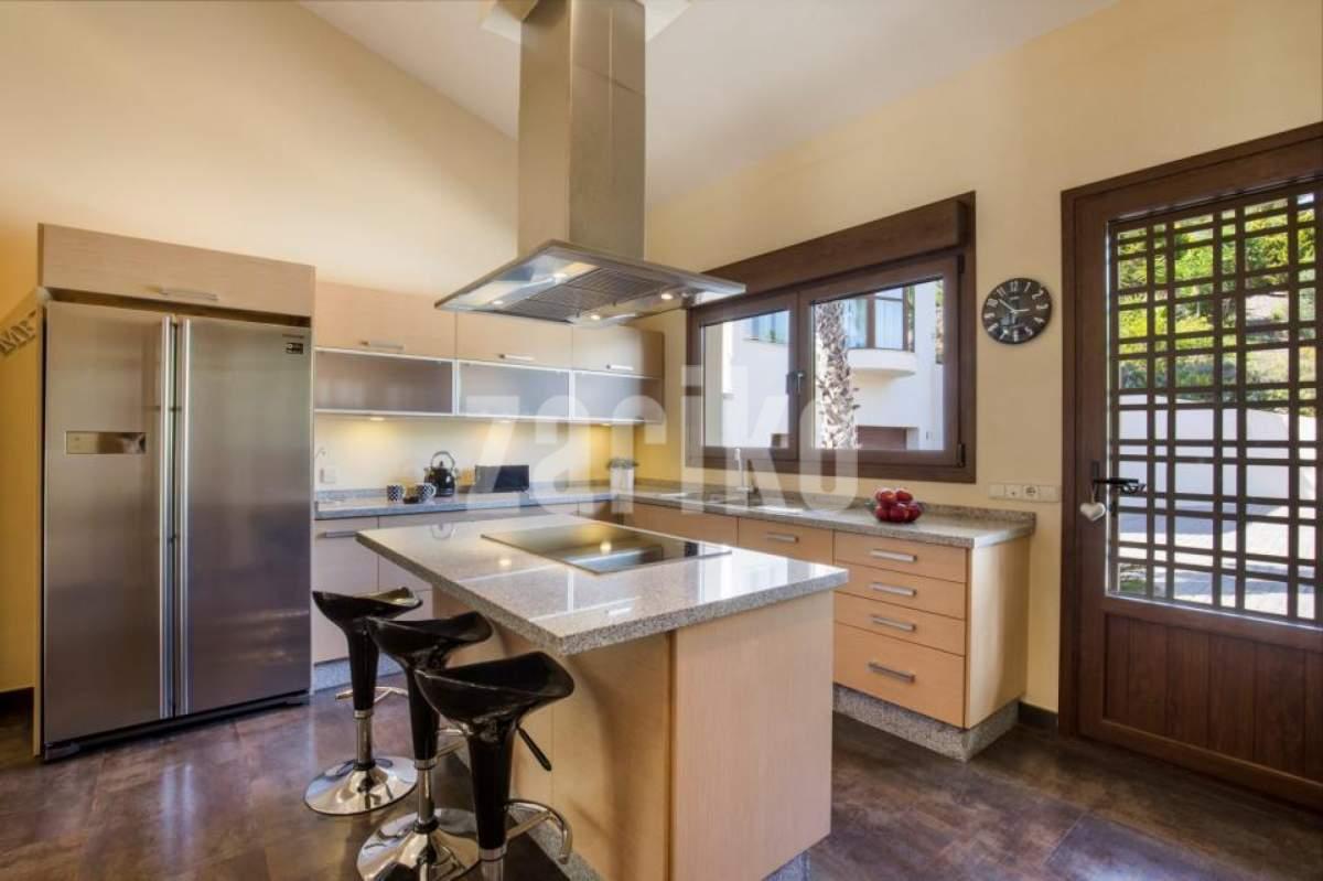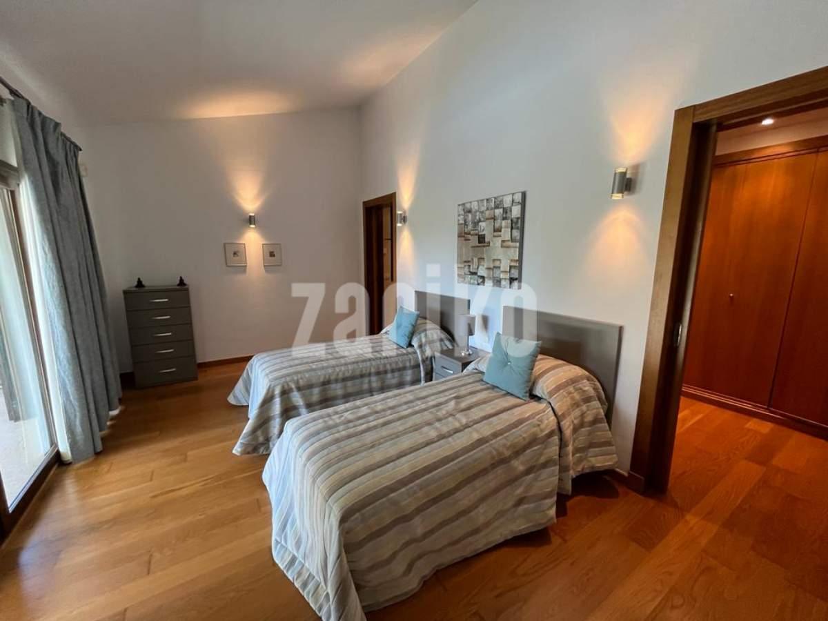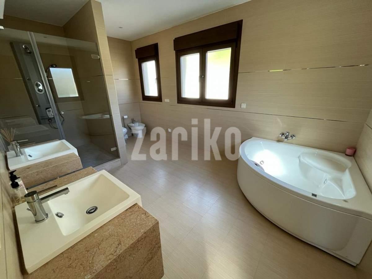 This luxury detached villa is frontline with stunning views over the North Course in La Manga Club. The property has private gates with video entry with a driveway leading down to the villa. There is a large garage with access to the house and ample parking space. The main entrance leads into the large, bright living/dining area which has windows on all three sides and glass doors leading out to the sun terrace and swimming pool area. The fully fitted kitchen has an island and american fridge freezer. There is also a pantry and laundry room. The villa has six bedrooms and five bathrooms spread around the house. The property is being sold fully furnished.