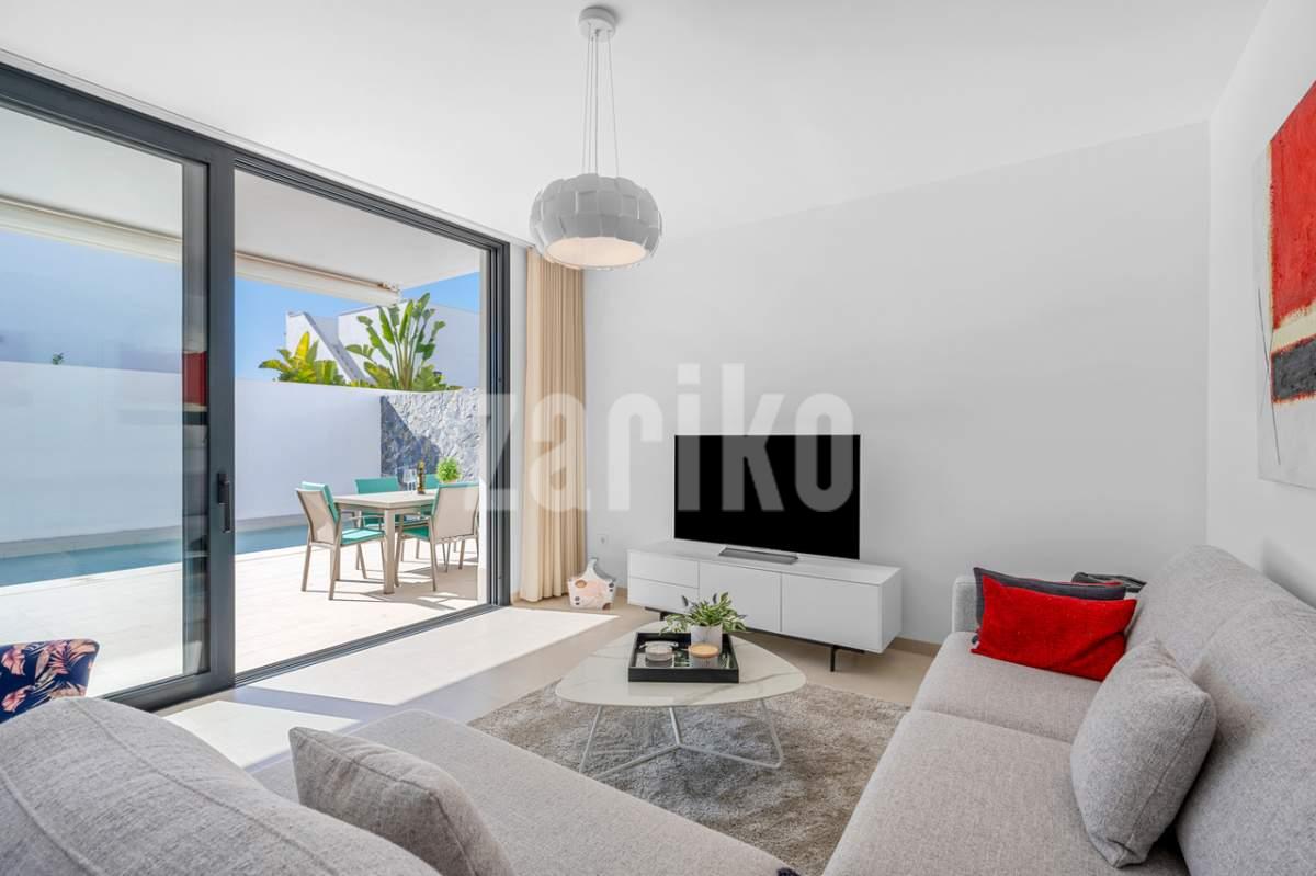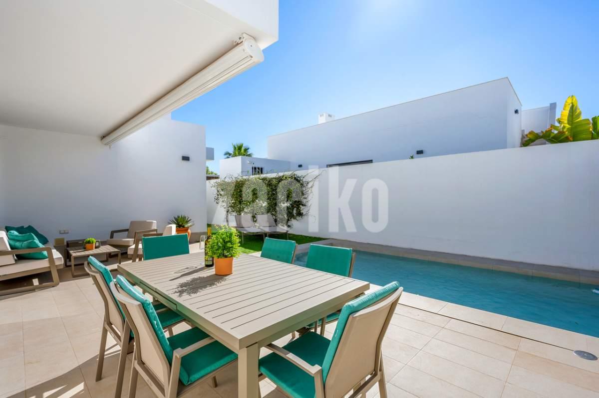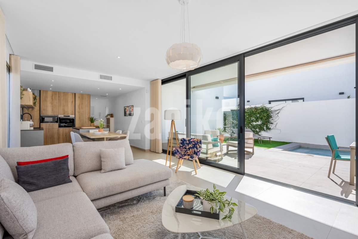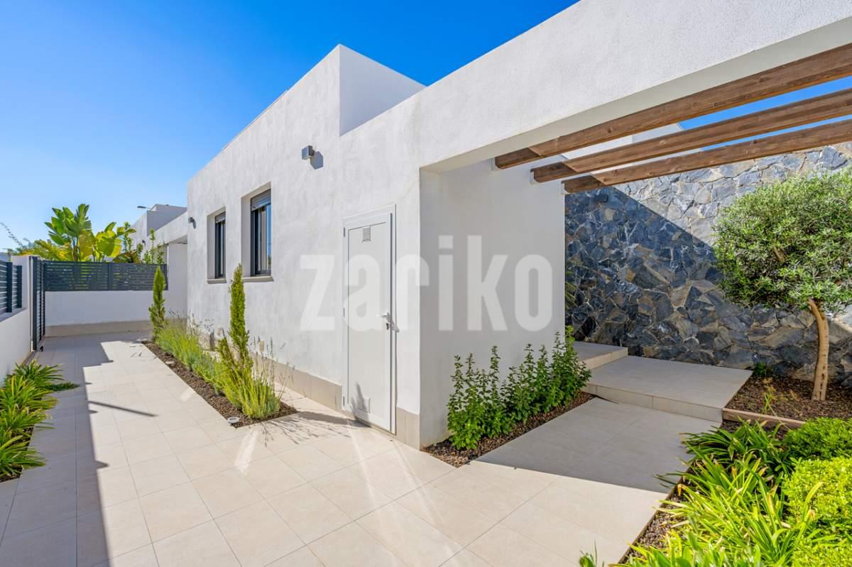 A modern style detached villas with 3 bedrooms and private swimming pool in Mar de Cristal, Murcia only 400 metres away from the beautiful white sandy beaches.The property boasts a cosy living/dining room with direct access to the garden, a modern fully equipped kitchen, utility/storage room, three bedrooms with fitted wardrobes, two bathrooms, air conditioning (hot/cold) throughout the property, several terraces, a landscaped private garden with swimming pool, off-road parking.Mar de Cristal is located in the Mar Menor and includes many features, such as the exclusive paddle and tennis club, a marina next to the promenade and beach, and the beach. In addition, there are multiple services, public and private, which will assure you the most comfortable and pleasant stay. Only 15 minutes from Cartagena, and only 5 minutes from La Manga Club, Cabo de Palos, or La Manga del Mar Menor. The Calblanque Regional Park, which can be found nearby, is described as a place of outstanding beauty, with long white sand beaches. Mar Menor Sea is one of the best places in the work where you can practice sailing, windsurfing, canoeing, swimming, water skiing, or any other kind of water sport.