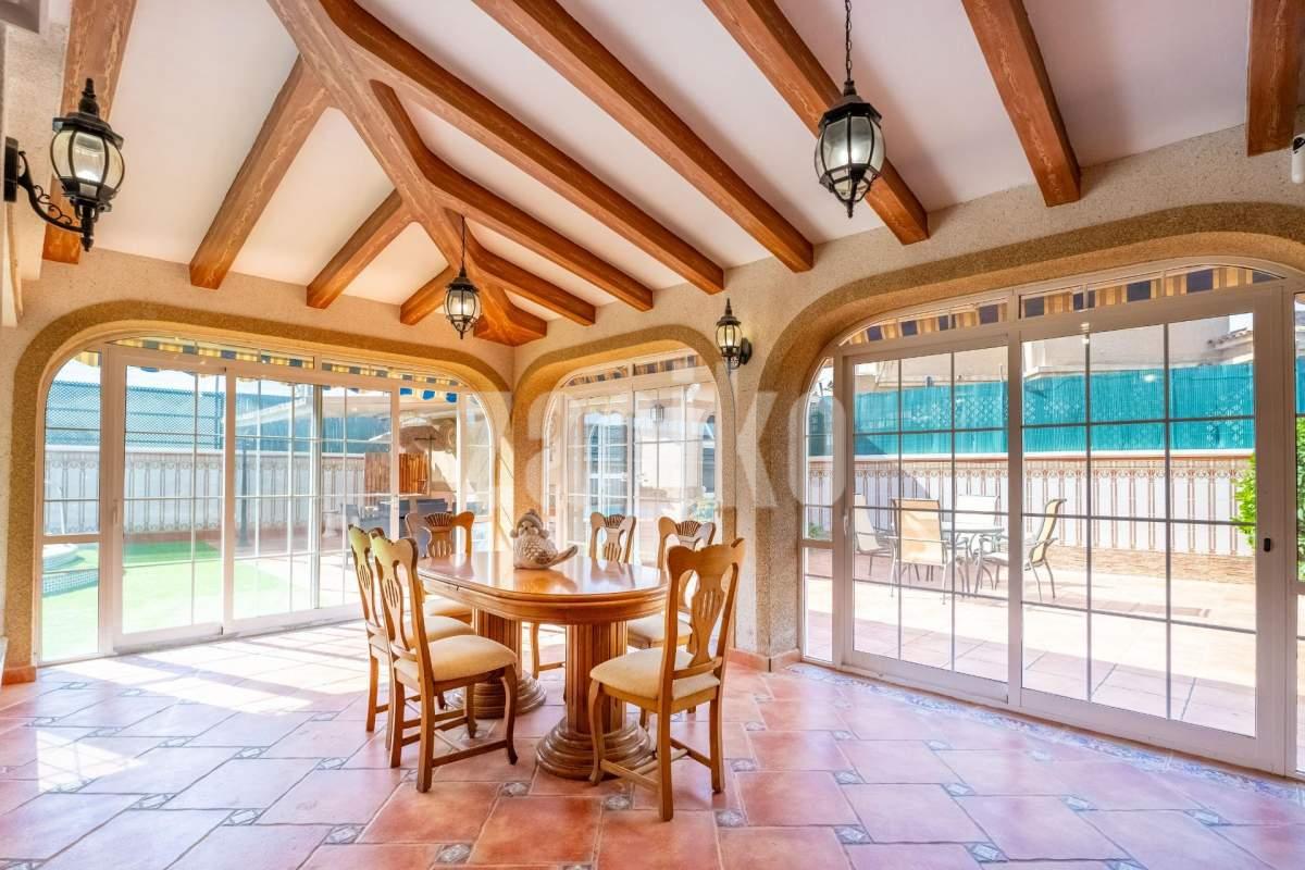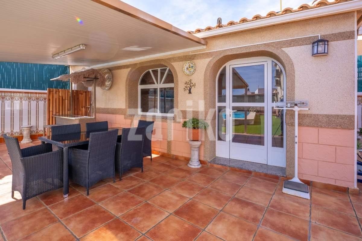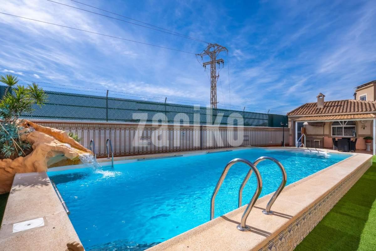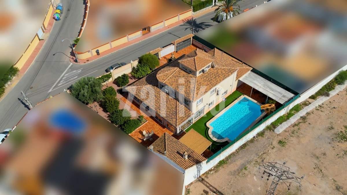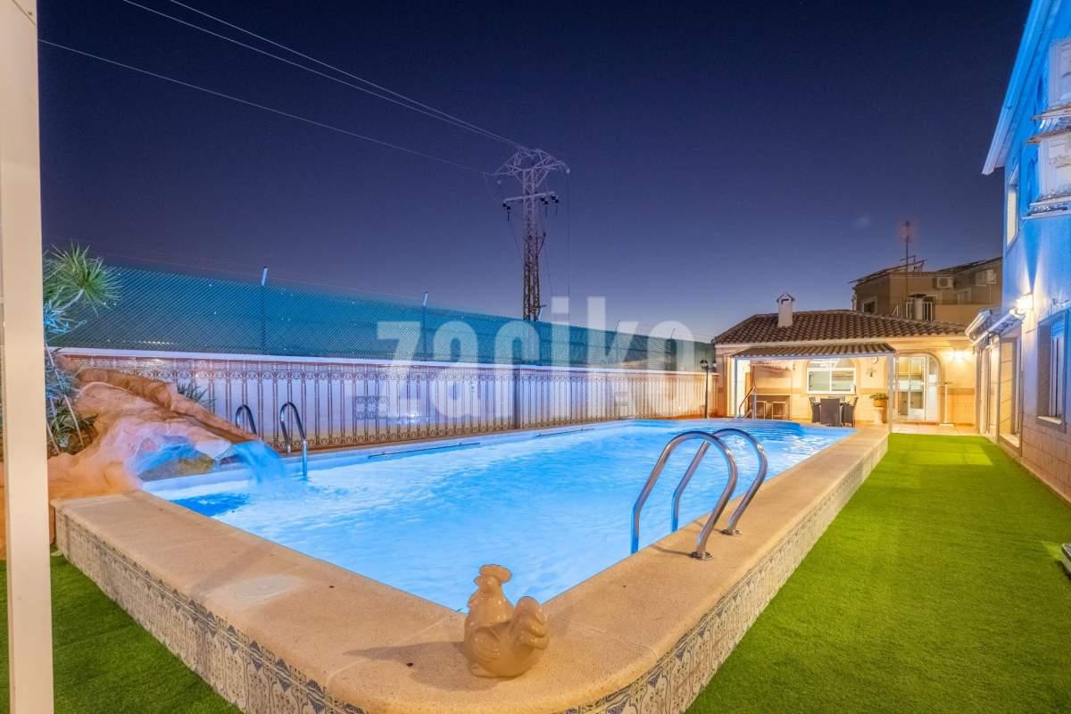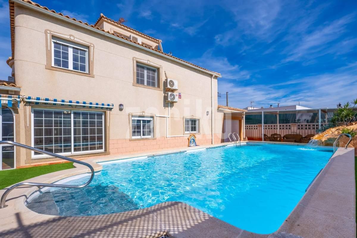 Os presento este Inmenso Chalet en Chaparral. Chaparral es de las mejores zonas de Torrevieja, si buscas calidad de vida, tranquilidad y comodidad, sin renunciar a los servicios esenciales. Torrevieja es una ciudad costera situada en la Costa Blanca. Es una zona turística, destaca por su multitud de playas, su clima soleado. En este chalet vivirás una vida de lujo: su inmenso jardín con piscina , cocina de verano con chimenea y barbacoa y zona de descanso, te hará los veranos inolvidables. Pero lo que hace destacar esta casa es que tiene: sala de cine con una pantalla gigante, una bodega para los amantes del vino, un bar con barra y sillas, perfecta para invitar a tus amigos un despacho para poder trabajar en un espacio confortable. Además tiene un garaje cerrado para varios coches. La casa cuenta con 2 plantas, luminosa y espaciosa, con una buena distribución y muchas habitaciones, perfecta para una familia grande. toda la familia. Tiene un bar en el salón junto con una bodega. Una amplia cocina independiente equipada. La casa cuenta con 6 habitaciones. Cuenta con 3 dormitorios amueblados y una zona de vestidor. Las otras 3 habitaciones son de ocio tiene sala de cine, bodega, despacho. Dispone de 3 baños, en una de los baños tiene una bañera con jacuzzi. Y por ultimo, tiene un solárium acristalado. Por toda la casa tiene suelos con calefacción de gasolina. Esta ubicada en una de las mejores zonas de Chaparral. Es una zona residencial muy tranquila y cómoda para vivir. Destaca por su buen clima soleado y rodeado de zonas verdes. Por su cercanía a los servicios necesarios como también playas y ocio. Por ultimo, su buena conectividad con dentro de la ciudad y también con otras ciudades. Es una casa grande, perfecta para una familia grande a la que le guste vivir en tranquilidad pero cerca de todo!