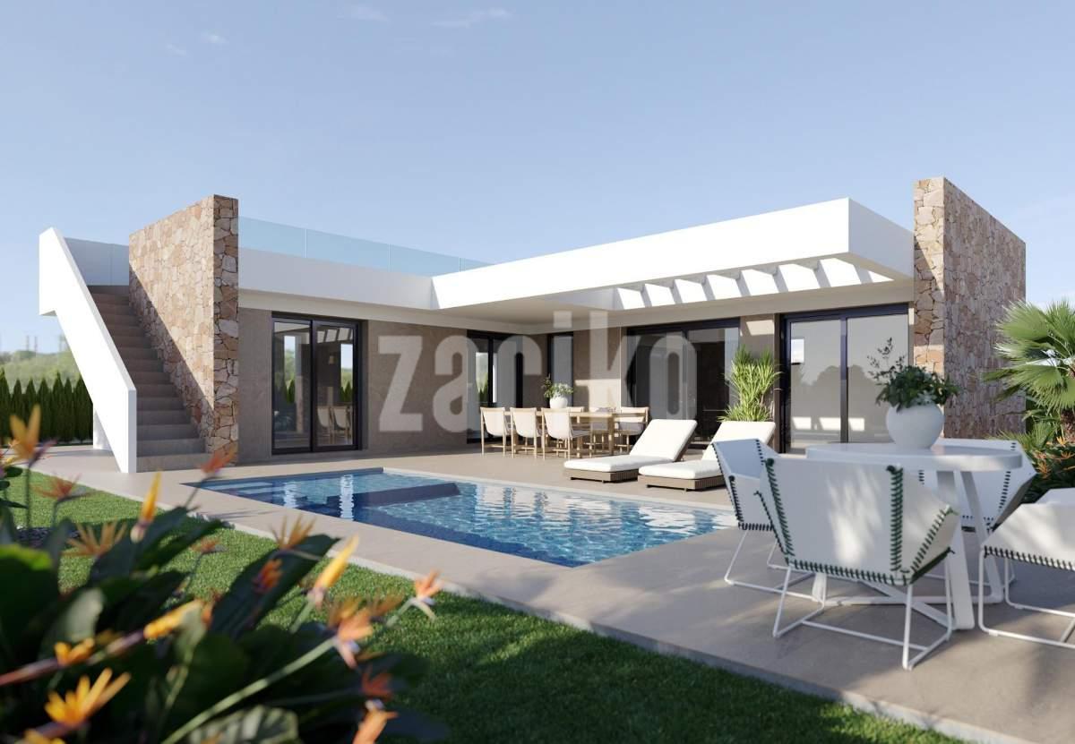 Villas de Obra Nueva en Hacienda del Álamo Golf Resort, Murcia Viviendas Modernas en un Entorno Natural y Exclusivo Descubre estas fantásticas villas de obra nueva en el prestigioso Hacienda del Álamo Golf Resort, una urbanización cerrada en la región de Murcia que combina tranquilidad, seguridad y una completa oferta de servicios. Rodeado de naturaleza y con un clima privilegiado, este complejo es ideal para quienes buscan un estilo de vida relajado sin renunciar al confort. Villas de 3 Dormitorios en una planta con solarium El residencial está compuesto por 15 villas en parcelas a partir de 550 m2. Todas las viviendas cuentan con 3 dormitorios y 2 baños completos en una sola planta, además de una zona de terraza con piscina privada y un solarium privado en la azotea con vistas al campo de golf. Acabados de Alta Calidad y Confort Garantizado Las viviendas están diseñadas con materiales de alta calidad y pensadas para ofrecer eficiencia energética y bienestar: Carpintería exterior con rotura de puente térmico Agua caliente mediante sistema de aerotermia Preinstalación de aire acondicionado por conductos Piscina privada Instalación independiente de agua de riego con depósito acumulador y grupo de presión individual, con tomas de riego en cochera y jardín. Puerta de acceso de vehículos motorizada. Un Resort con Servicios Completos y Campo de Golf Hacienda del Álamo es uno de los complejos más completos de la Costa Cálida. Cuenta con: Campo de golf profesional de 18 hoyos Hotel con spa Supermercado Restaurantes y bares Pistas deportivas y zonas verdes Seguridad 24 horas La urbanización recrea el ambiente de un tradicional pueblo mediterráneo, con calles tranquilas y un diseño cuidado. Ubicación Estratégica Cerca de Todo Aeropuerto Internacional de Murcia (Corvera): 20 km Campos de golf adicionales: menos de 10 km Cartagena: 35 km Playas del Mar Menor: 30 km Centro comercial Espacio Mediterráneo: 28 km Puerto de Mazarrón: 40 km Vive con Estilo en la Costa Cálida Estas villas representan una excelente oportunidad para vivir o invertir en una de las zonas con mayor proyección de Murcia. Contáctanos ahora y descubre tu próximo hogar en Hacienda del Álamo Golf Resort.