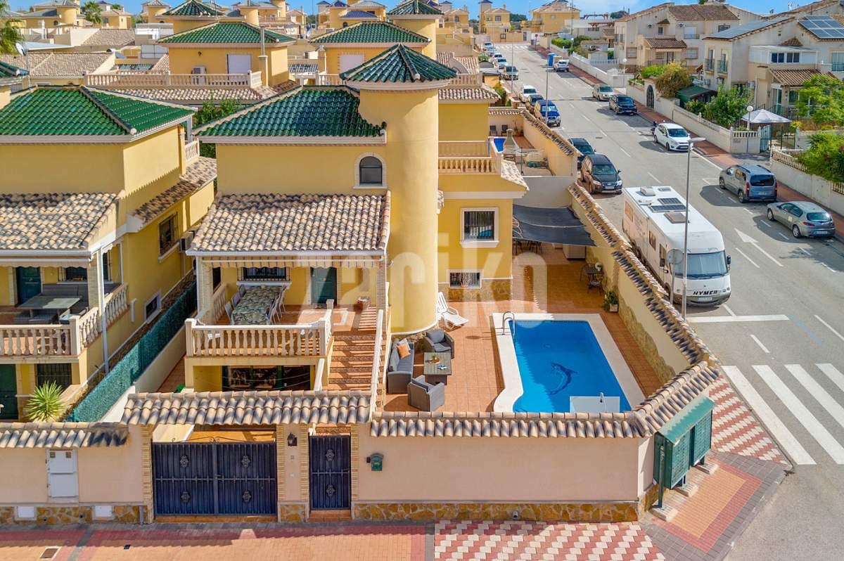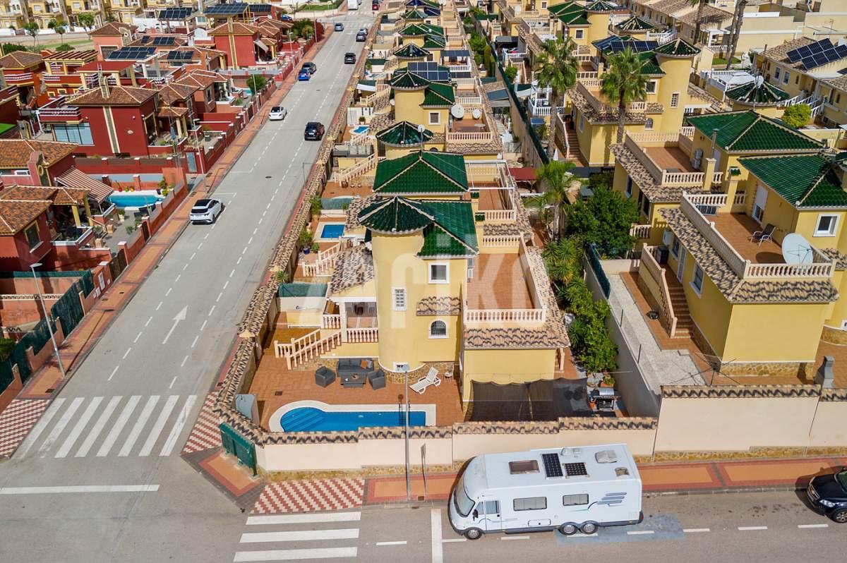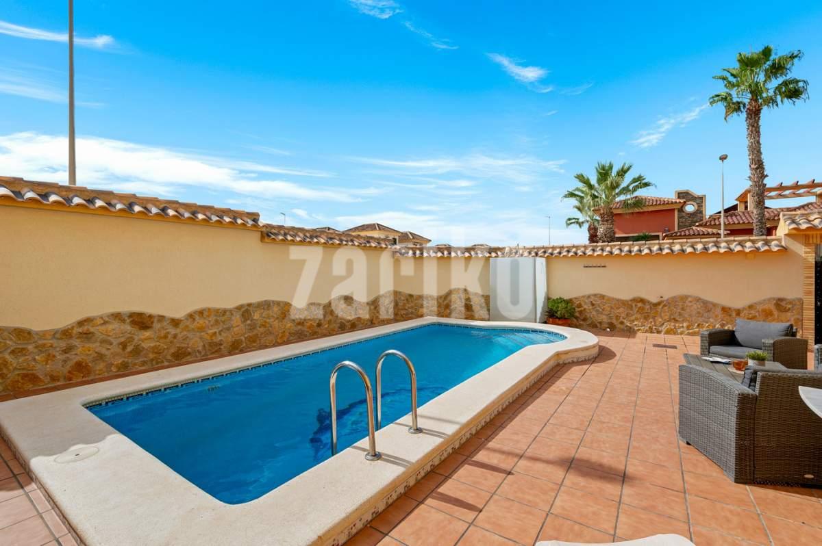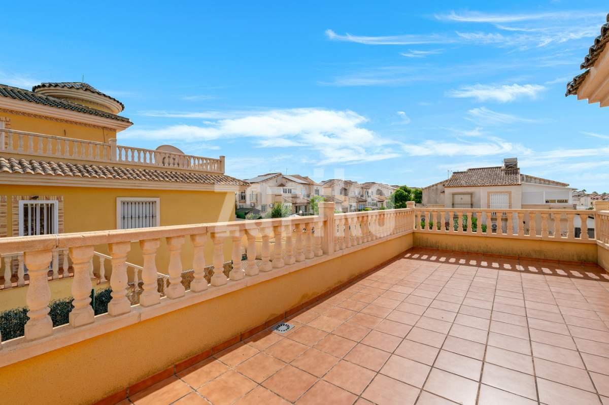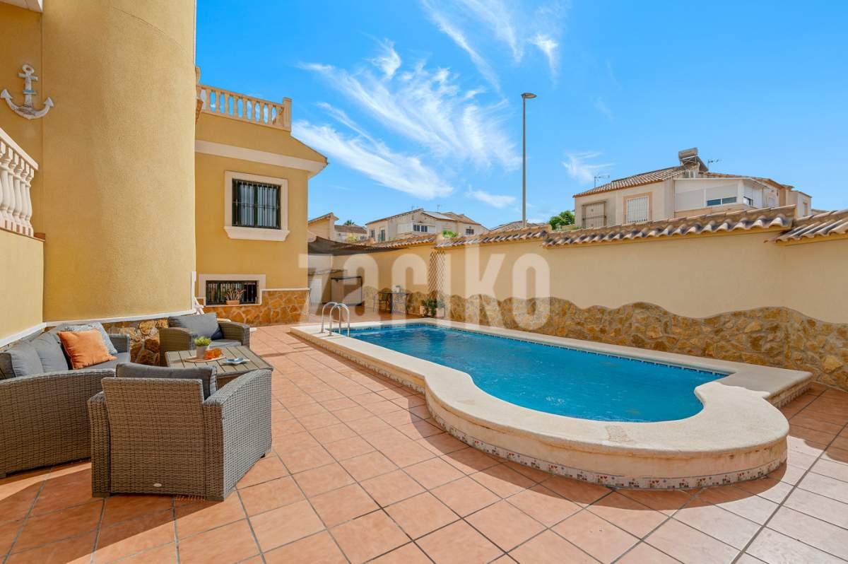 This beautiful and spacious 190 m² villa offers everything you could wish for in comfort, style, and Mediterranean living. Located in the attractive and peaceful area of Lo Crispin, close to both nature and vibrant local life, this home perfectly combines practicality and charm.The villa features four well-sized bedrooms (two of them in the large, bright basement with windows) and three modern bathrooms, making it ideal as a family home or a wonderful holiday retreat with plenty of space for guests.Originally built in 2007 and extensively renovated in 2018, the property is in excellent, updated condition throughout. The villa is sold fully furnished, allowing you to move straight in and start enjoying the sunny Spanish lifestyle from day one.Inside, you are welcomed by a bright and inviting living room that flows naturally into the well-equipped kitchen with ample storage and a modern design. The large basement level offers endless possibilities — perfect as an additional lounge, hobby space, playroom, or guest area.The villa’s east–west orientation ensures sunshine throughout the day, and outside you’ll find your own private swimming pool with open views towards both the town and the mountains — the perfect setting to relax and soak up the Mediterranean atmosphere.The Lo Crispin area is known for its tranquil surroundings, beautiful setting, and convenient location close to all amenities. Within just a few minutes, you can reach the lively town of Ciudad Quesada, offering a wide selection of restaurants, bars, cafés, shops, and sports facilities — as well as easy access to the motorway.The popular golf courses La Finca and La Marquesa are just about 15 minutes away, and the charming Sunday market can be reached in only 5 minutes.Would you like to know more about this stunning villa?Contact DK Til Spanien today for further information or to arrange a viewing — and take one step closer to your dream home under the Spanish sun. ☀️