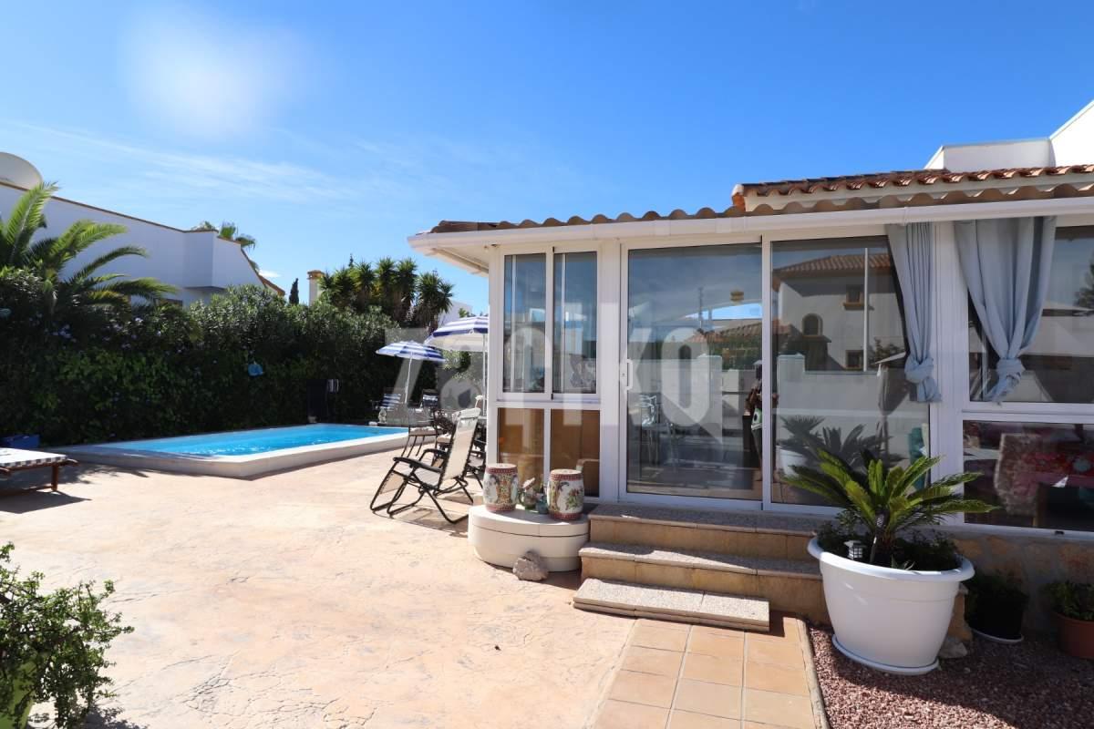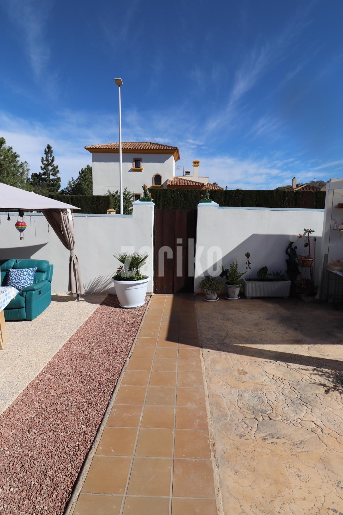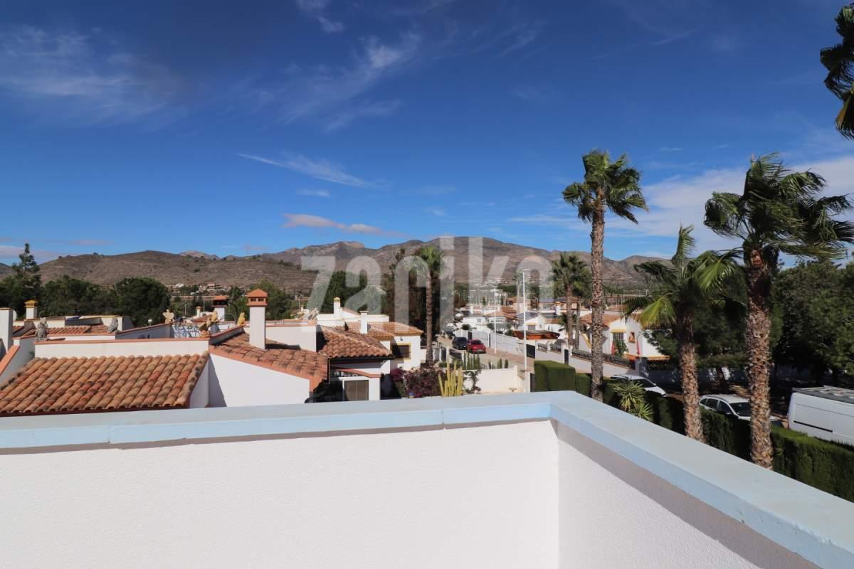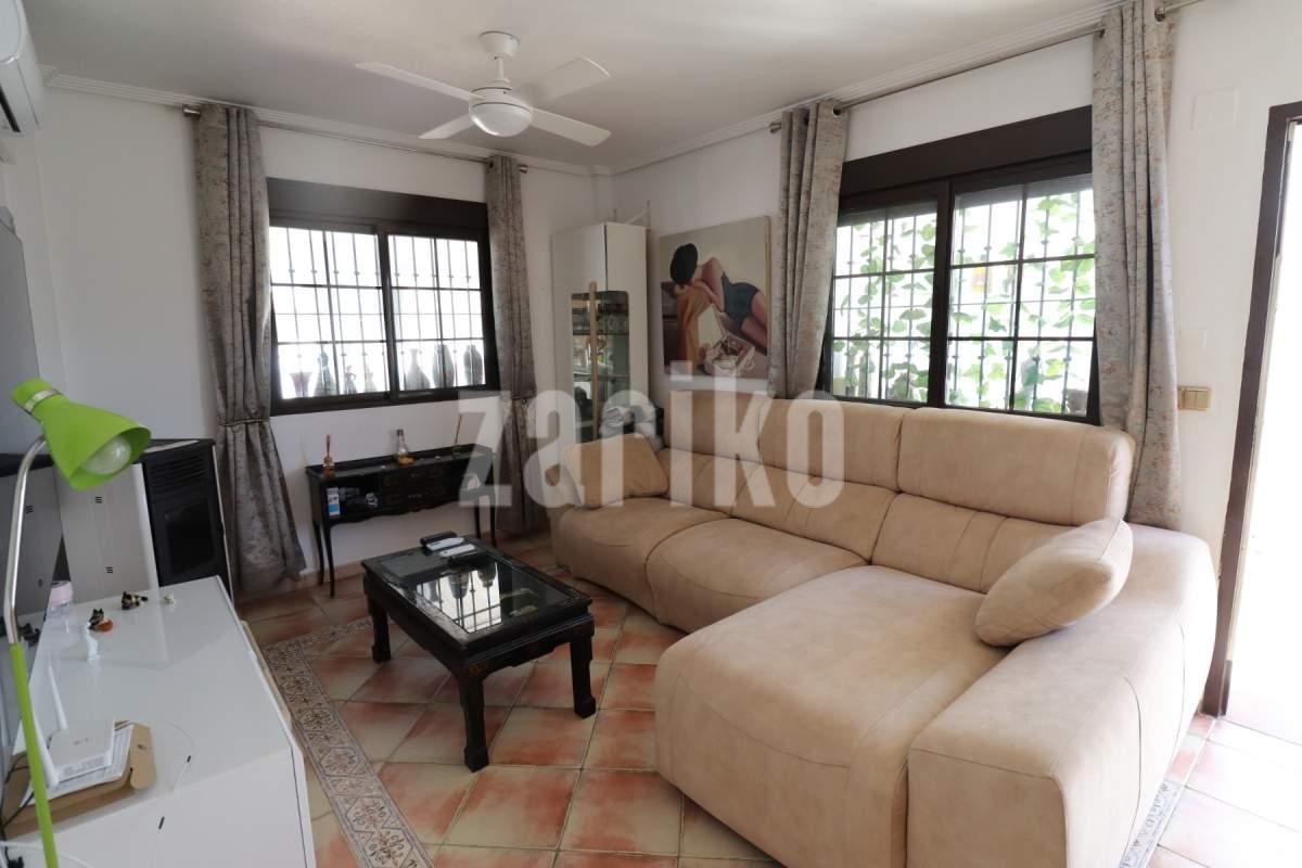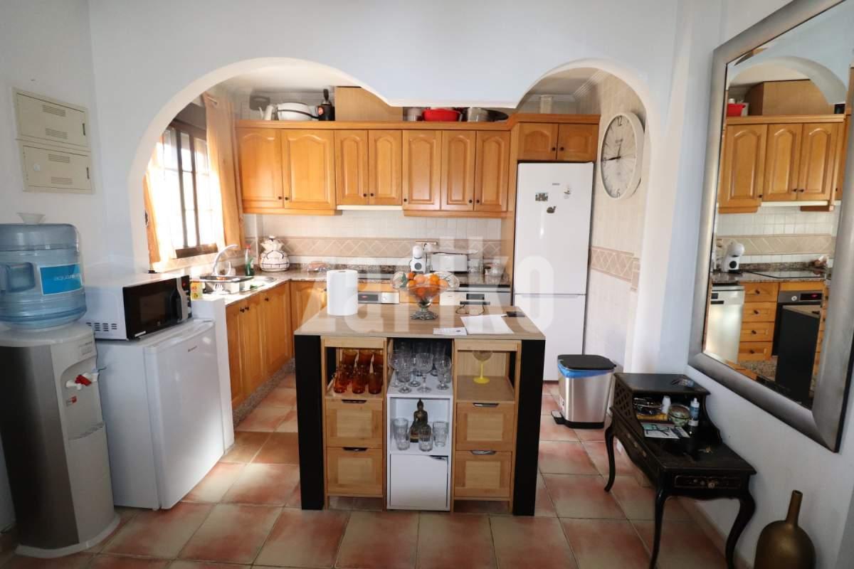 This beautiful villa in perfect condition is located in a very quiet residential area between the two villages of Hondon, with all amenities nearby. It comprises a spacious veranda overlooking the pool and garden, a living room with open-plan kitchen, two bedrooms and two bathrooms. A solarium offers superb views of the surrounding mountains. The garden has been carefully landscaped and features a swimming pool, several shaded terraces, a summer kitchen, parking for 2 cars, a garden shed and numerous flowers and fruit trees. The house will be sold fully furnished except for the television, garden furniture and water dispenser. 35 minutes from Alicante airport and the beaches.